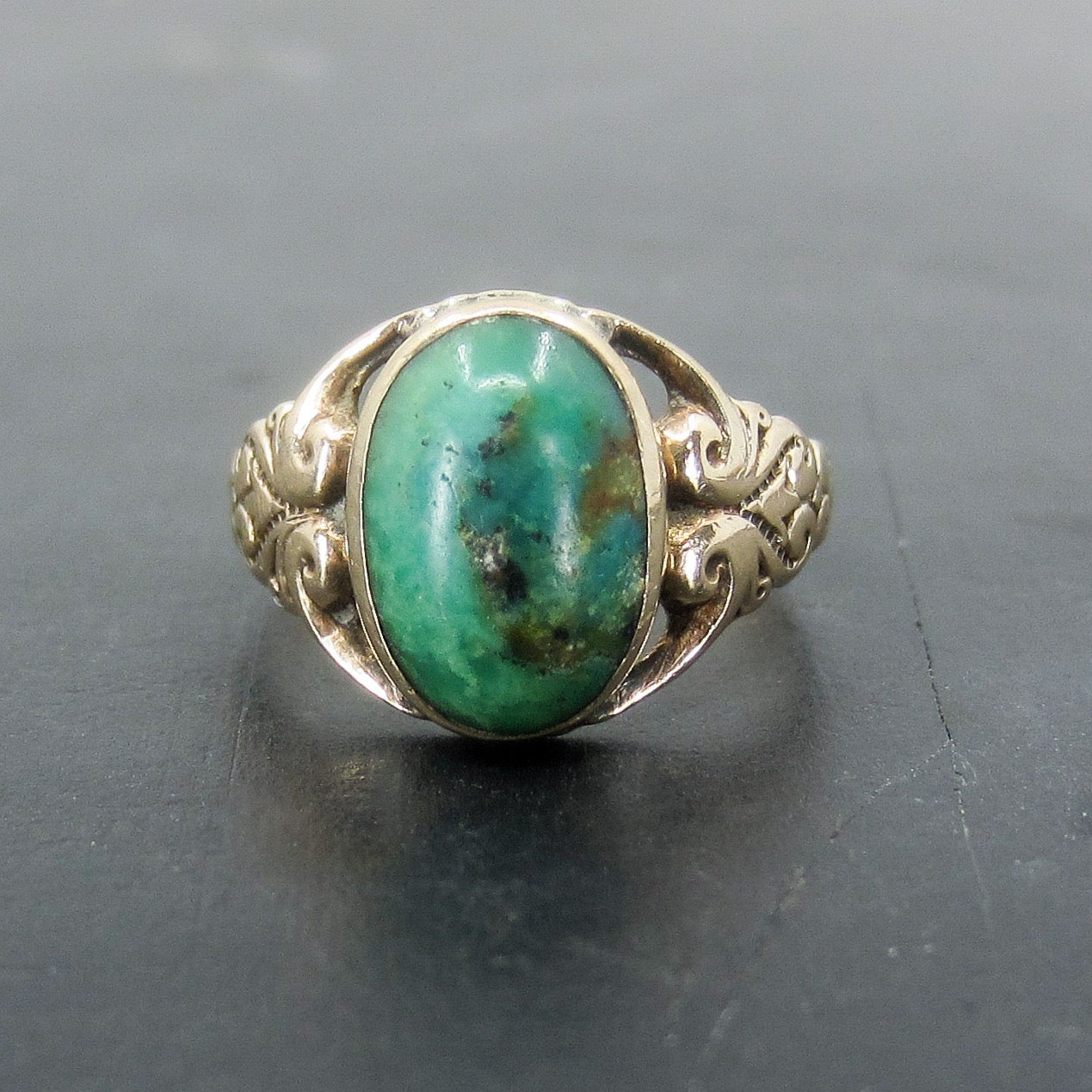 SOLD--Art Deco Turquoise Signet Ring 10k, Ostby & Barton c. 1930