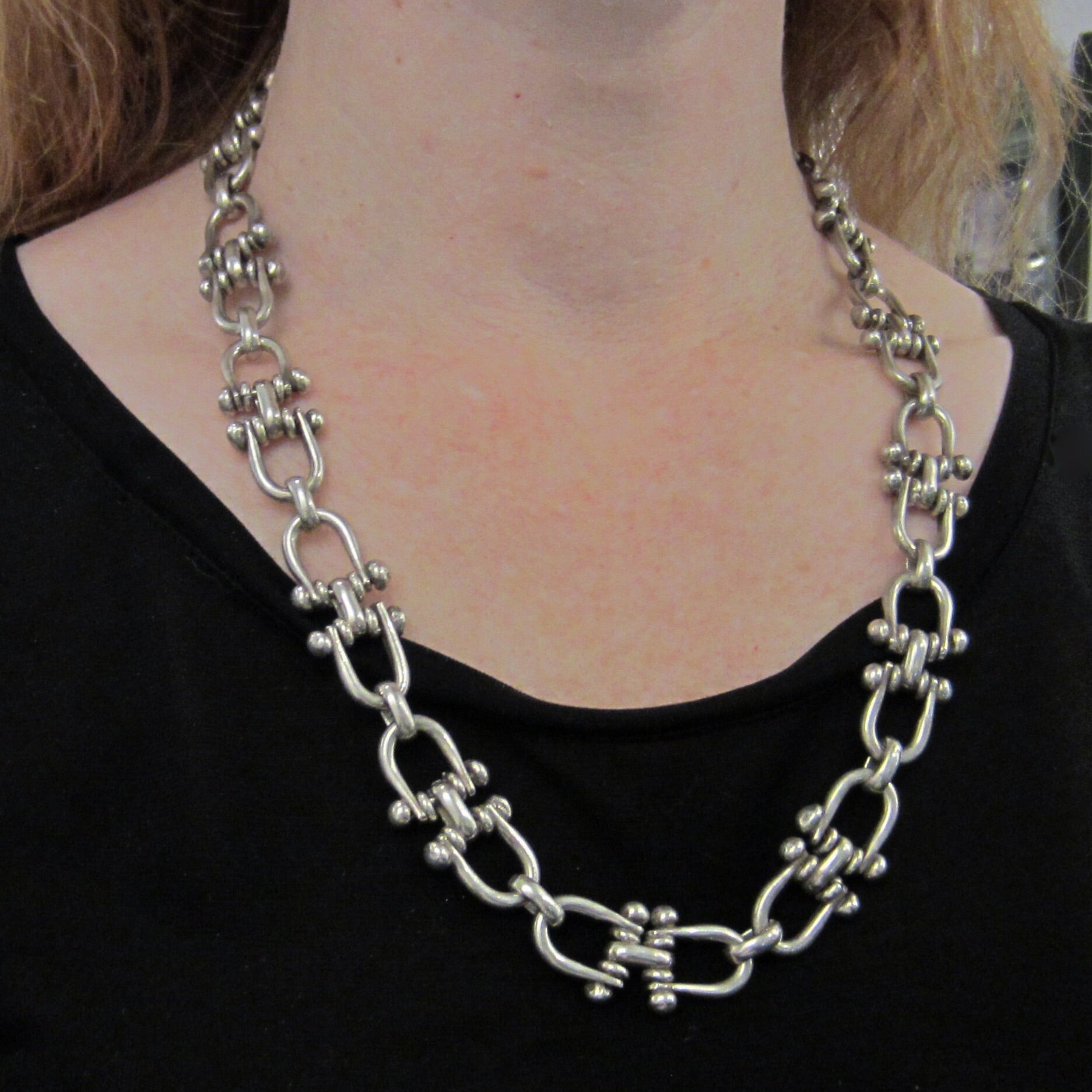 SOLD--Awesome, Heavy Horse Bit Link Chain Sterling, Mexico c. 1990