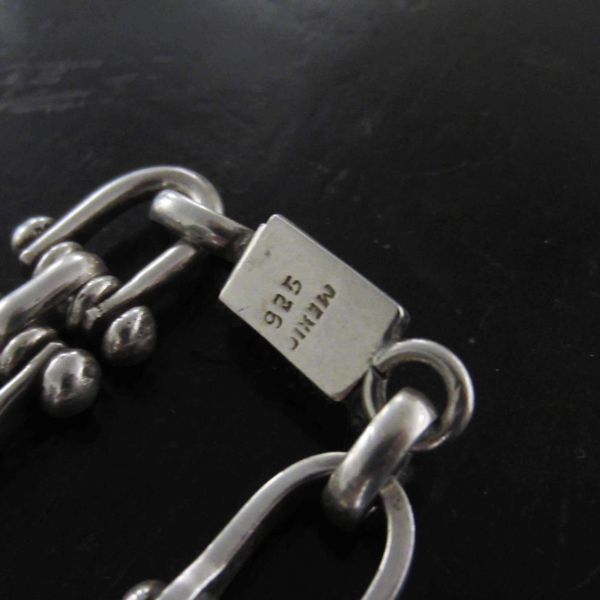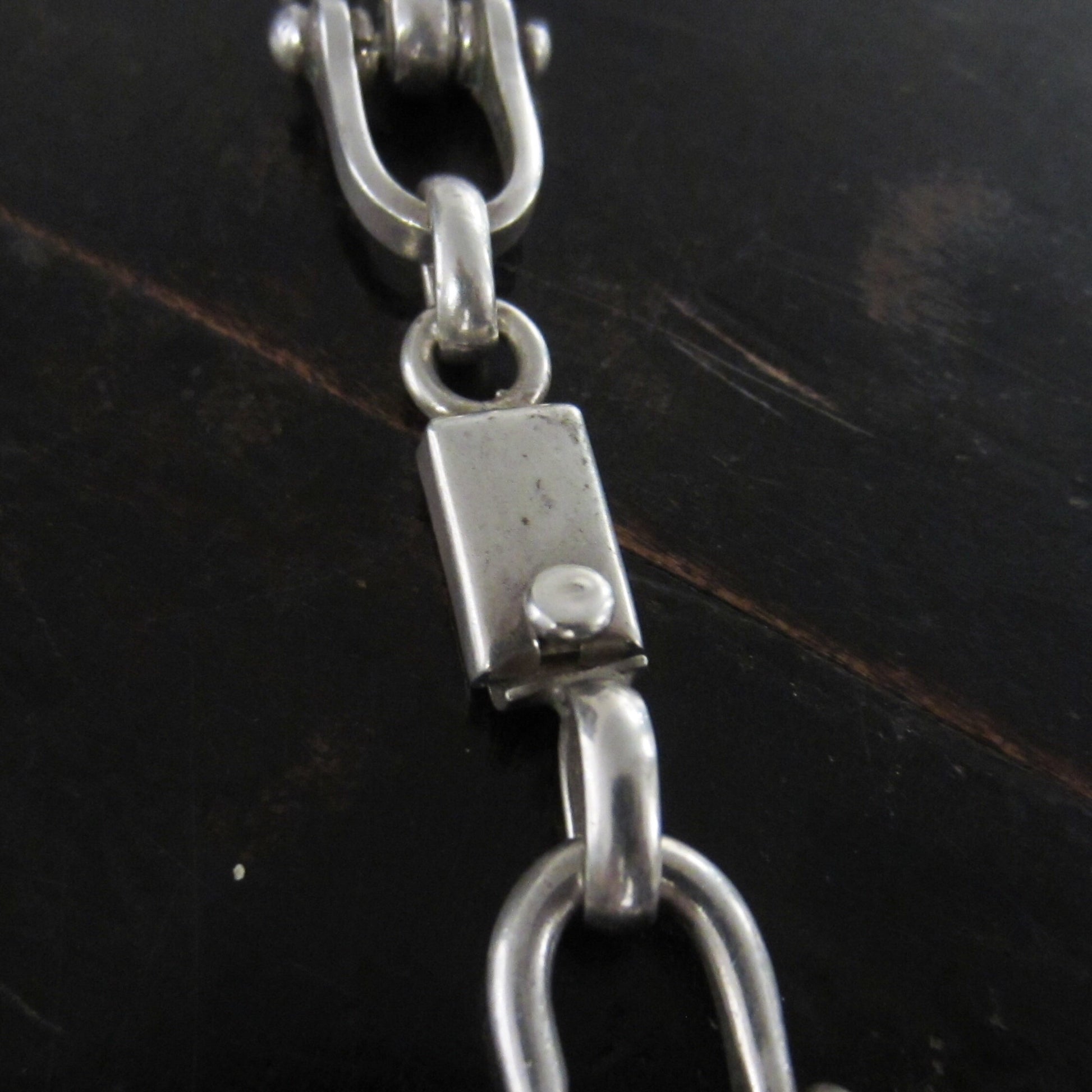 This spectacular chain looks great on literally EVERYONE and is so cool with its Gucci-esque horse bit link and weighty feel. Very finely made of sterling silver articulated links. My guess is this one won't last long!