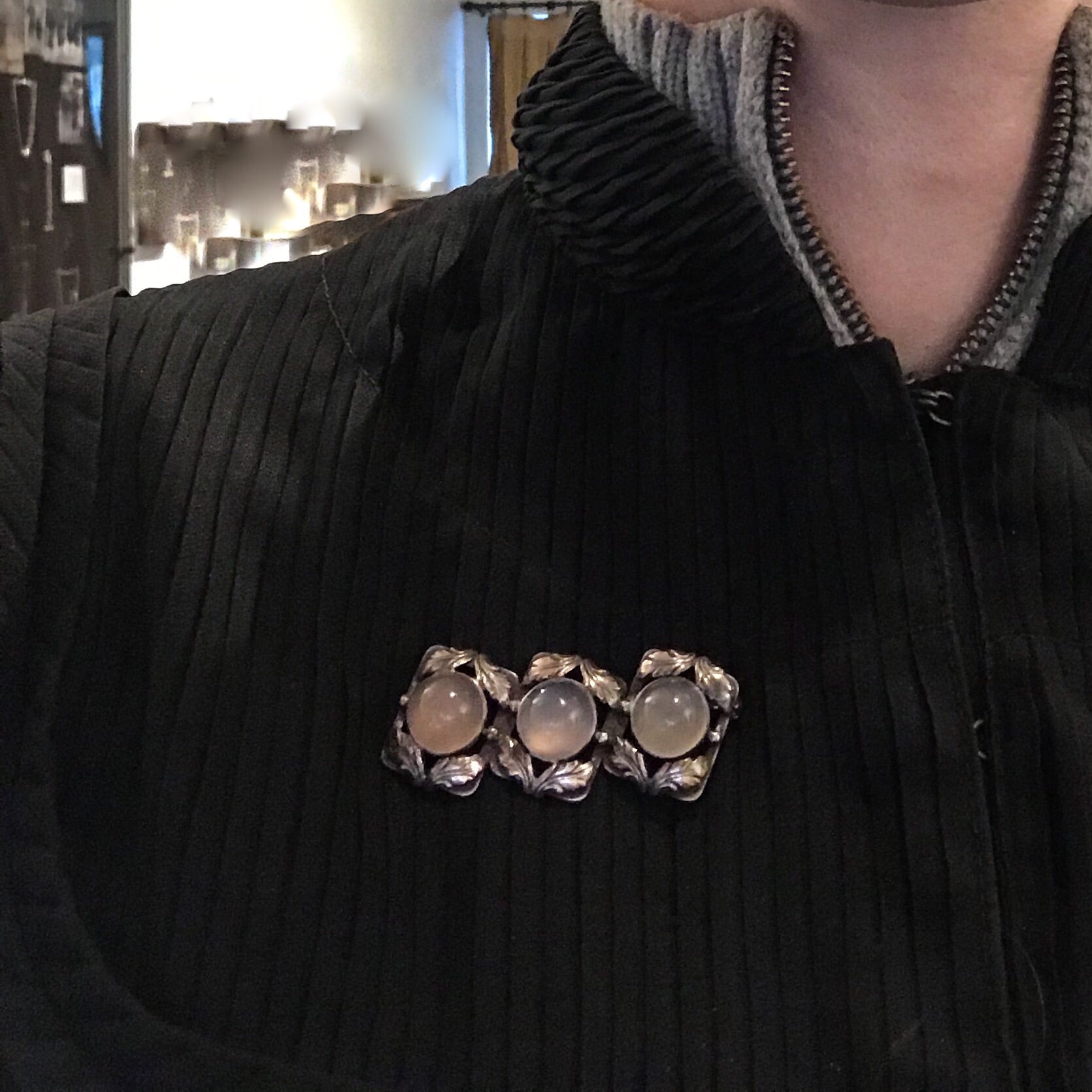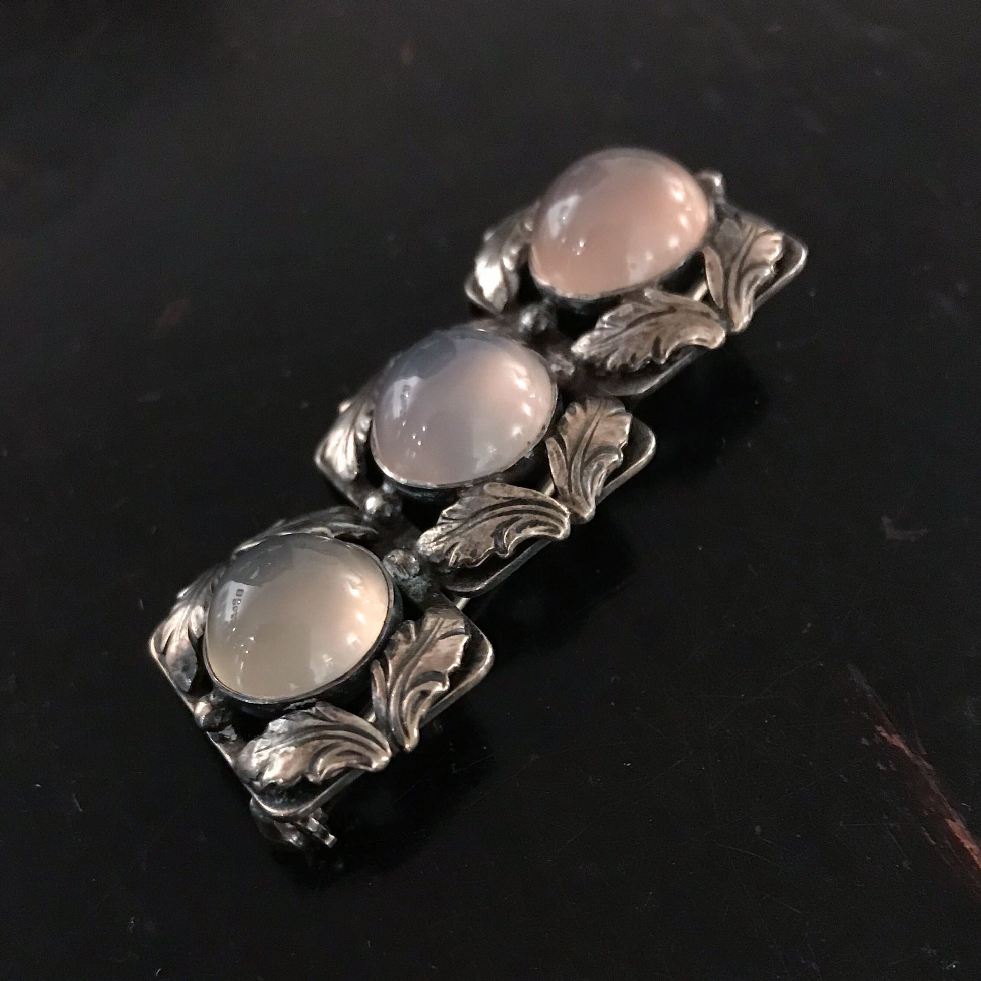 SOLD--Mid-Century Moonstone Brooch Sterling, Bjorklund Brothers, Denmark c. 1950