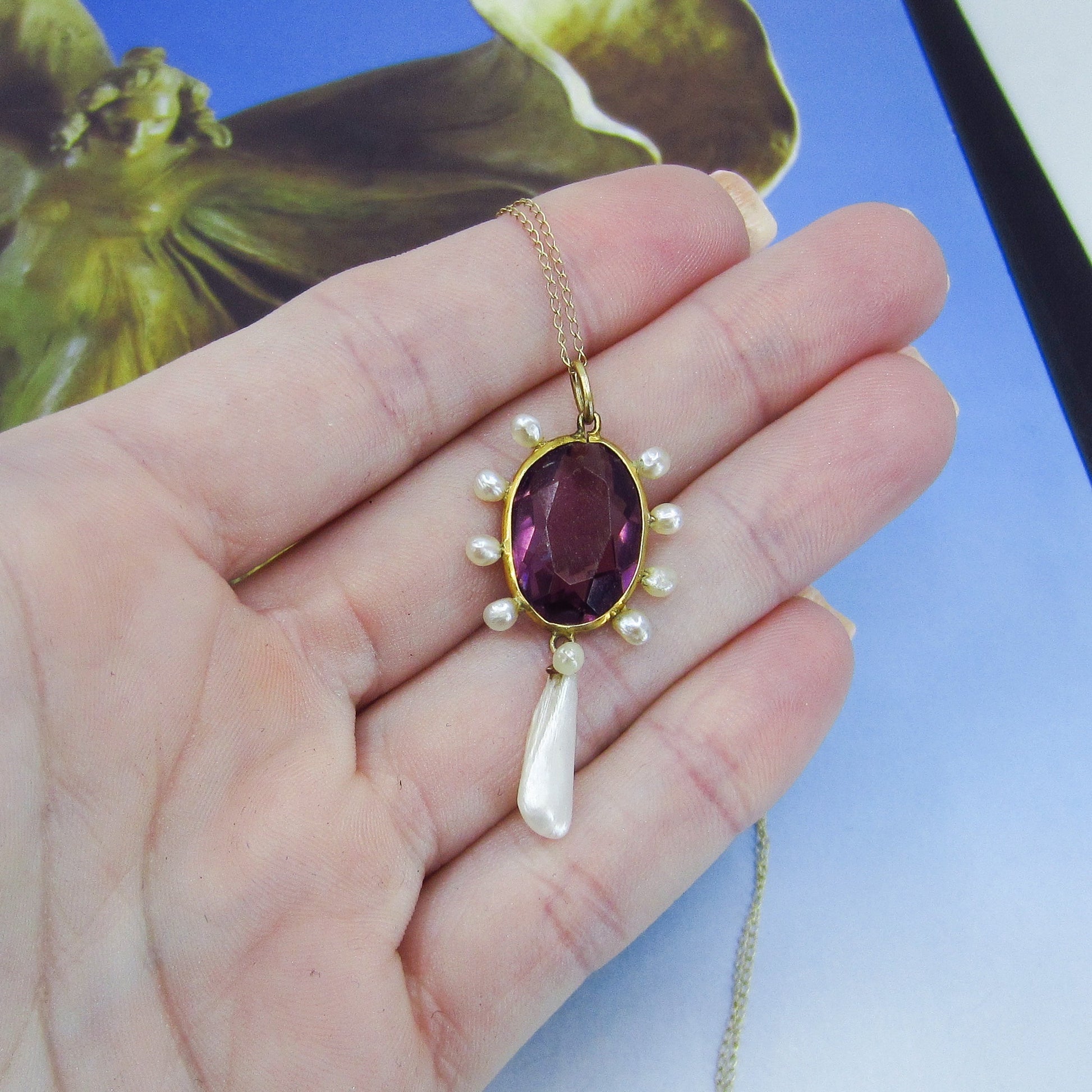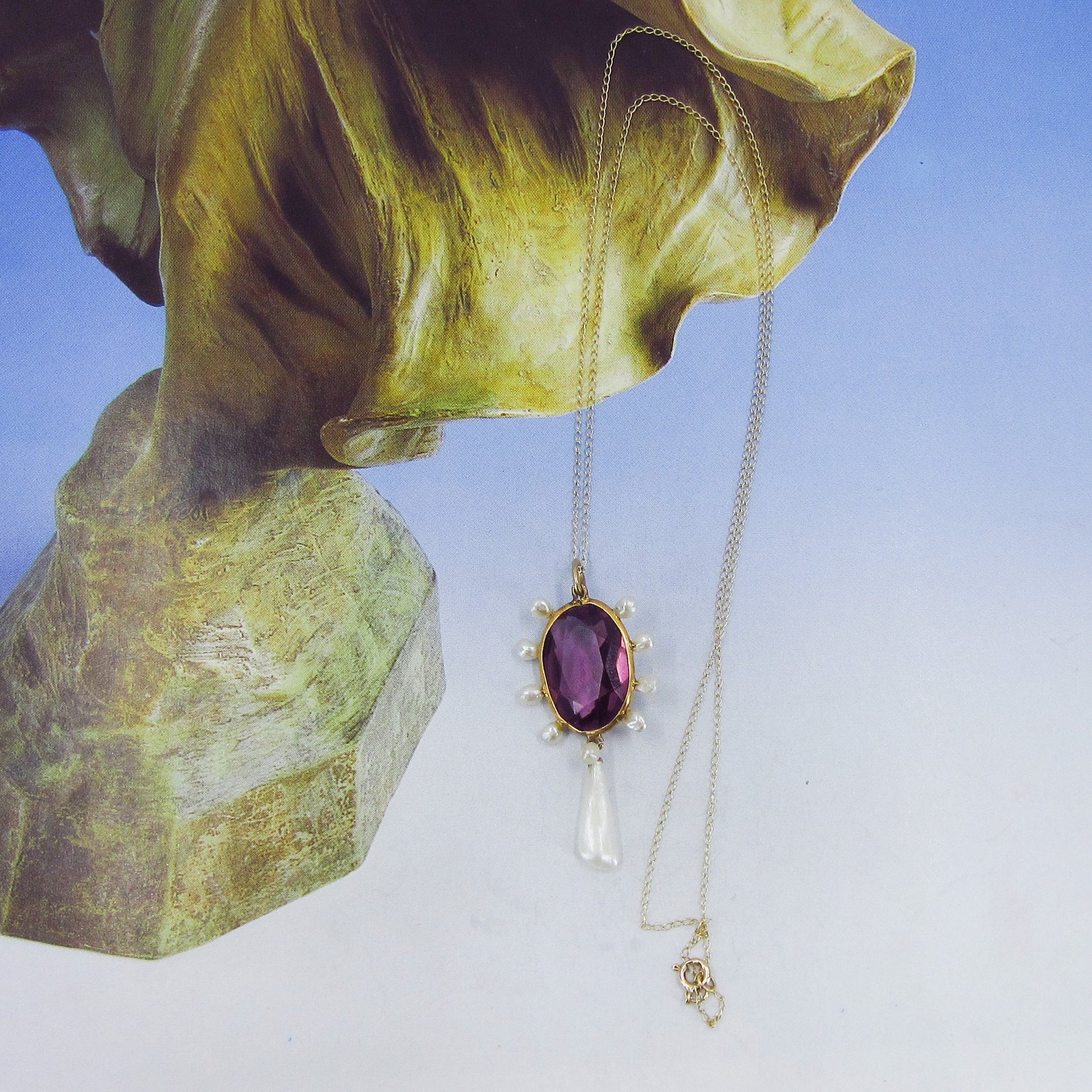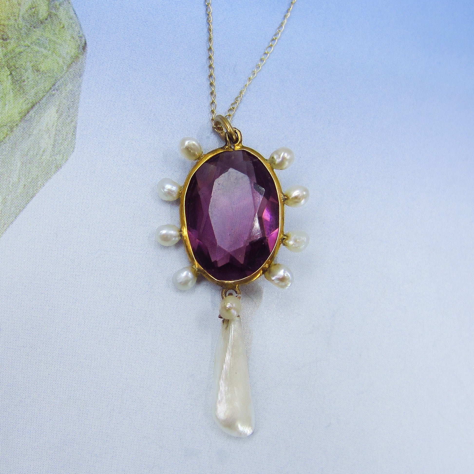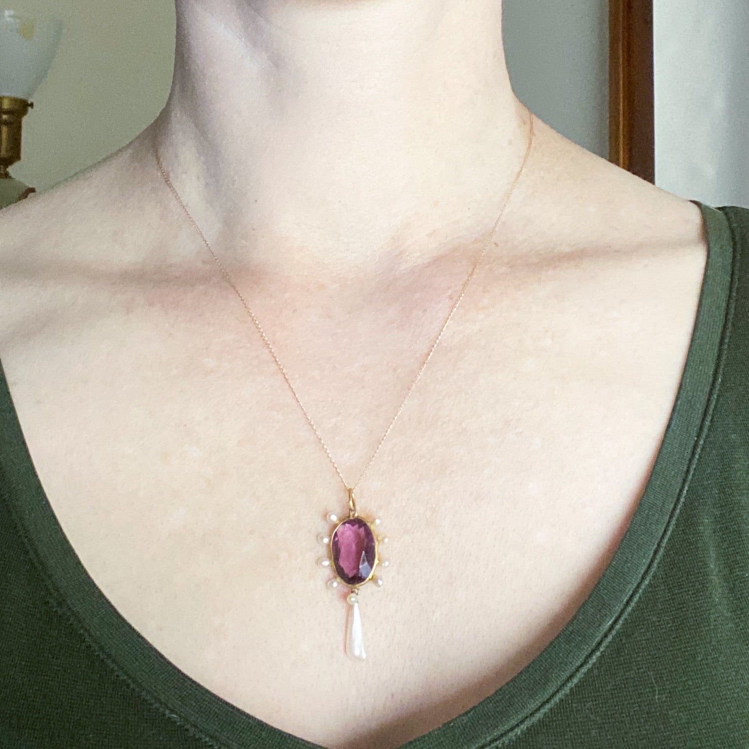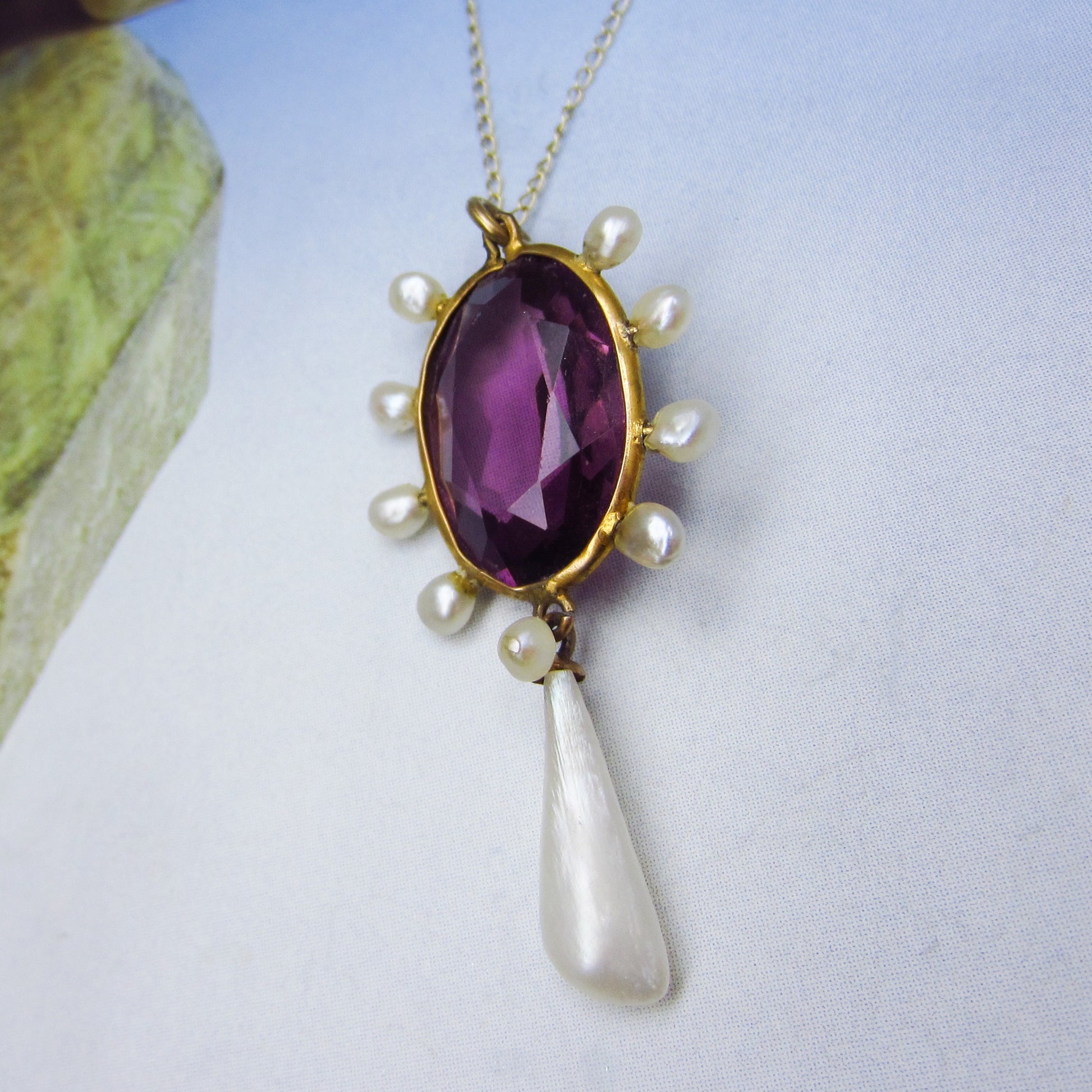 SOLD-Edwardian Amethyst and Pearl Pendant 14k c. 1900