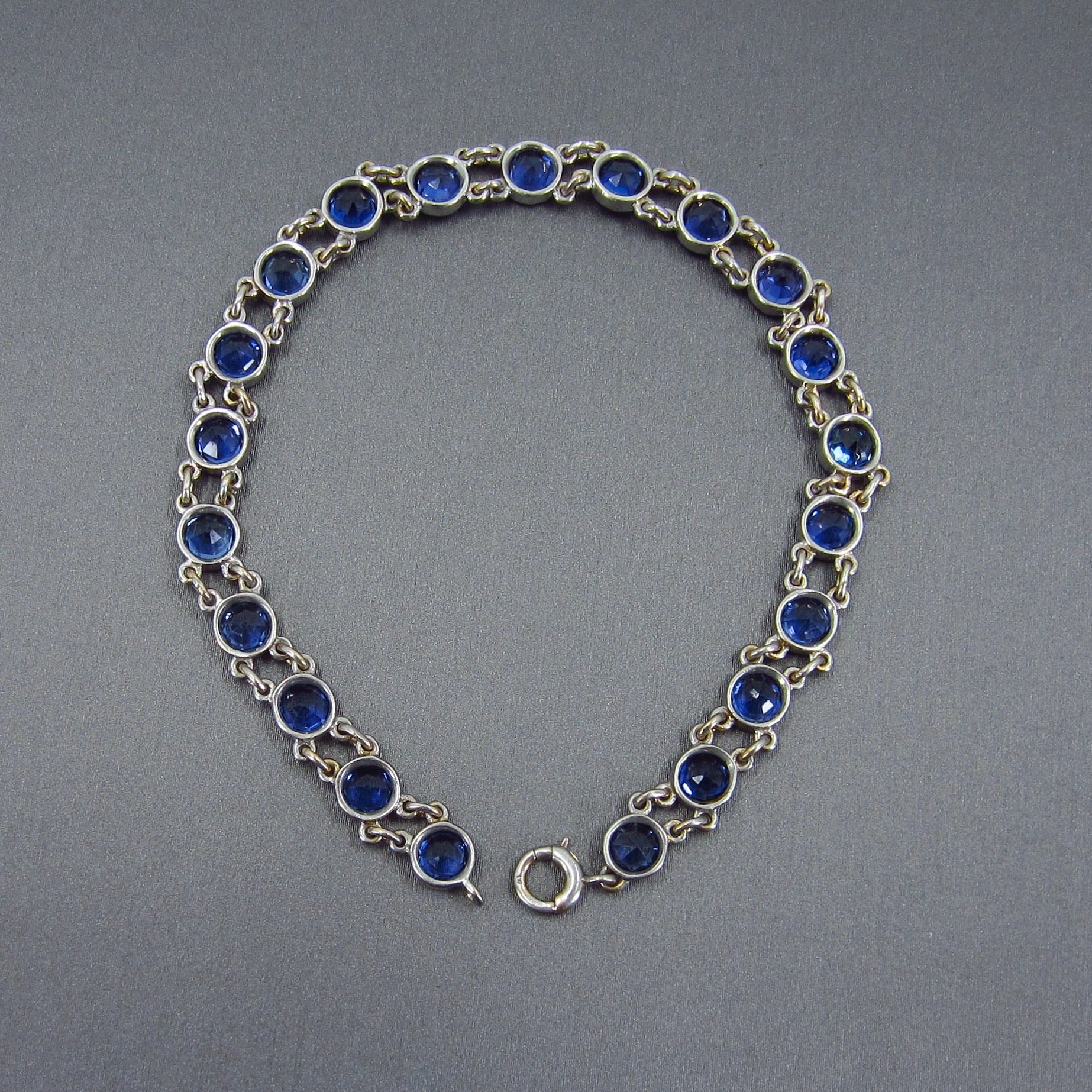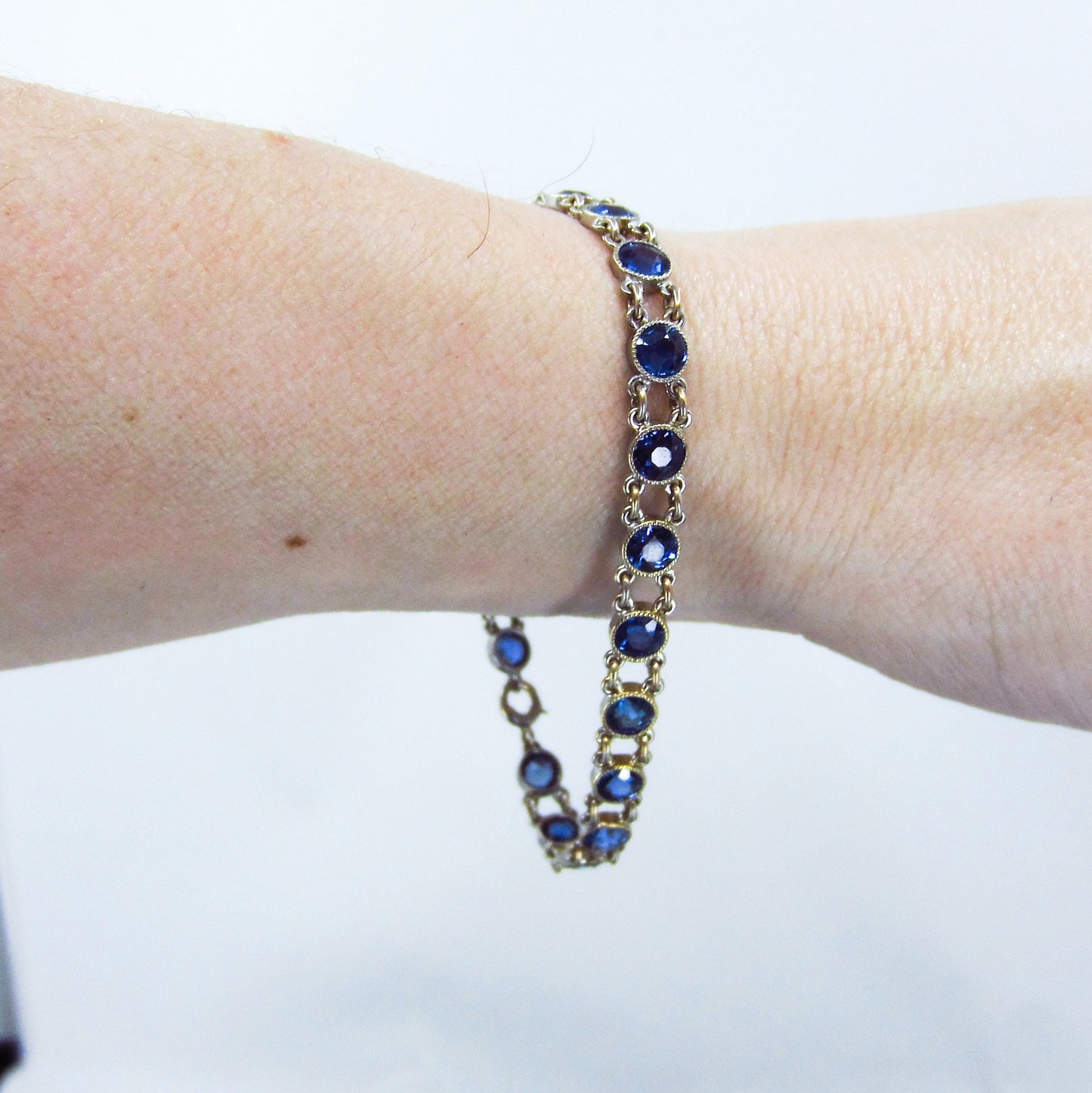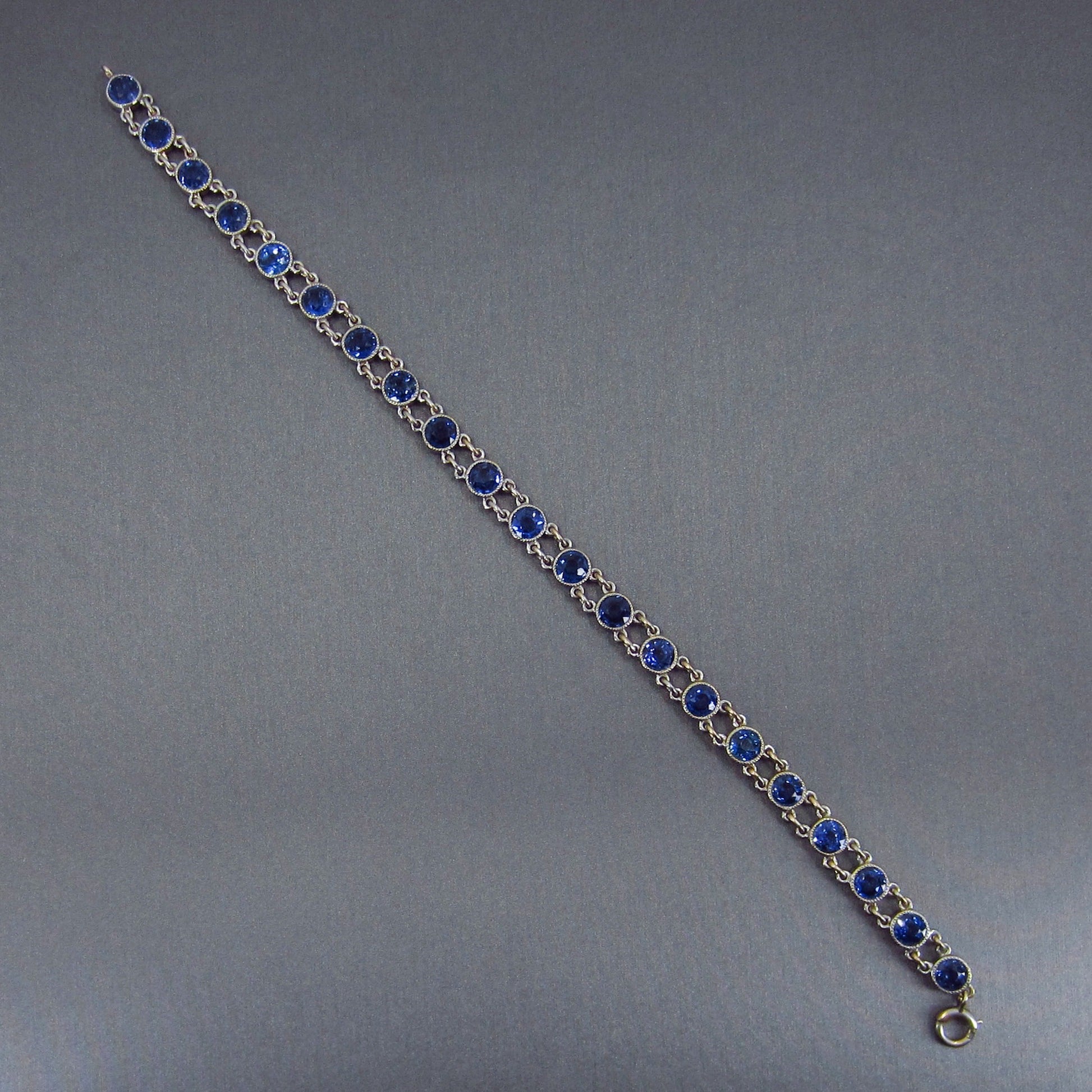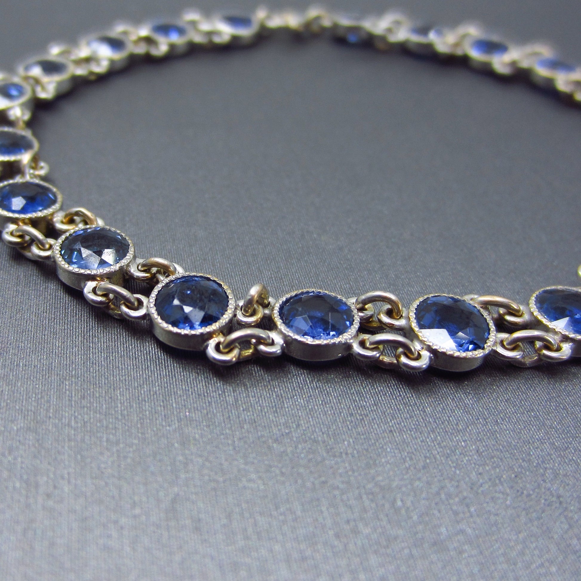 SOLD--Edwardian Bezel Set Sapphire Line Bracelet 14k c. 1910