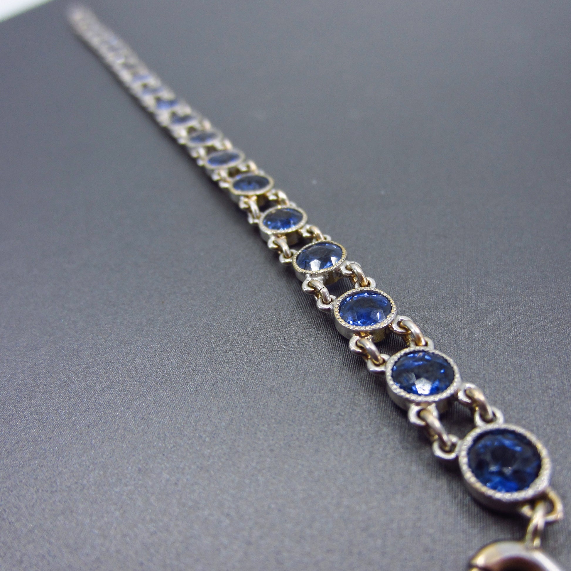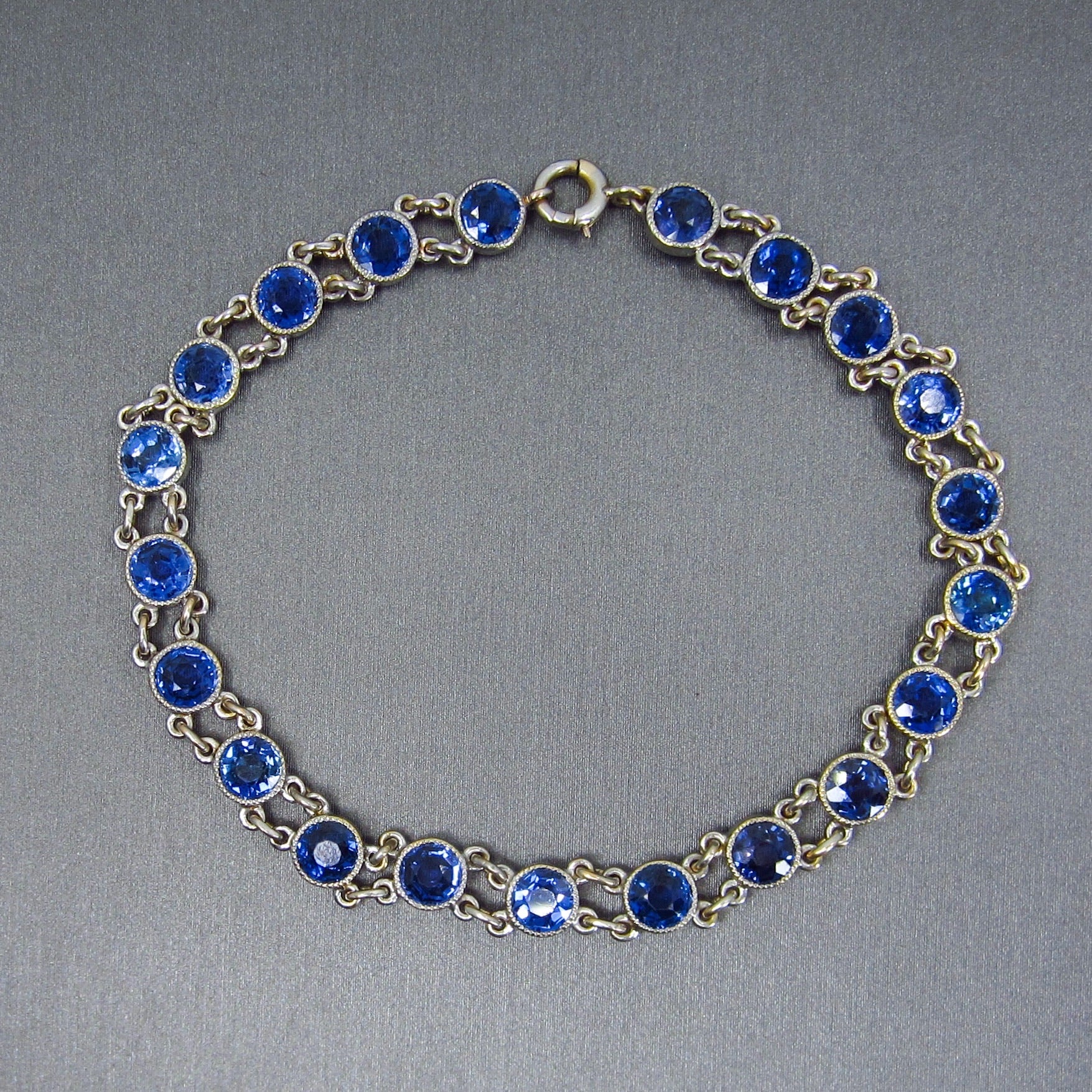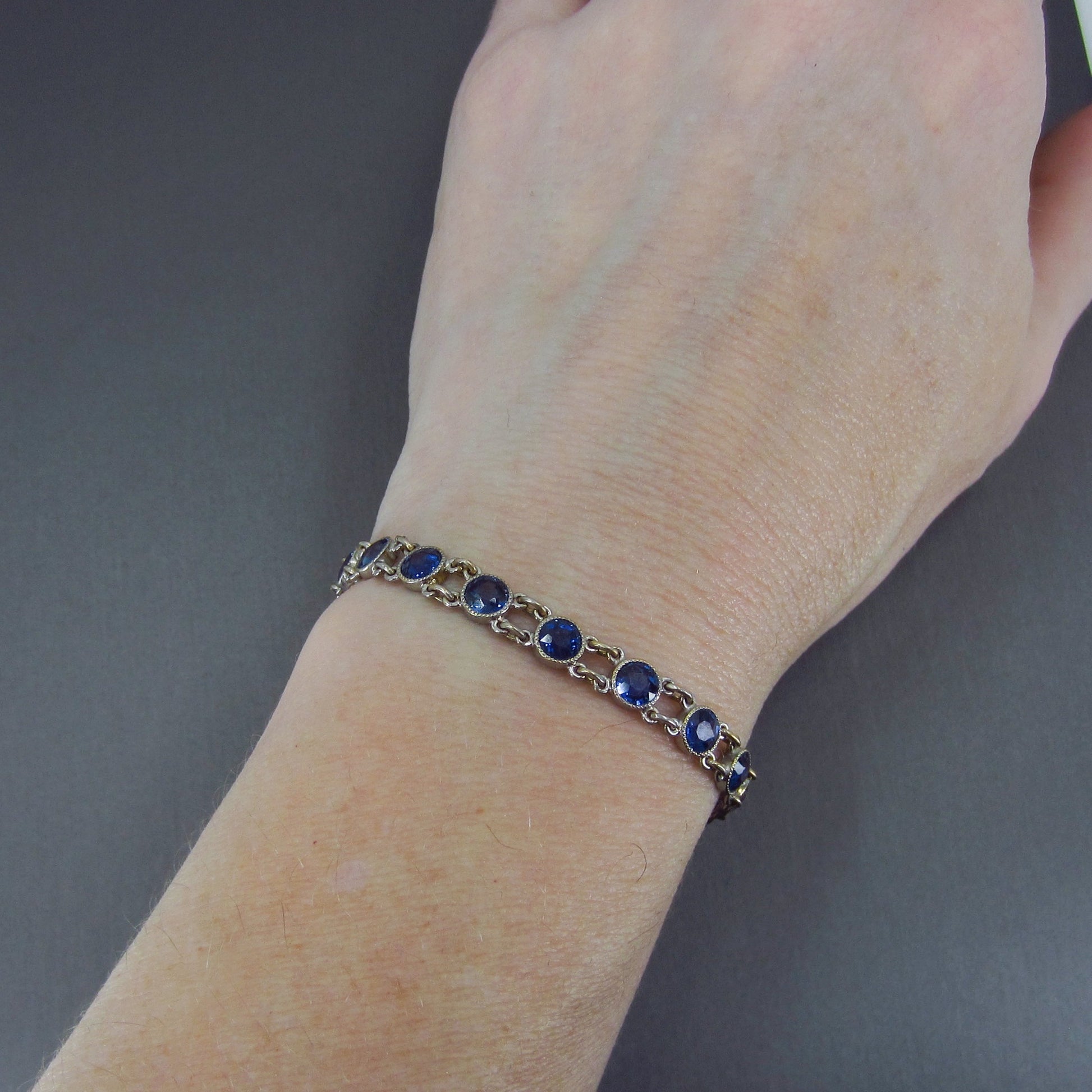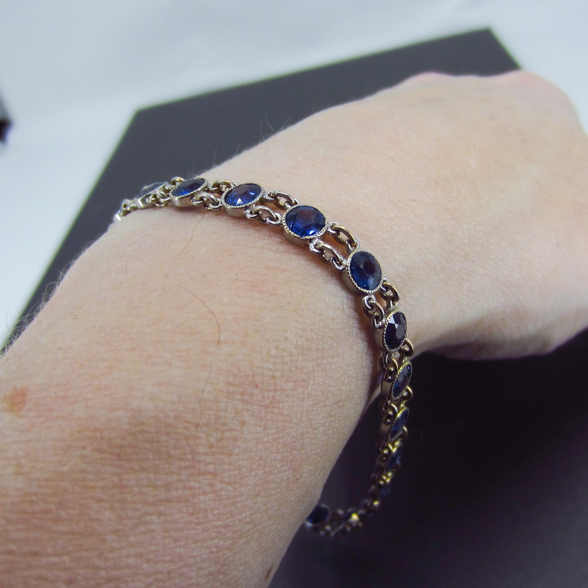 SOLD--Edwardian Bezel Set Sapphire Line Bracelet 14k c. 1910