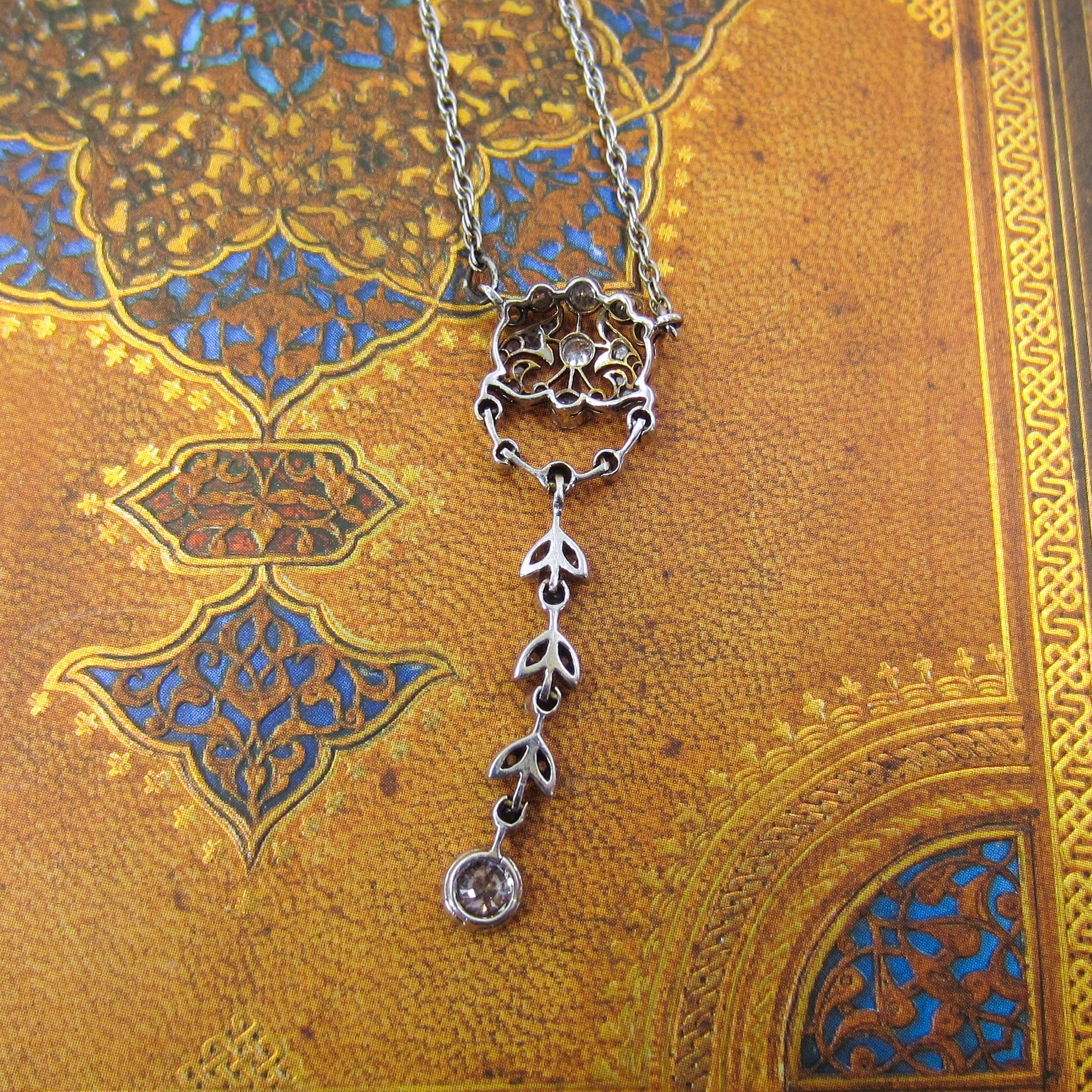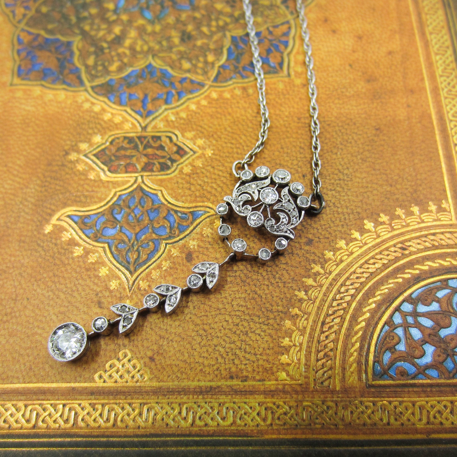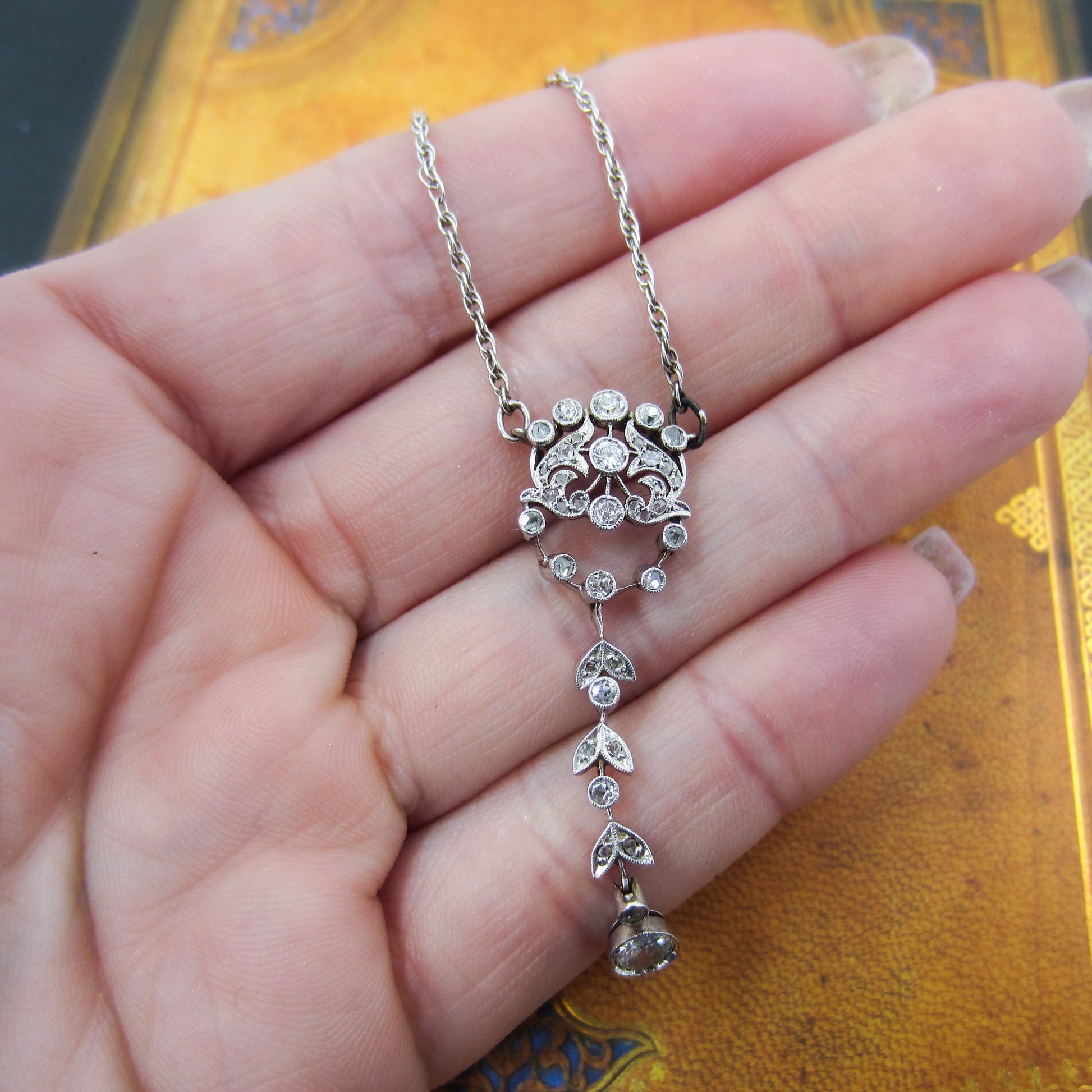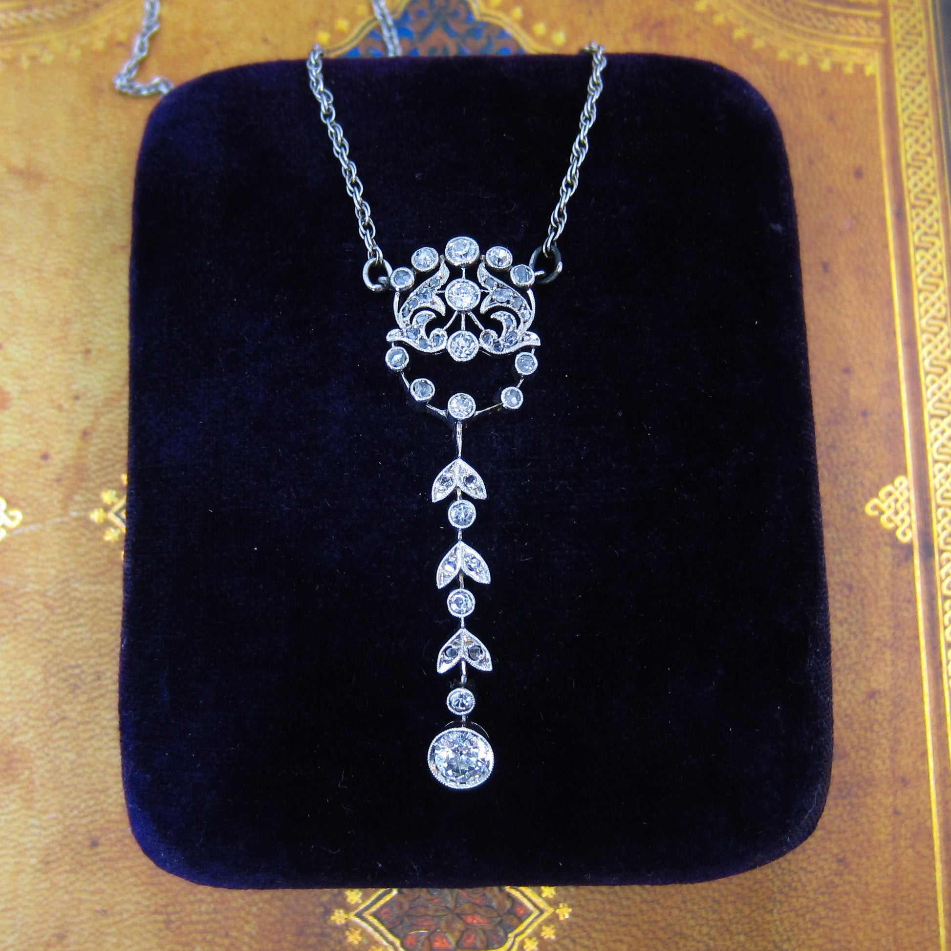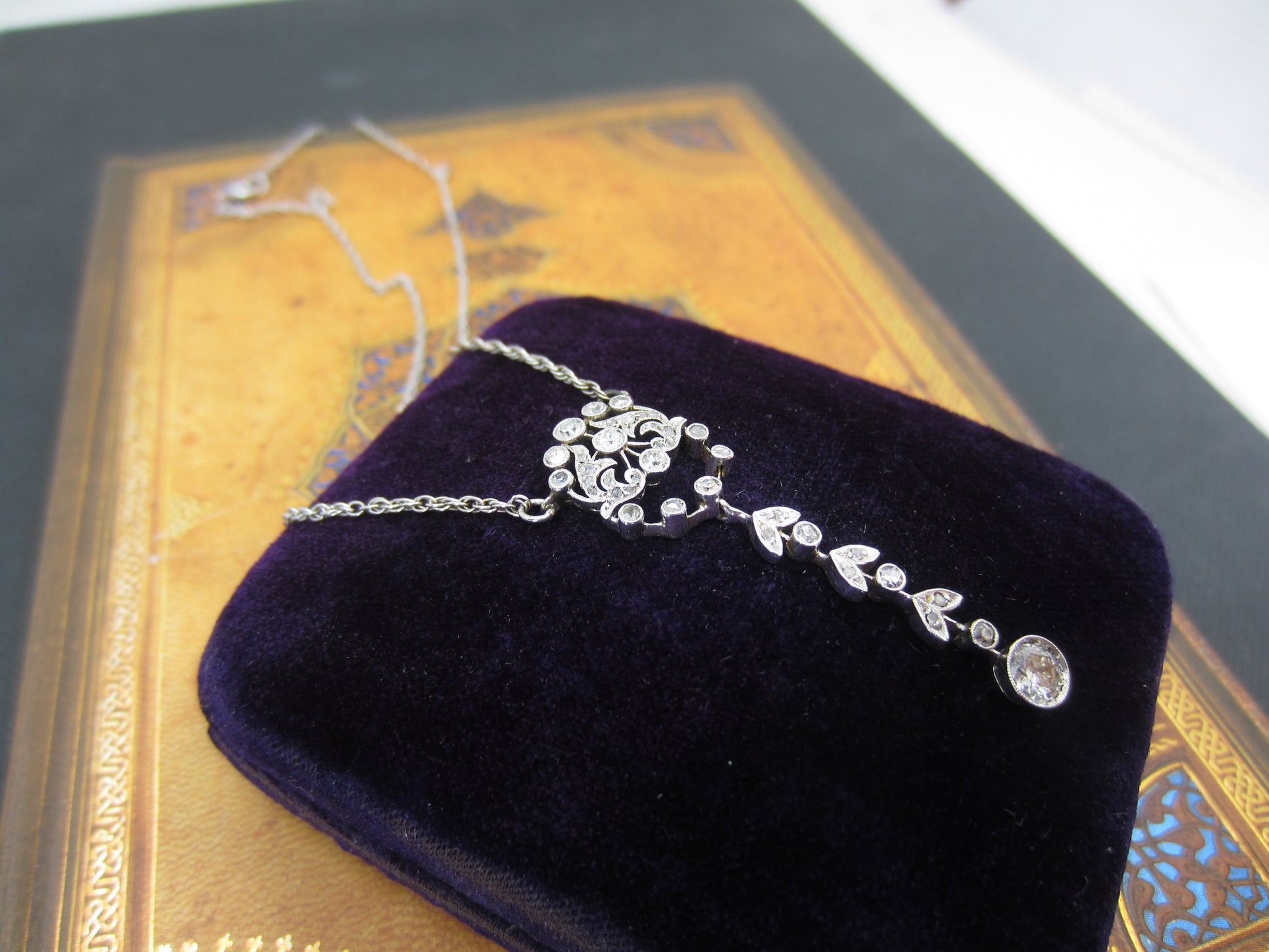 Edwardian Diamond Drop Necklace Platinum/18k c. 1915