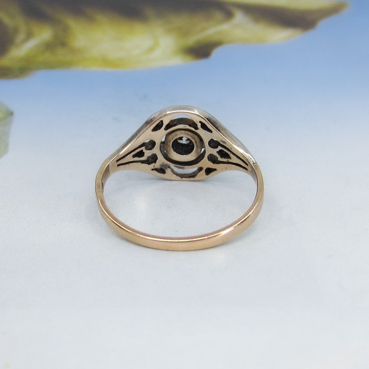 SOLD--Edwardian Diamond Openwork Ring Silver/14k, Austria c. 1910