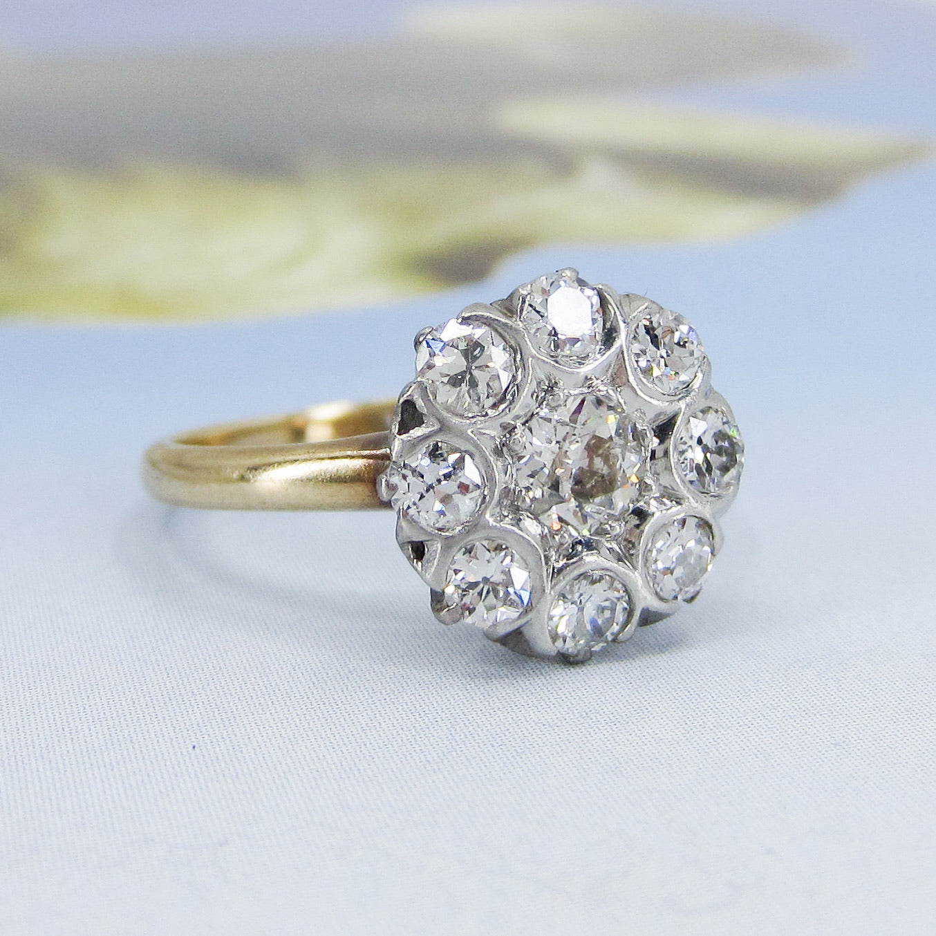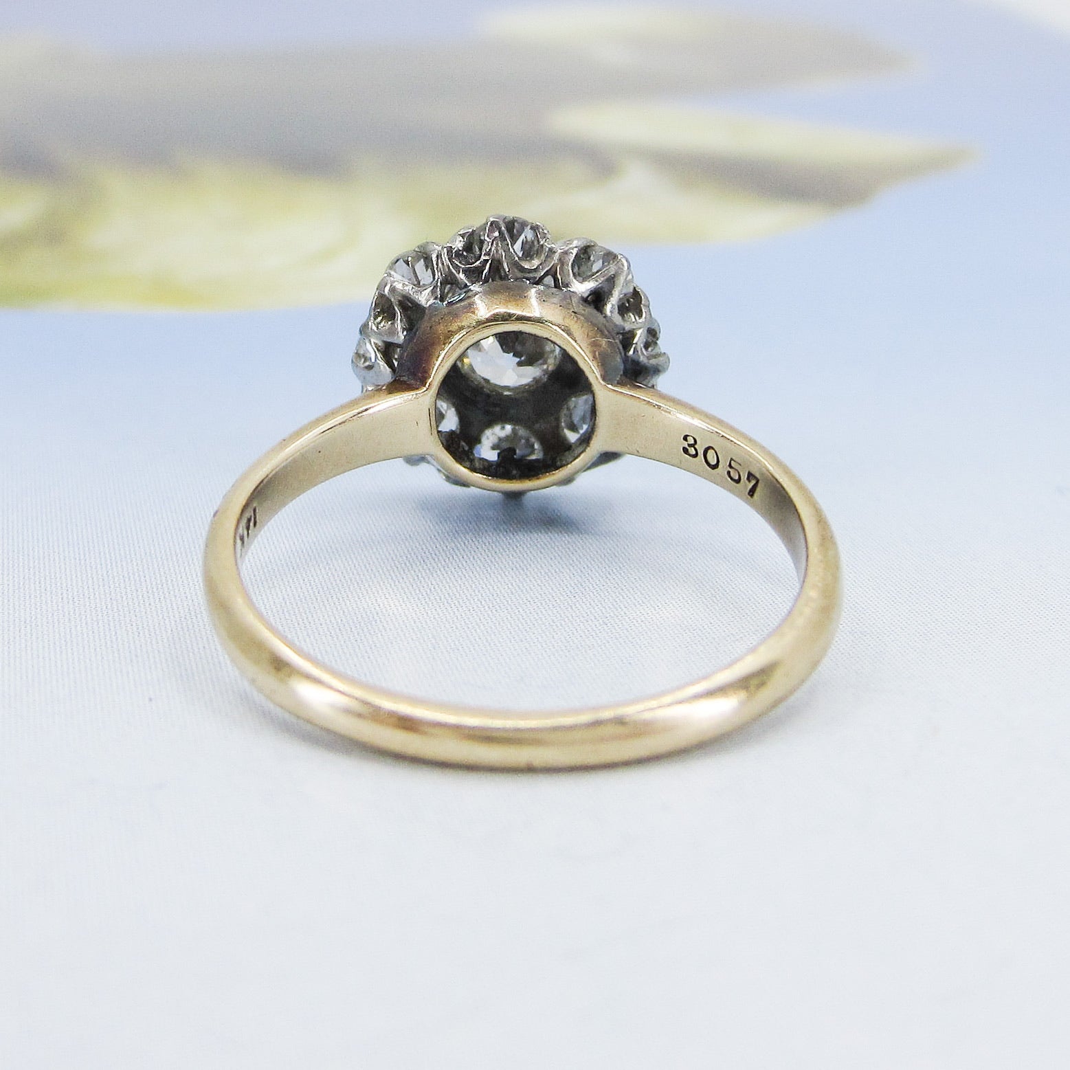 SOLD—Art Deco Old European Diamond Cluster Ring 14k c. 1920