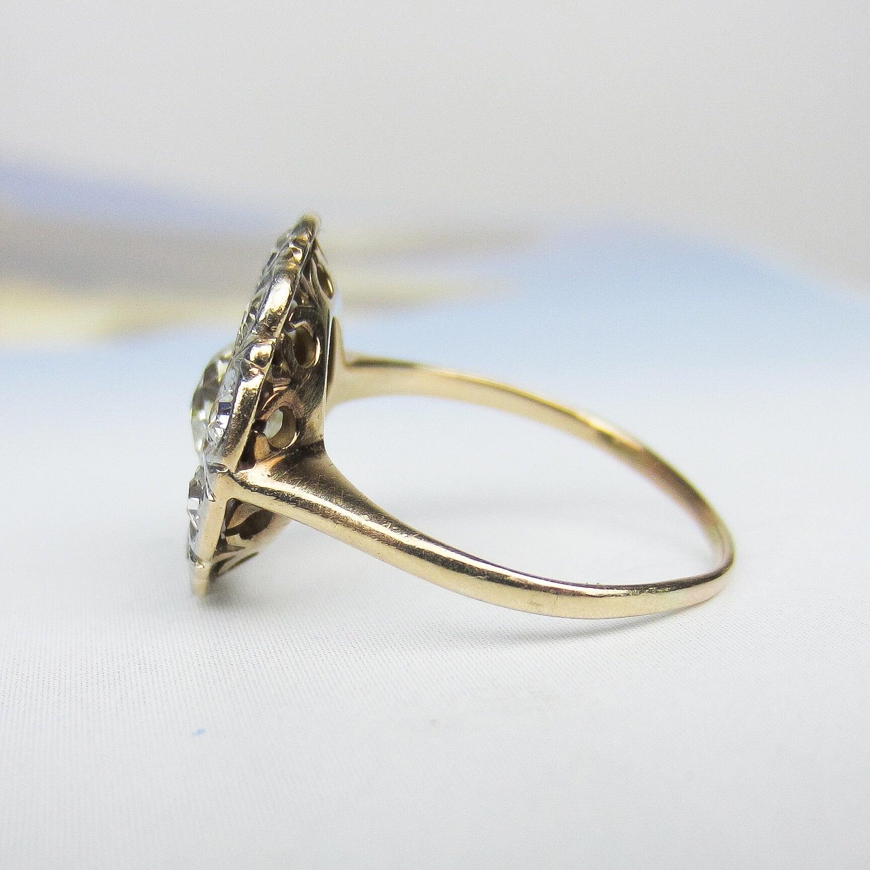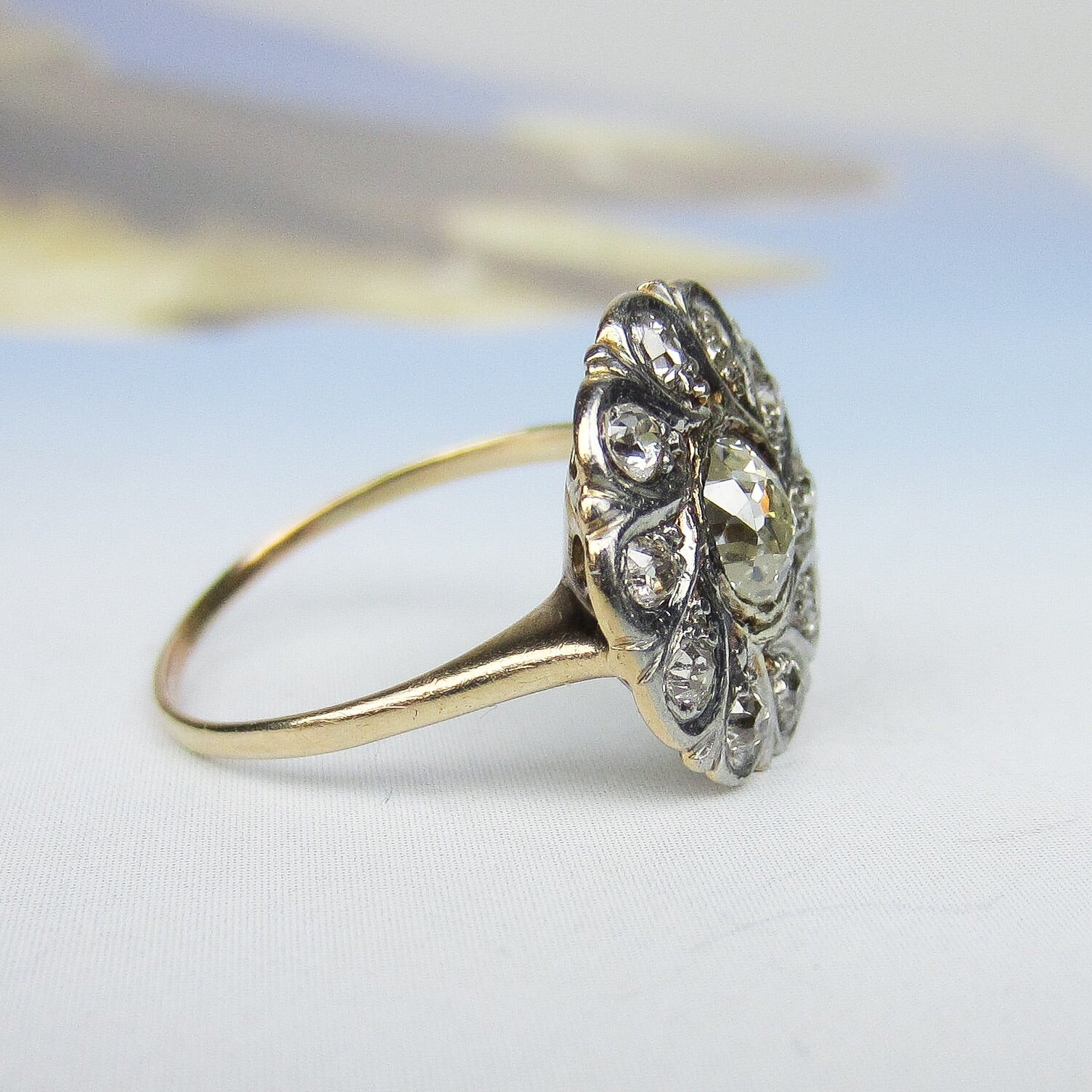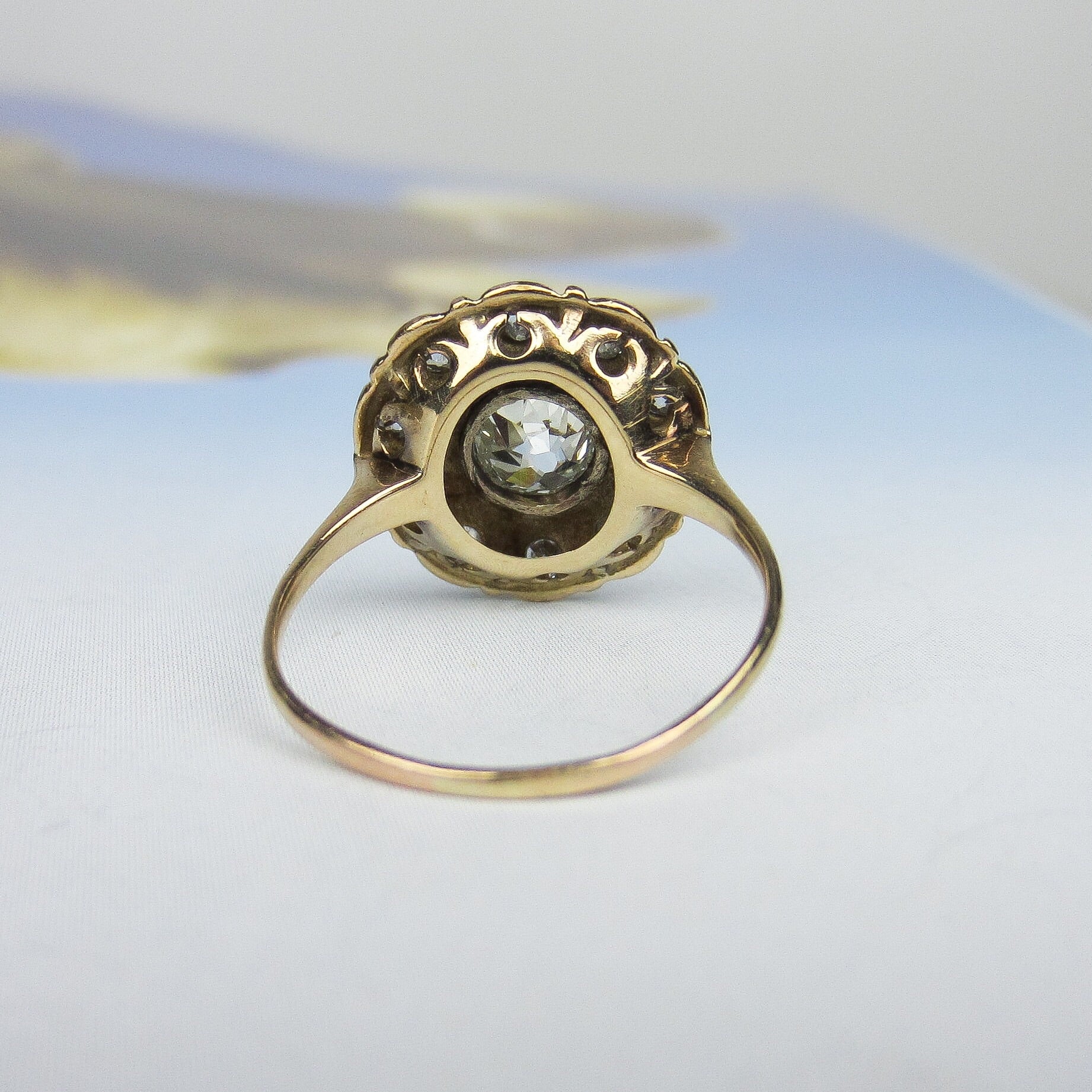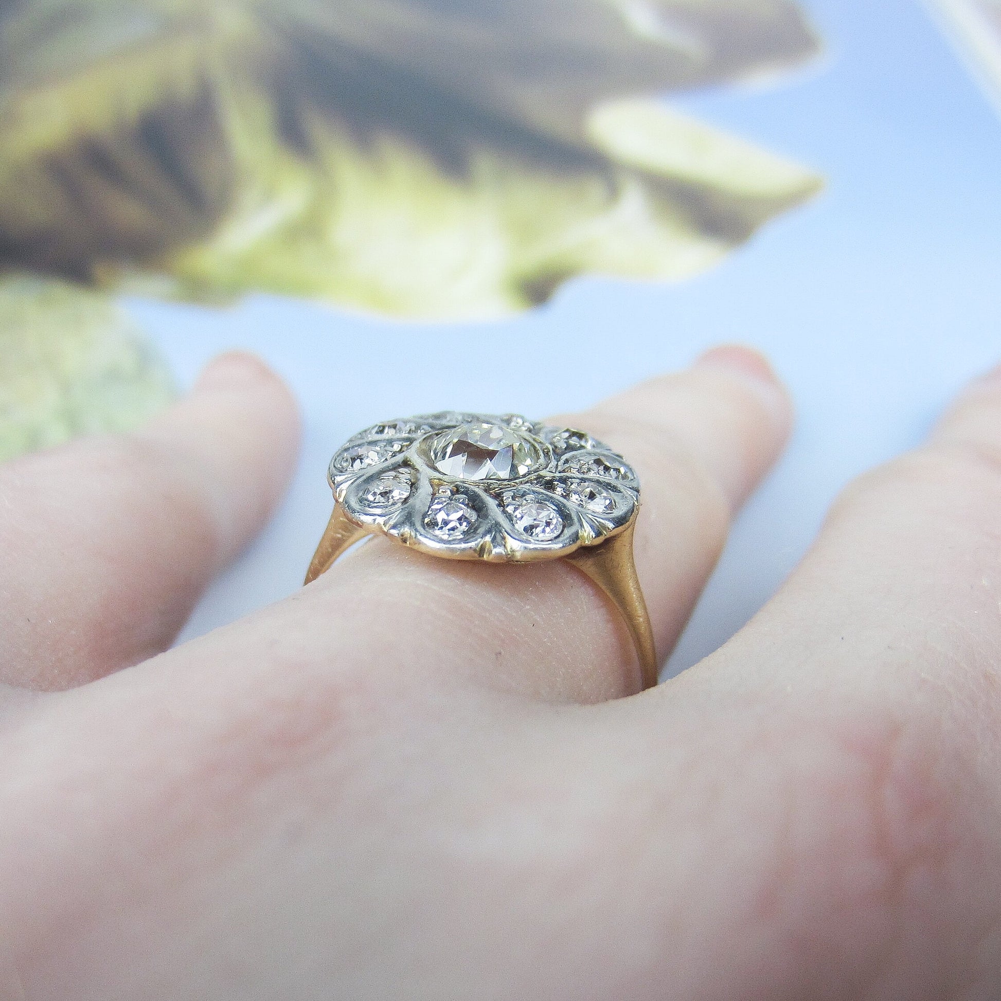 SOLD--Edwardian Old Mine Diamond Cluster Ring Platinum/14k c. 1910