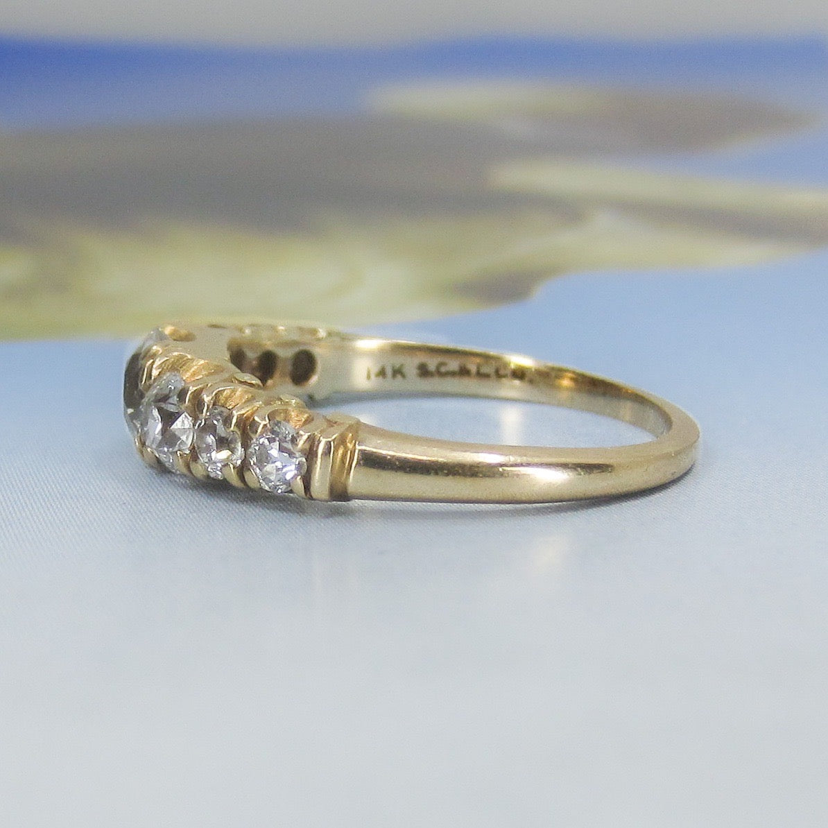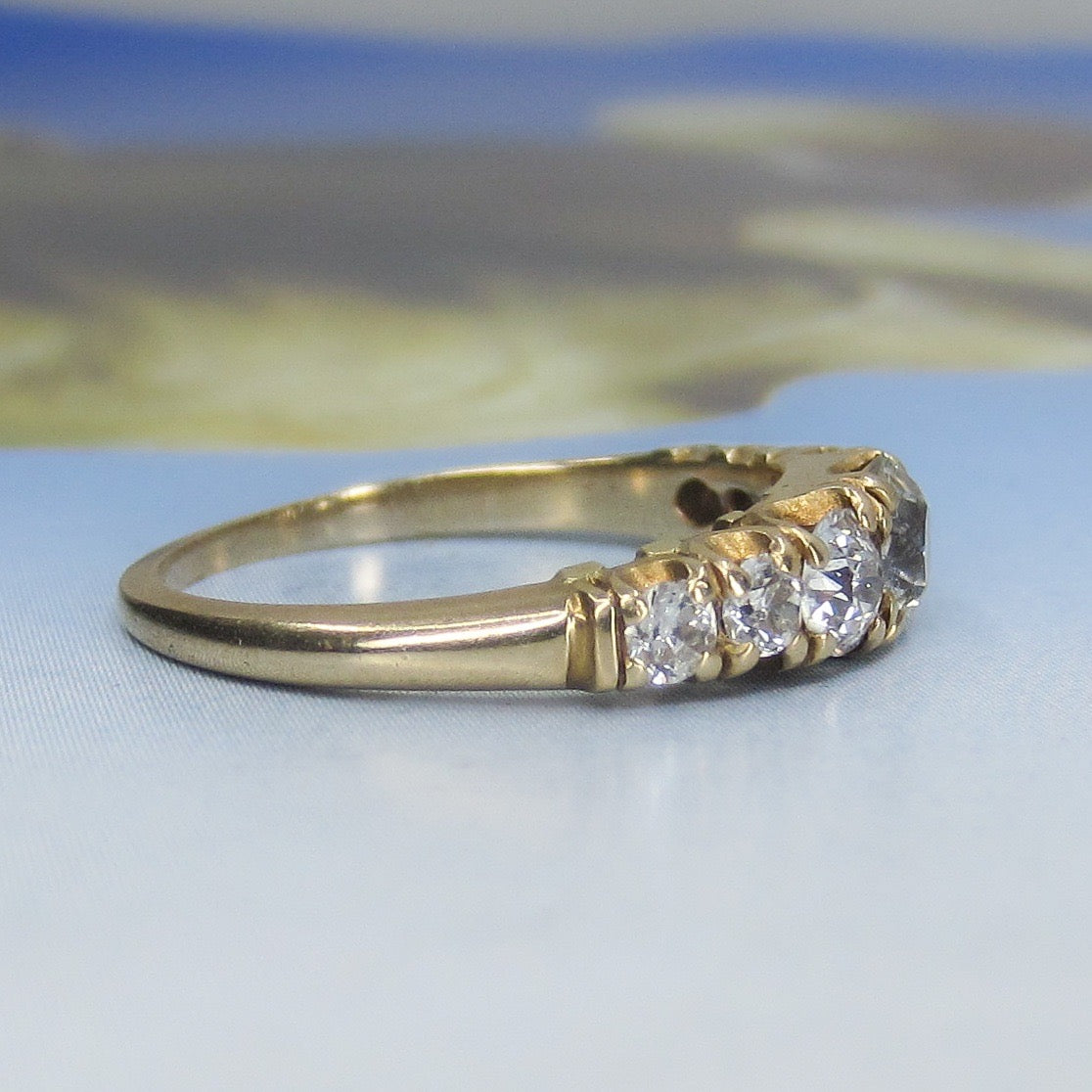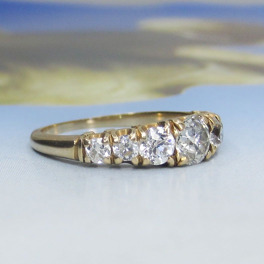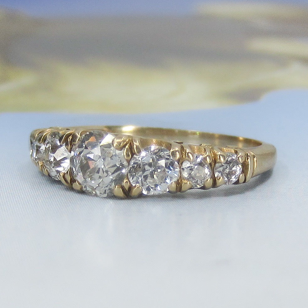SOLD-Edwardian Shreve, Crump & Low Seven Old Euro Diamond Ring 14k c. 1910