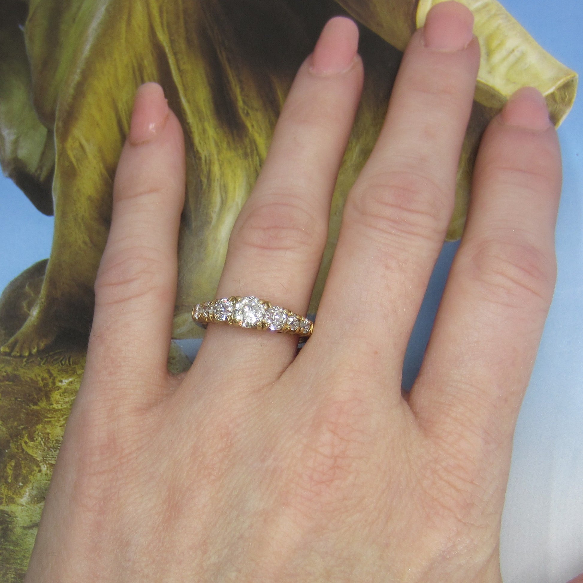 Okay, so this is basically a one-in-a-lifetime ring and I am SO glad I get to have it here at the store for however long until it finds it's new home! Made by famed American jeweler Shreve, Crump & Low--one of America's oldest jewelry houses, read about them!--in the Edwardian period and set with seven, yes SEVEN, of the most beautiful, pillowy Old European cut diamonds you'll ever see. You've got 1.40ctw with a .60ct center! It's about as regal as it gets and would make a killer wedding band OR engagement ring! Or gift yourself a special lucky seven diamonds band from the best of the best. It's gorgeous, sparkles like crazy, stacks perfectly with whatever you want to stack with it and has amazing presence on the hand. If you're in Hudson, come to the store and fall in love with it!
