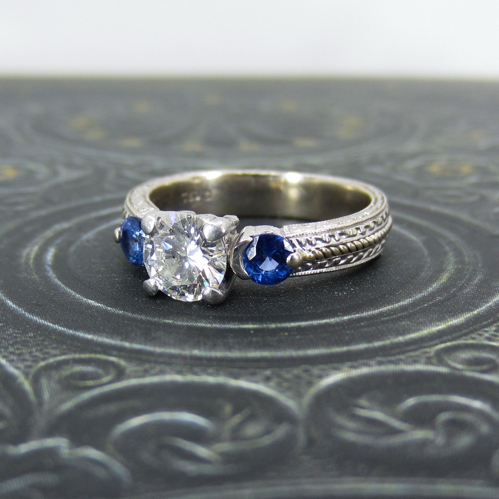 Estate Diamond .84ct and Sapphire Engagement Ring Platinum/18k