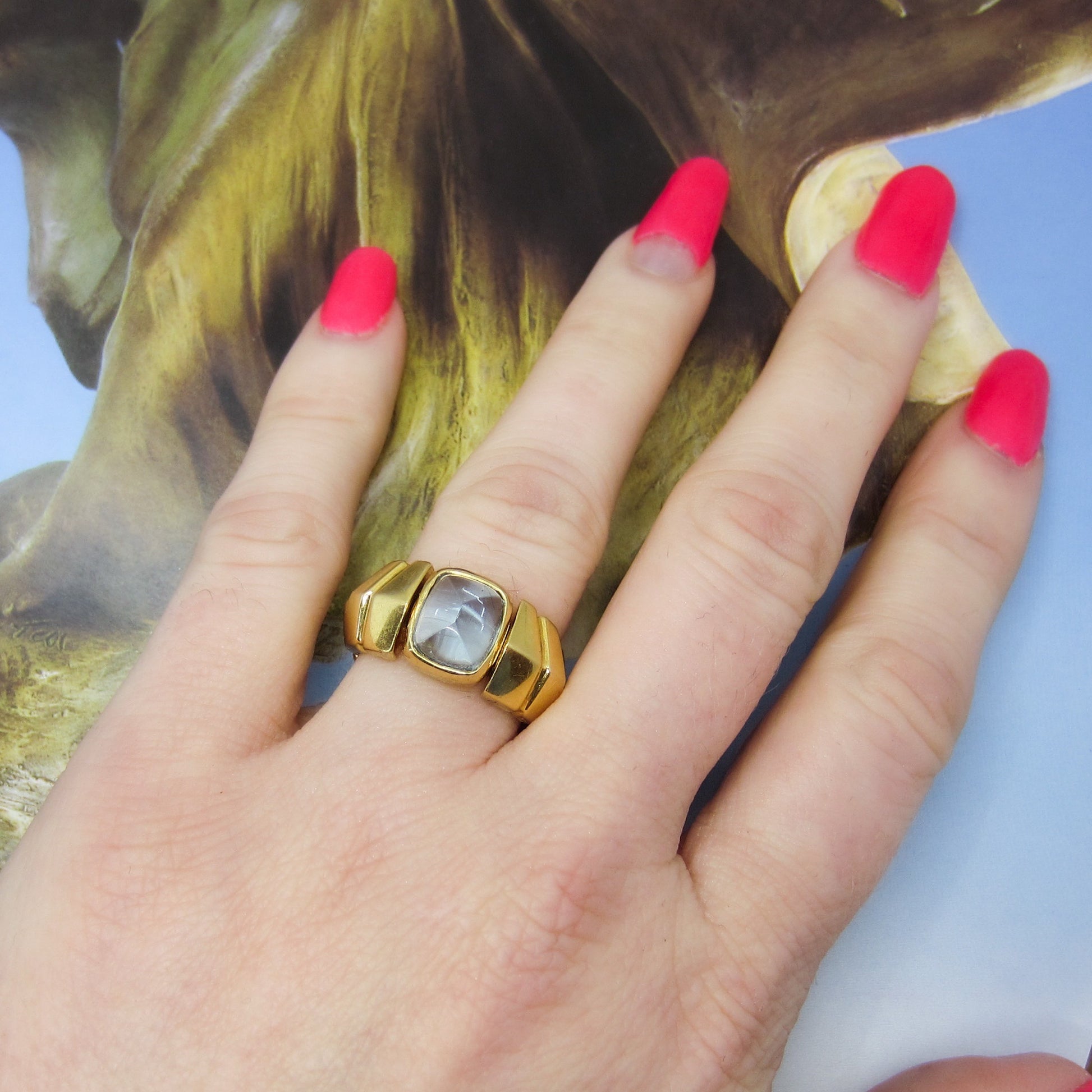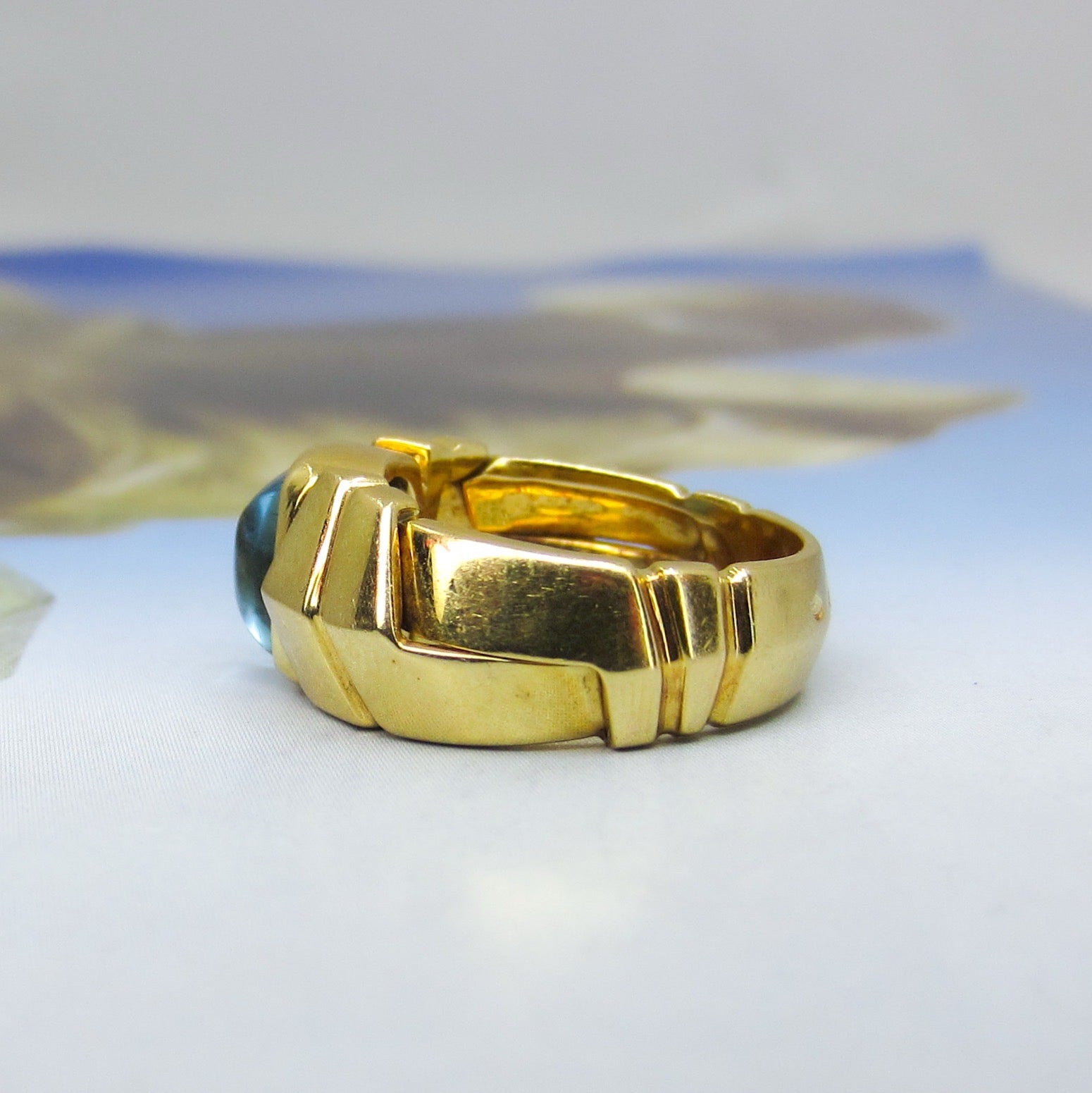 A classic Van Cleef ring in rich 18k yellow gold with a natural aquamarine cabochon. This ring is GORGEOUS and way better than the photos show.