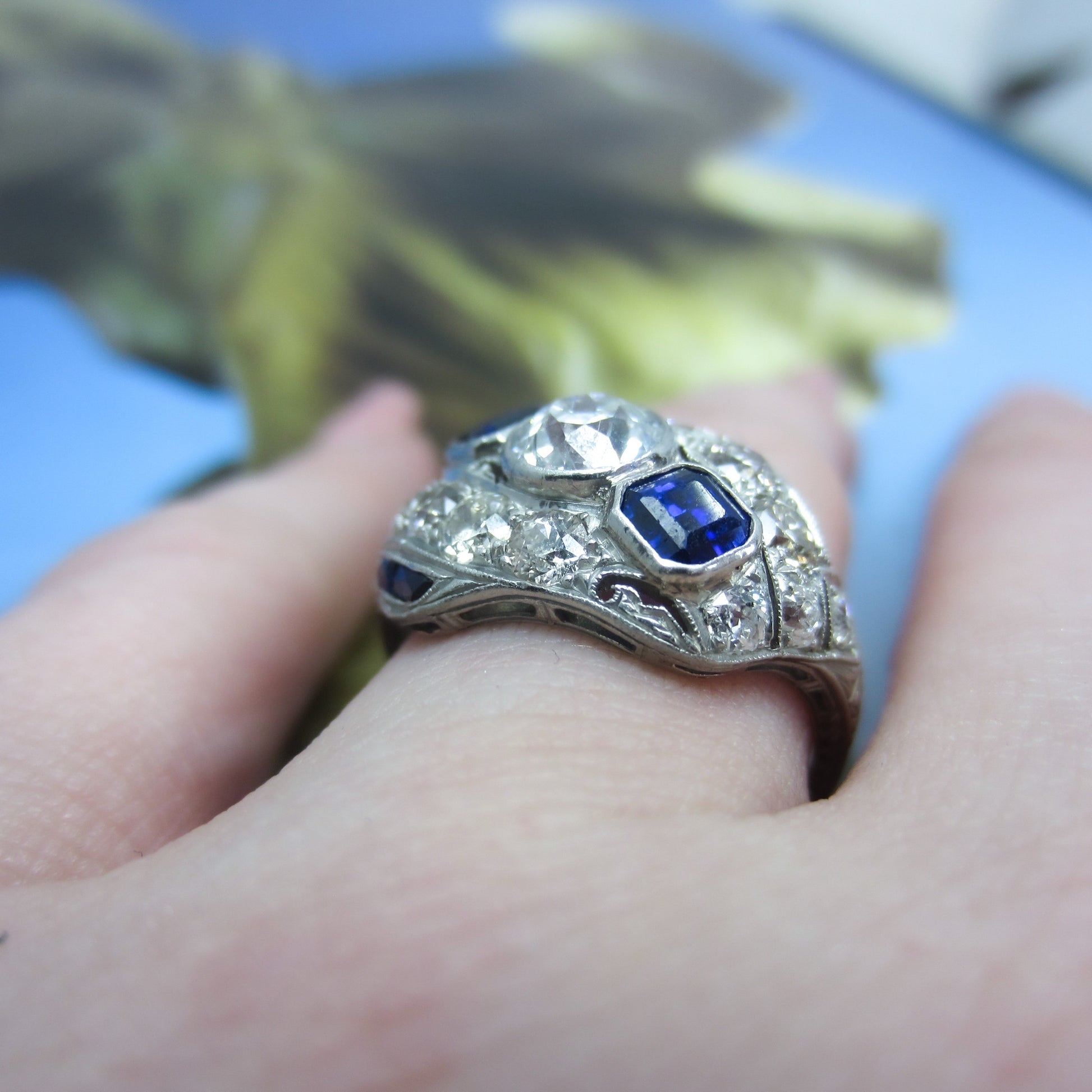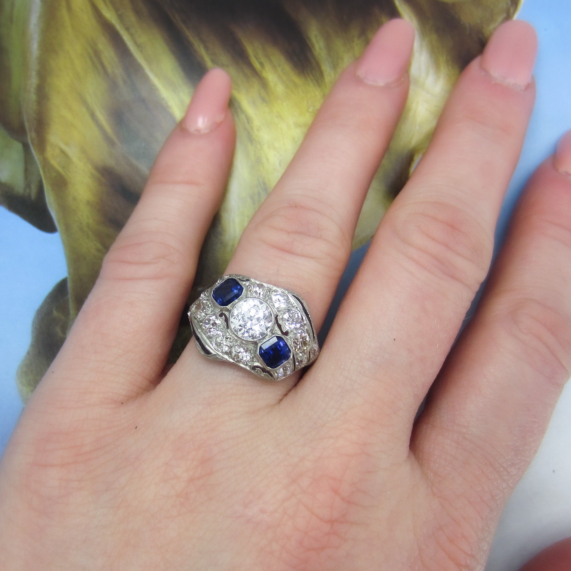 Fabulous Art Deco Diamond and Sapphire Ring Platinum c. 1920