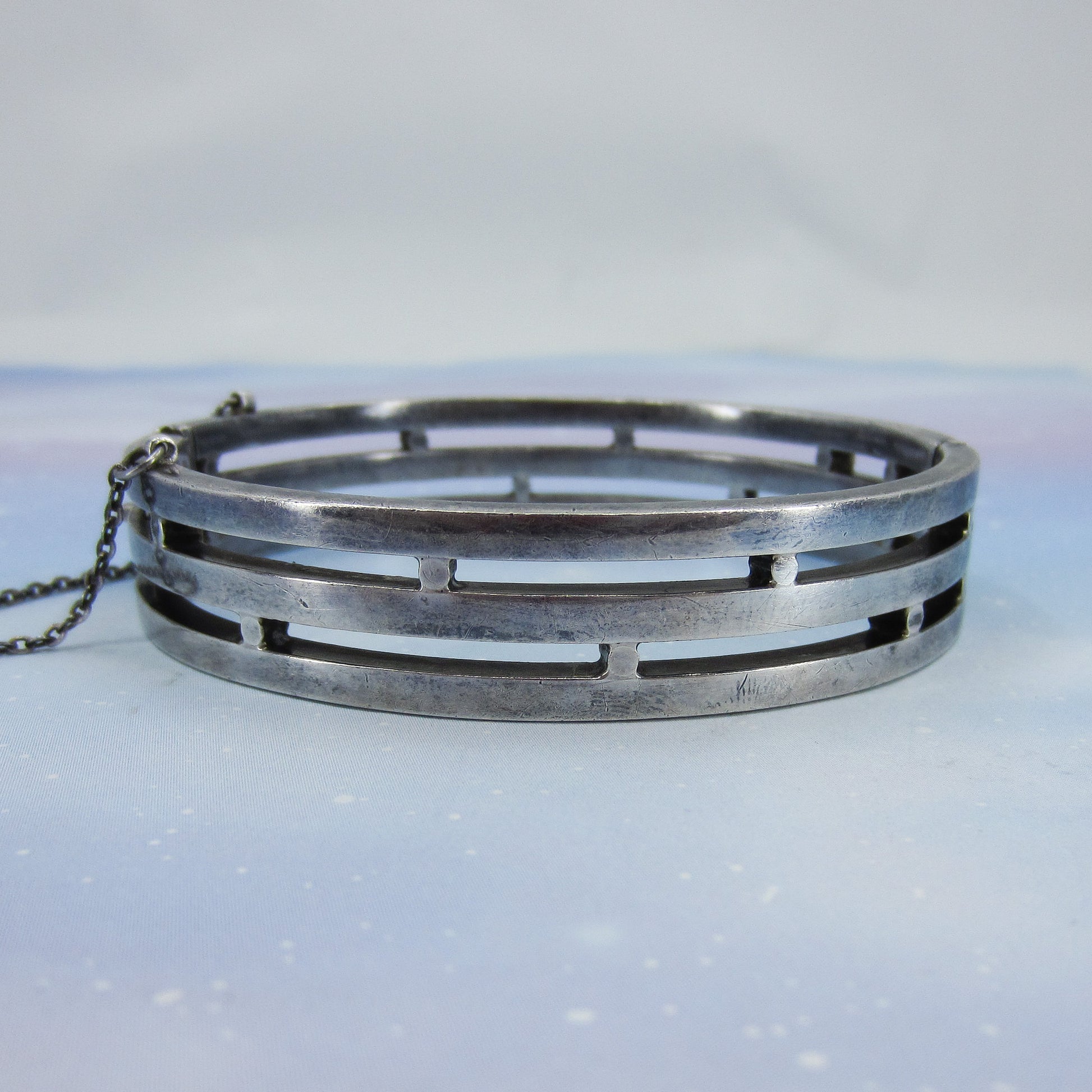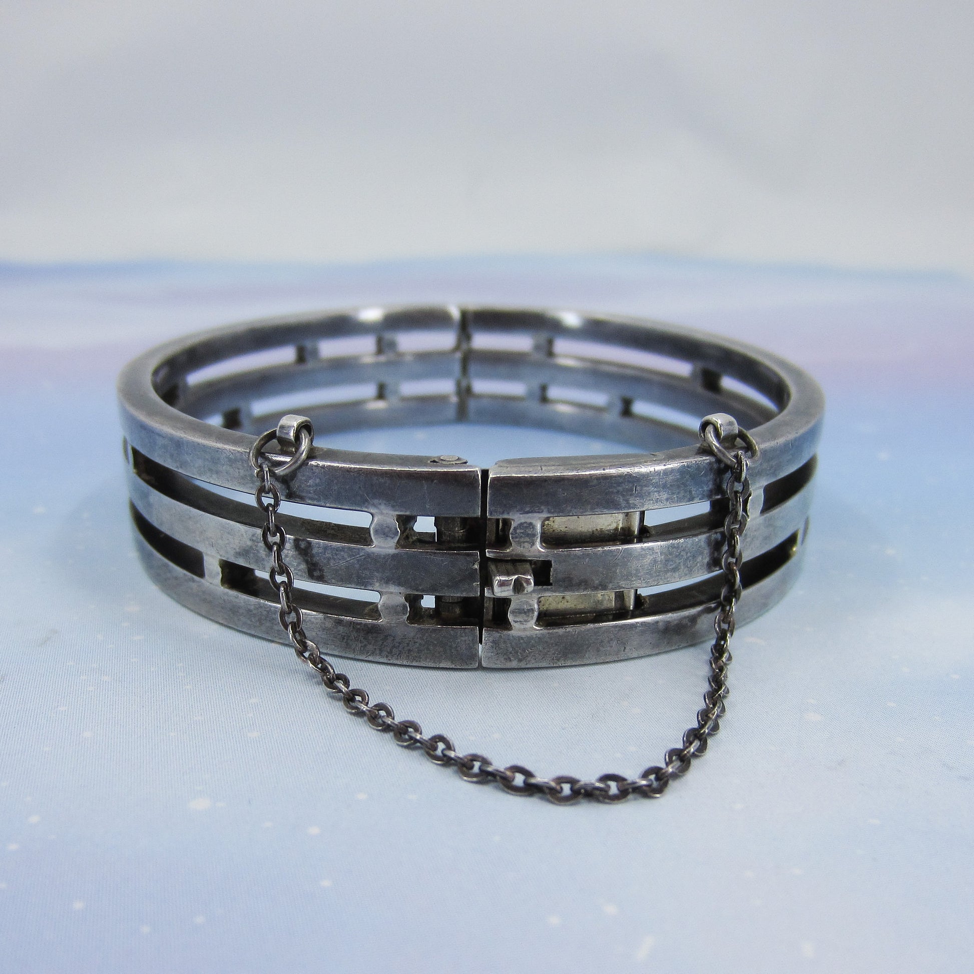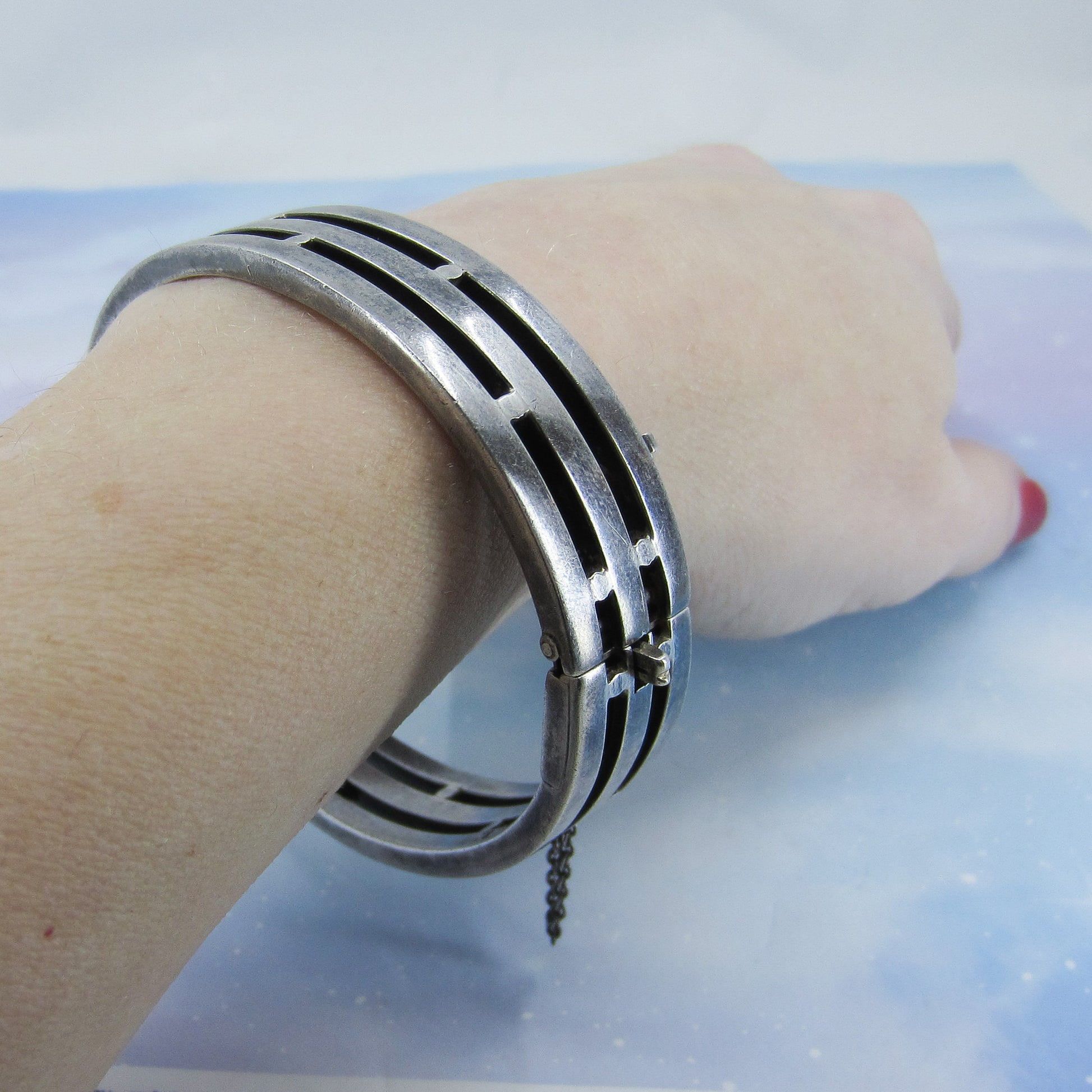 Heavy Mid-Century Taxco Hinged Bangle Sterling, Cony c. 1950