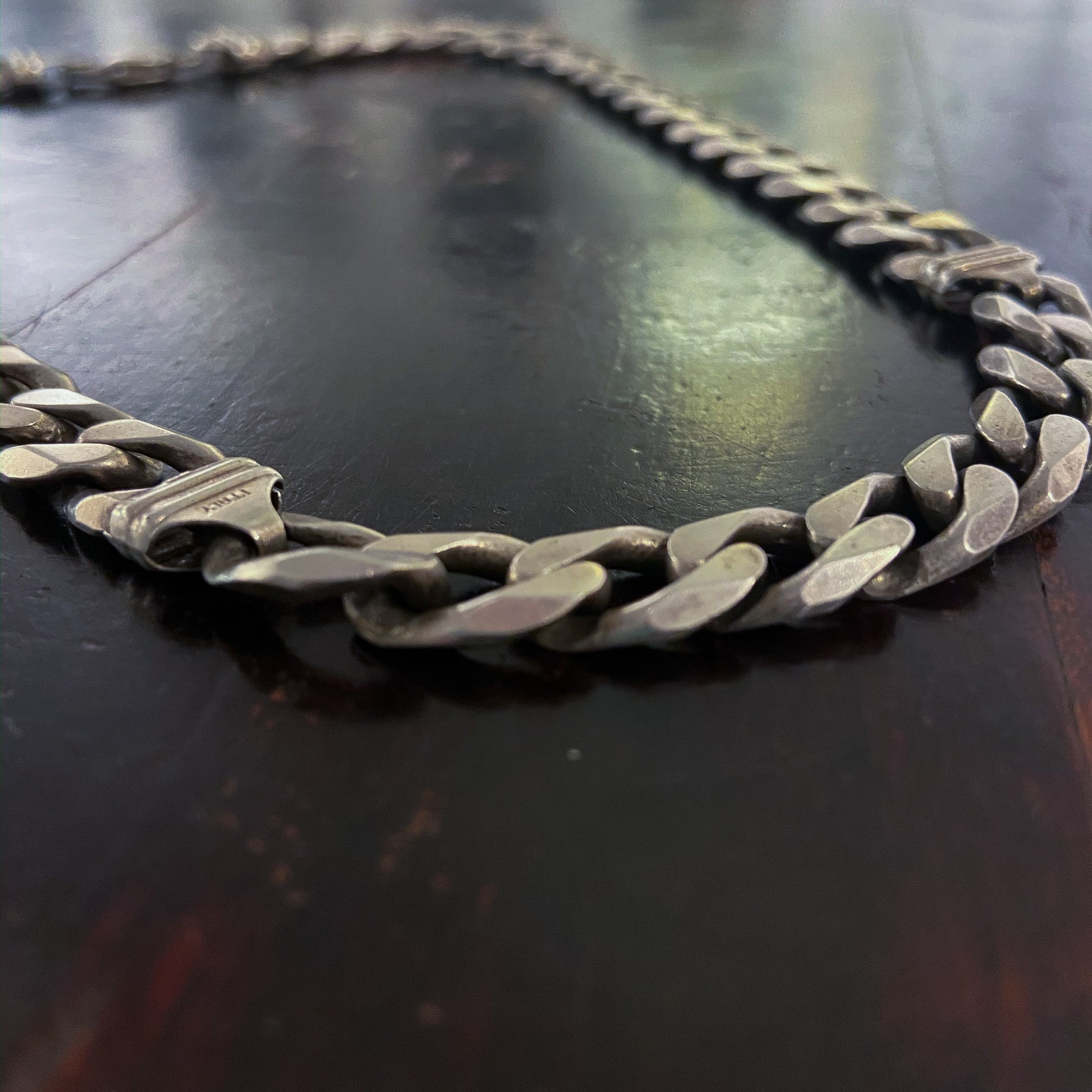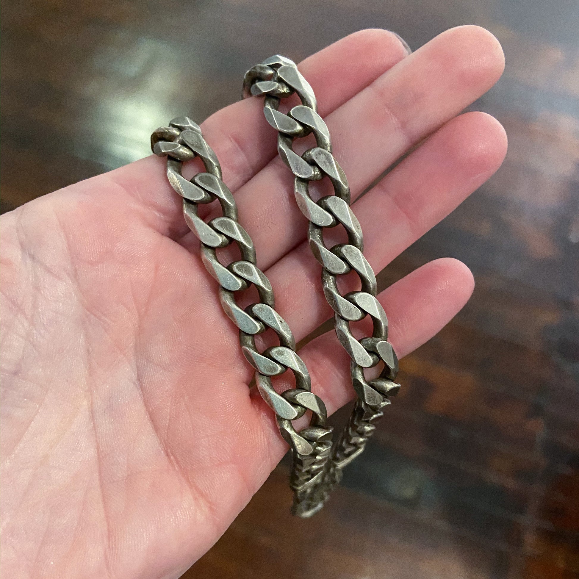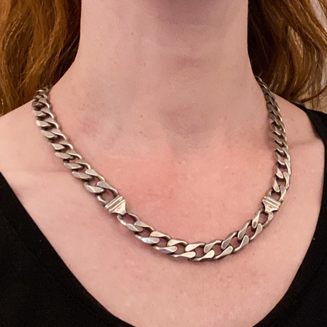 SOLD--Heavy Unisex Flat Curb Link Chain Sterling c. 1980