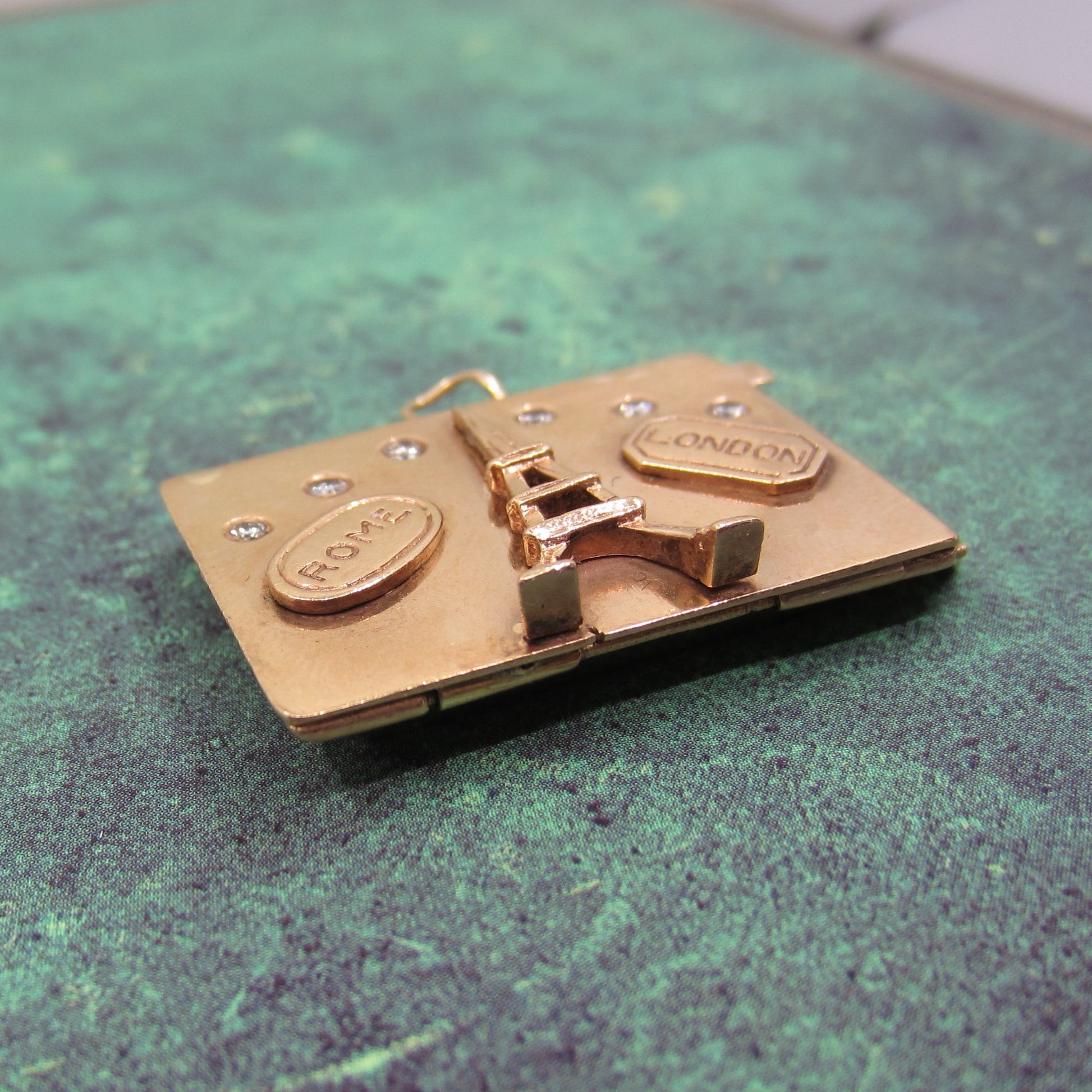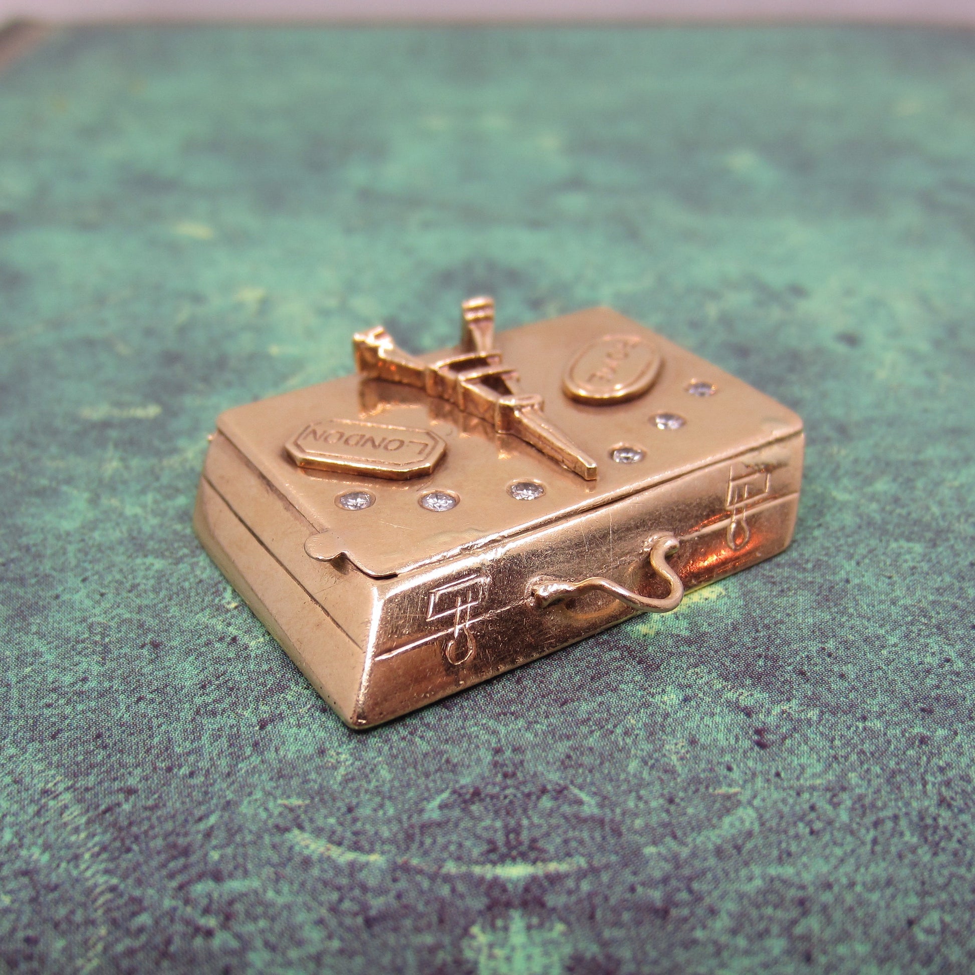 SOLD--Huge Mid-Century Diamond Suitcase Charm 14k c. 1950
