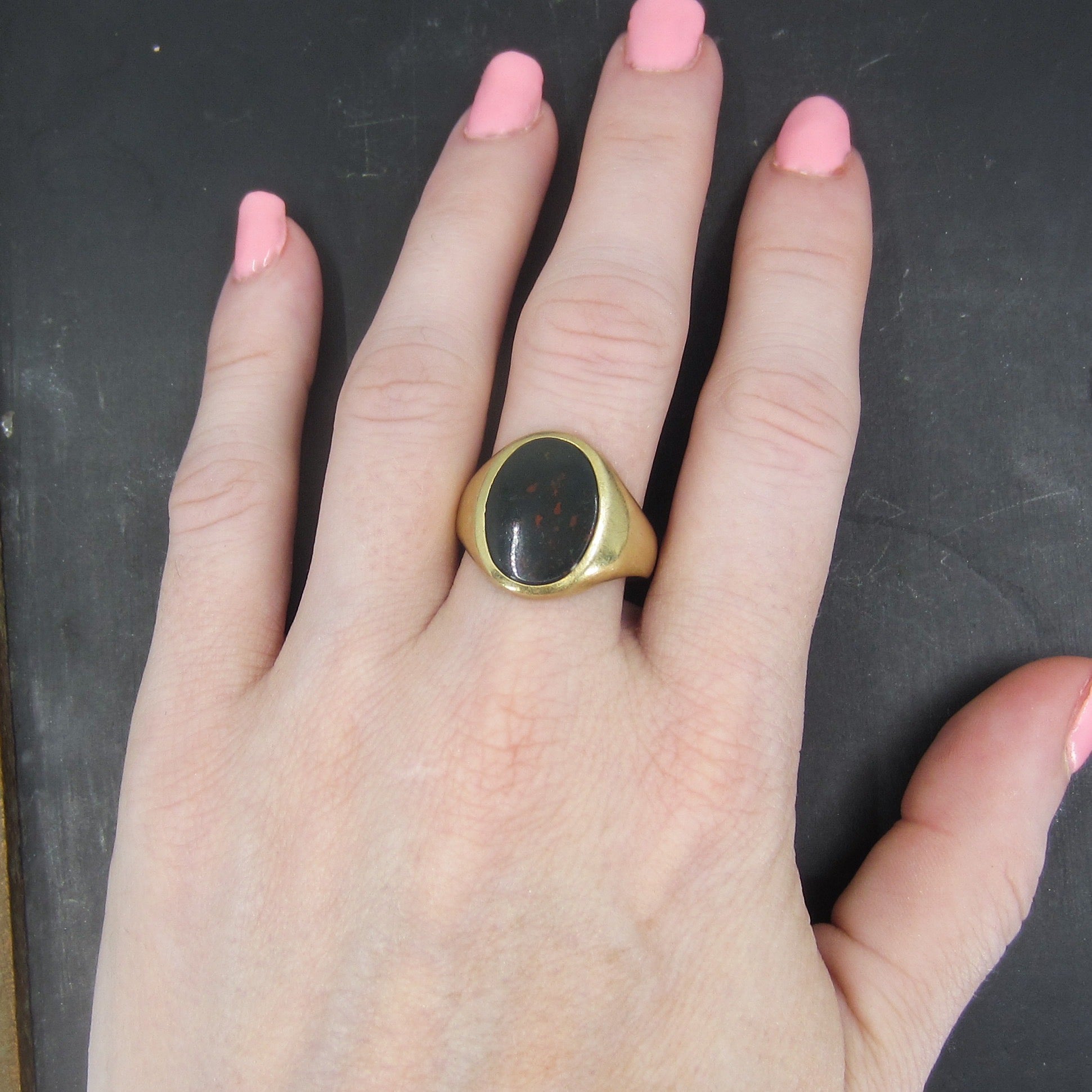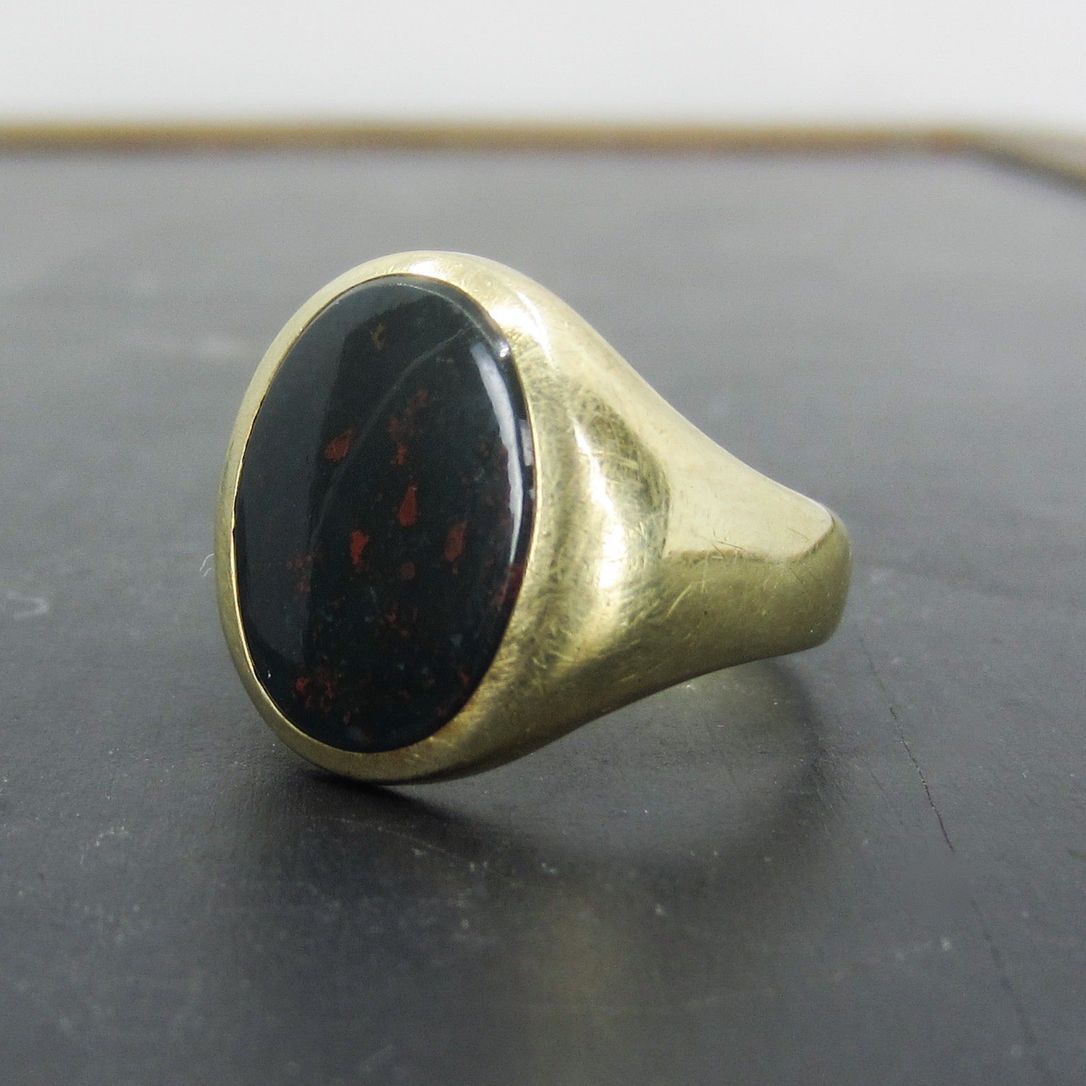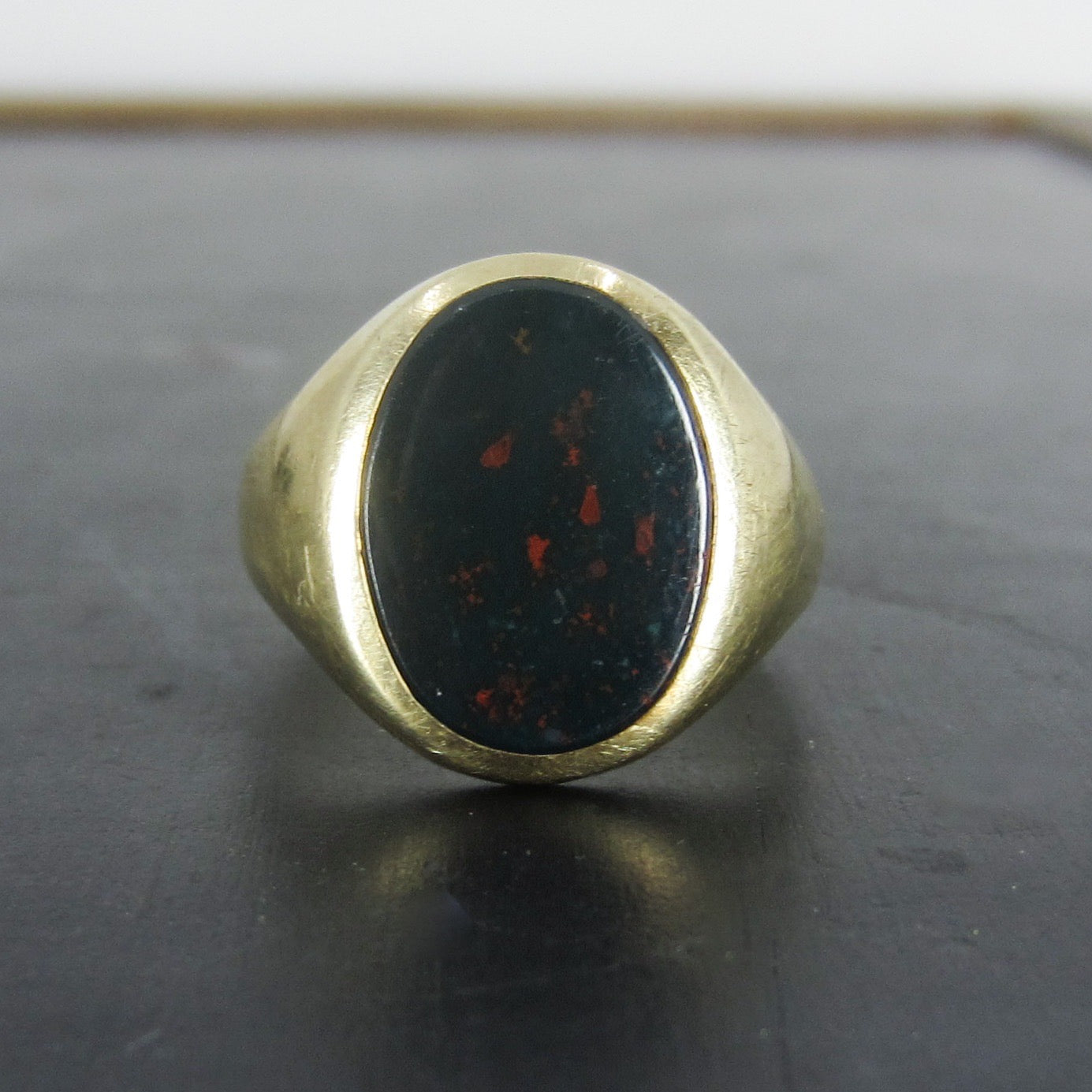 SOLD-Late Victorian Bloodstone Signet Ring 14k c. 1900