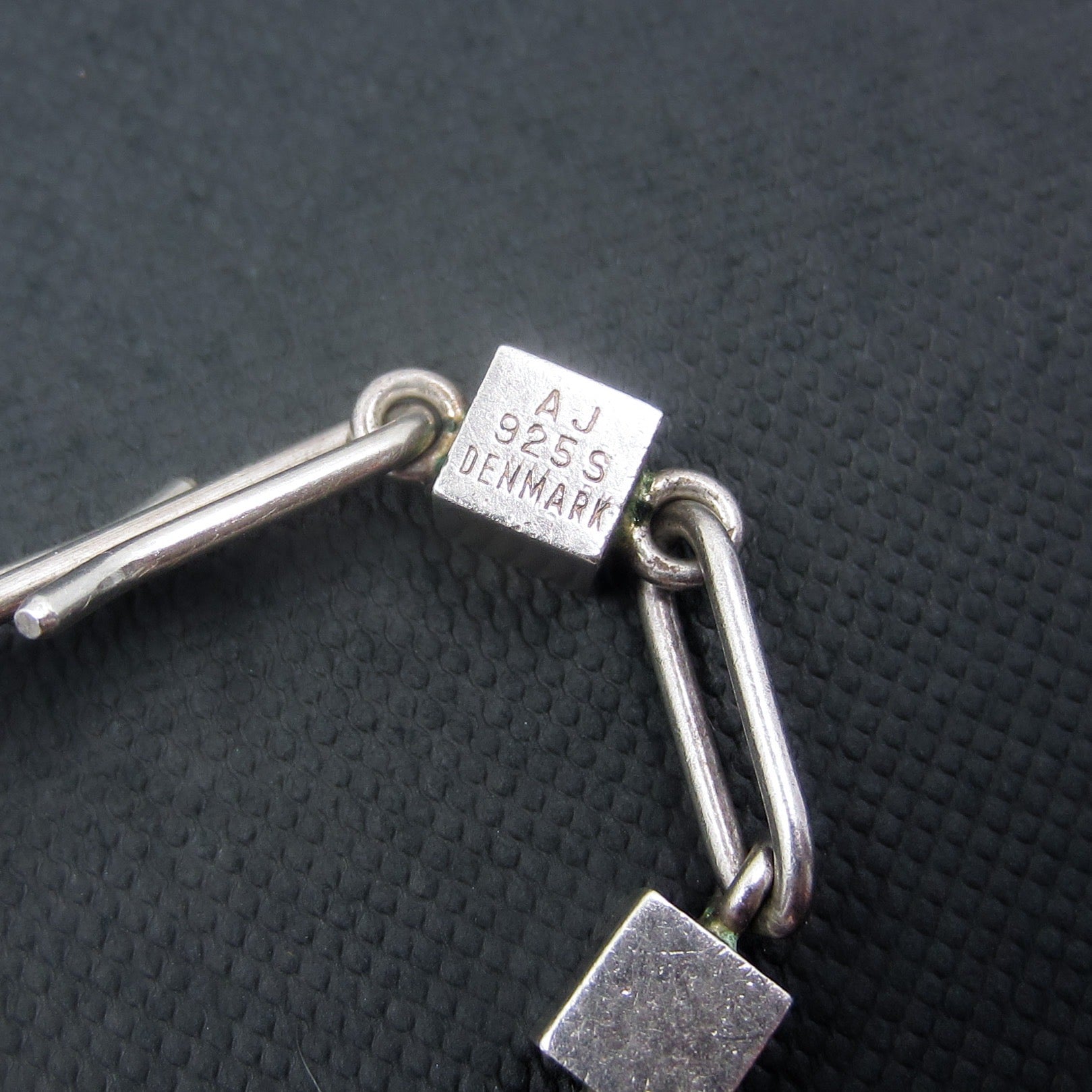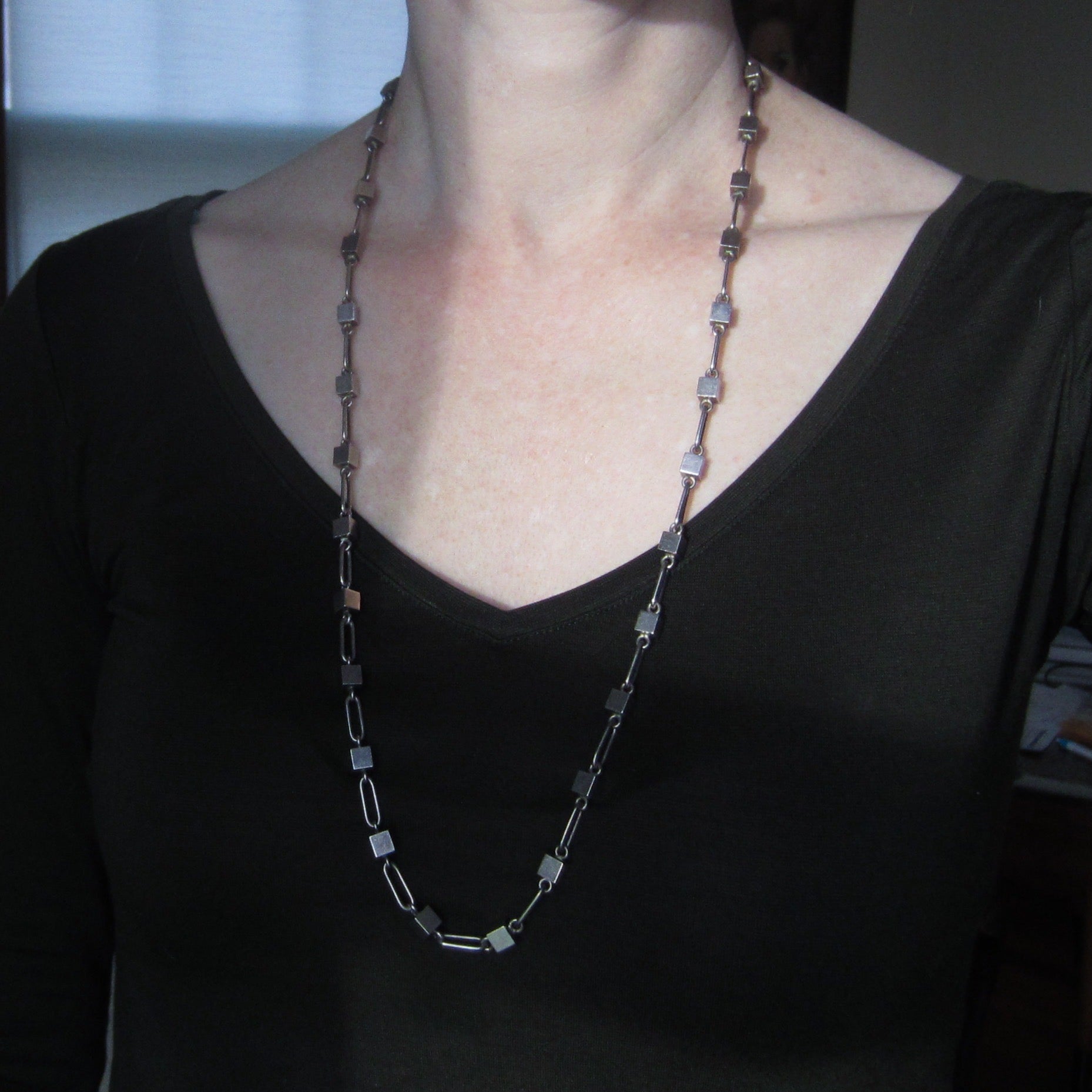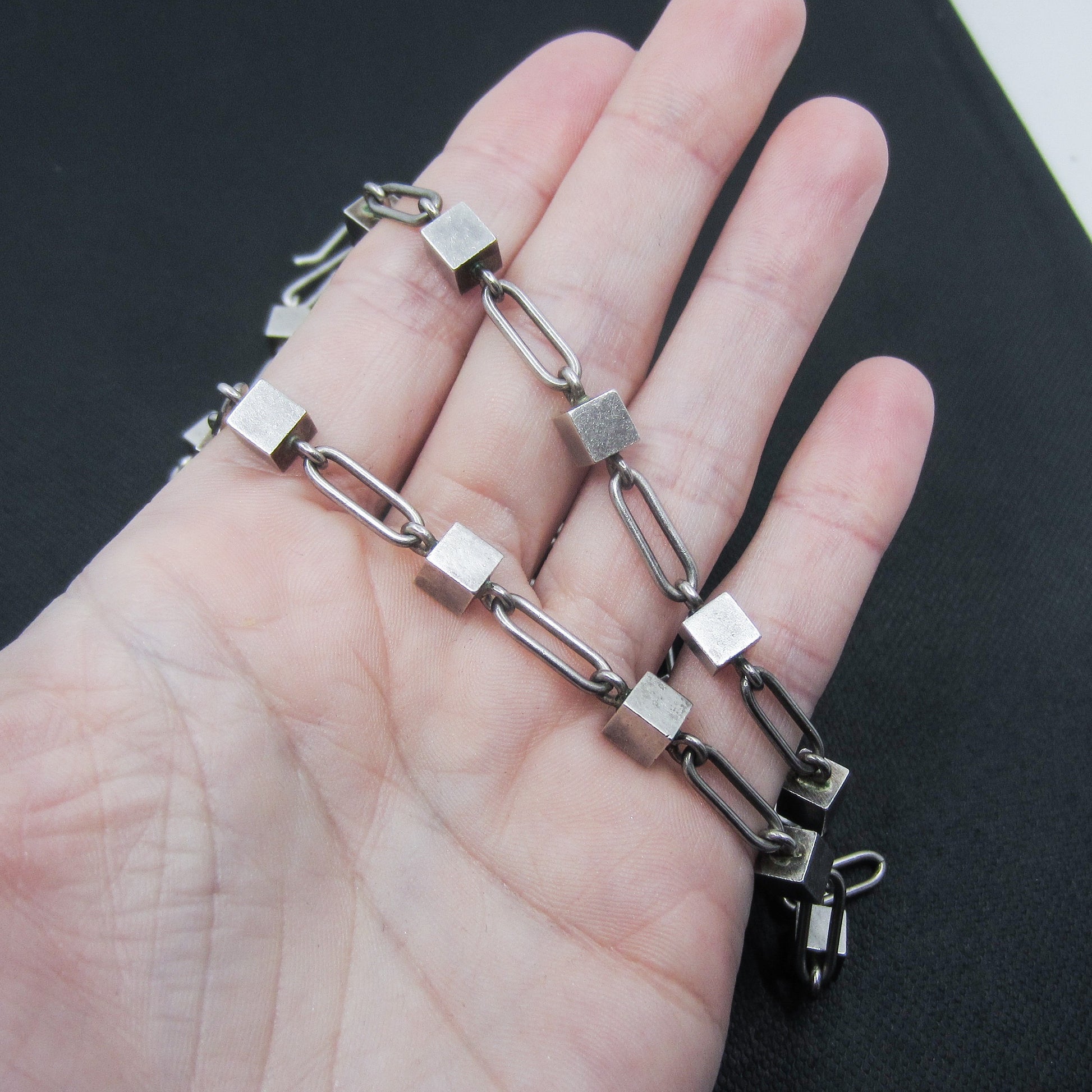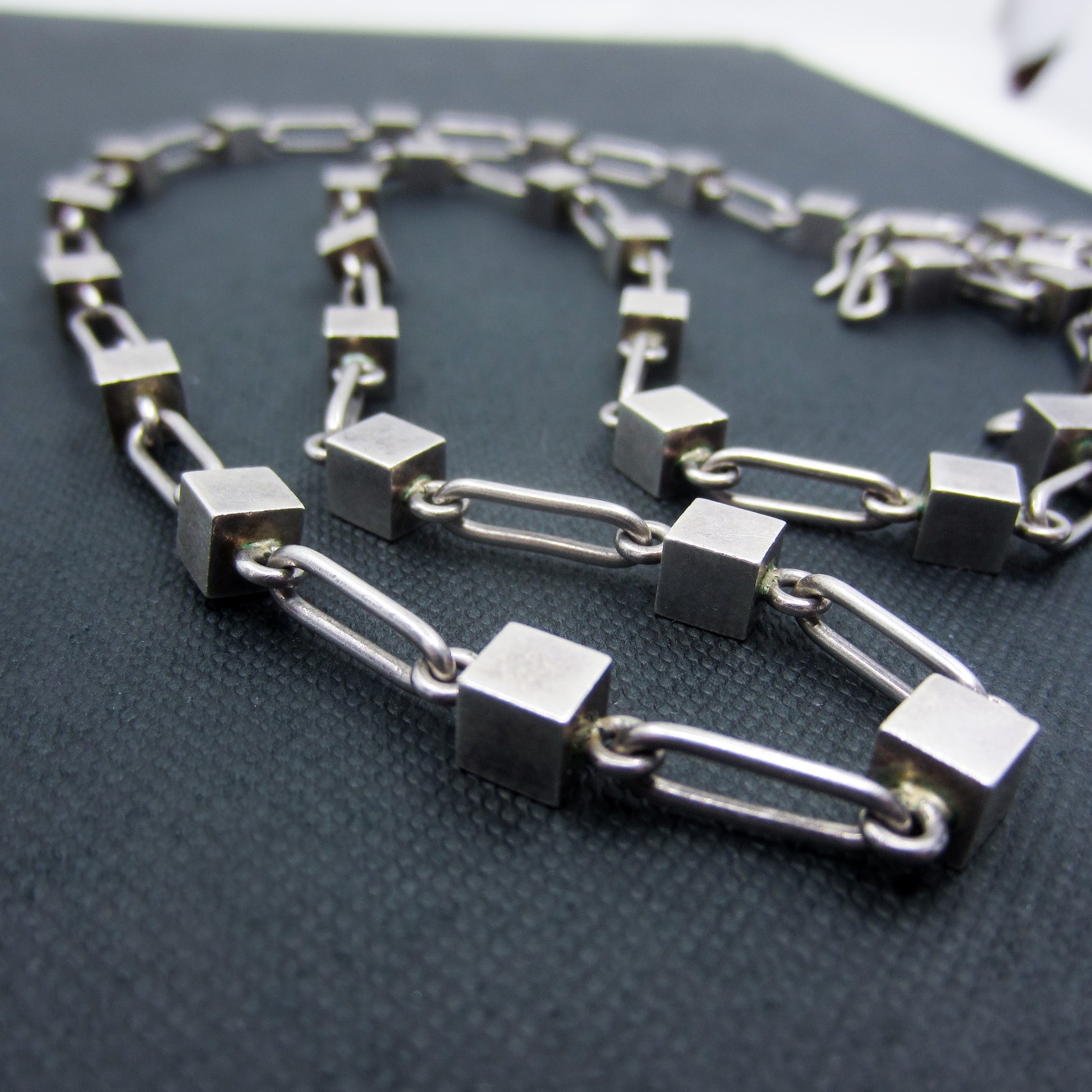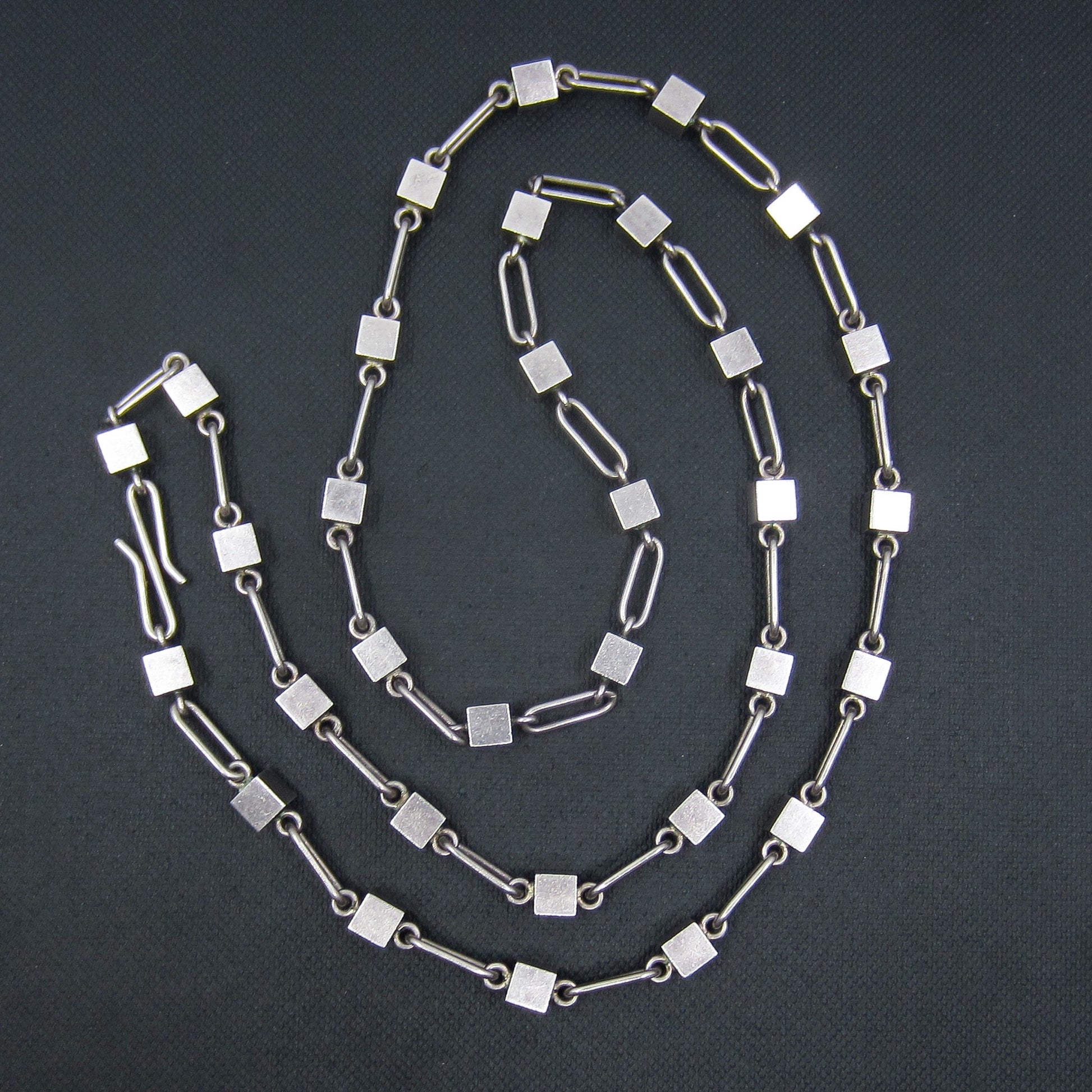 SOLD-Long Modernist Cube Chain Sterling, Arne Johansen Denmark c. 1960