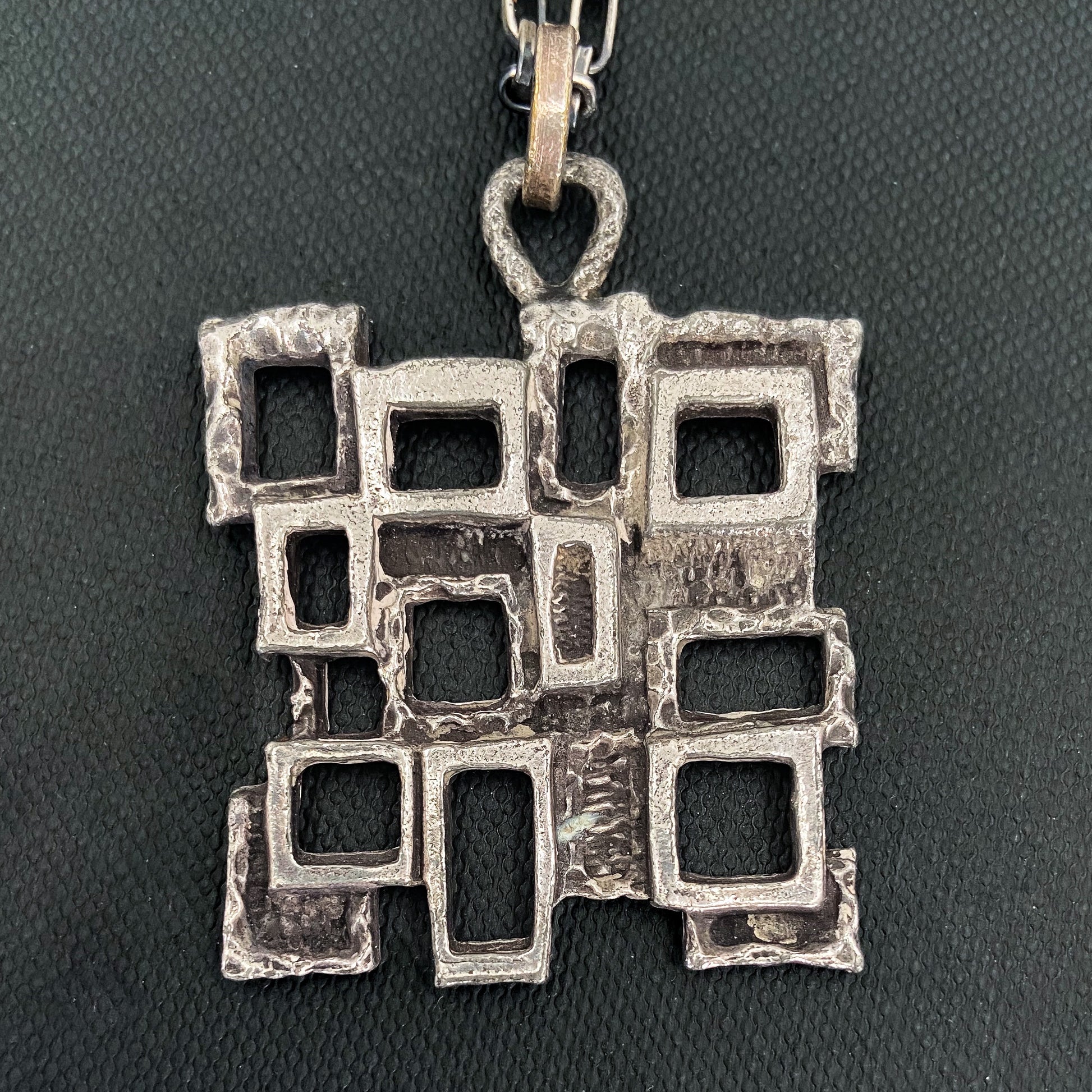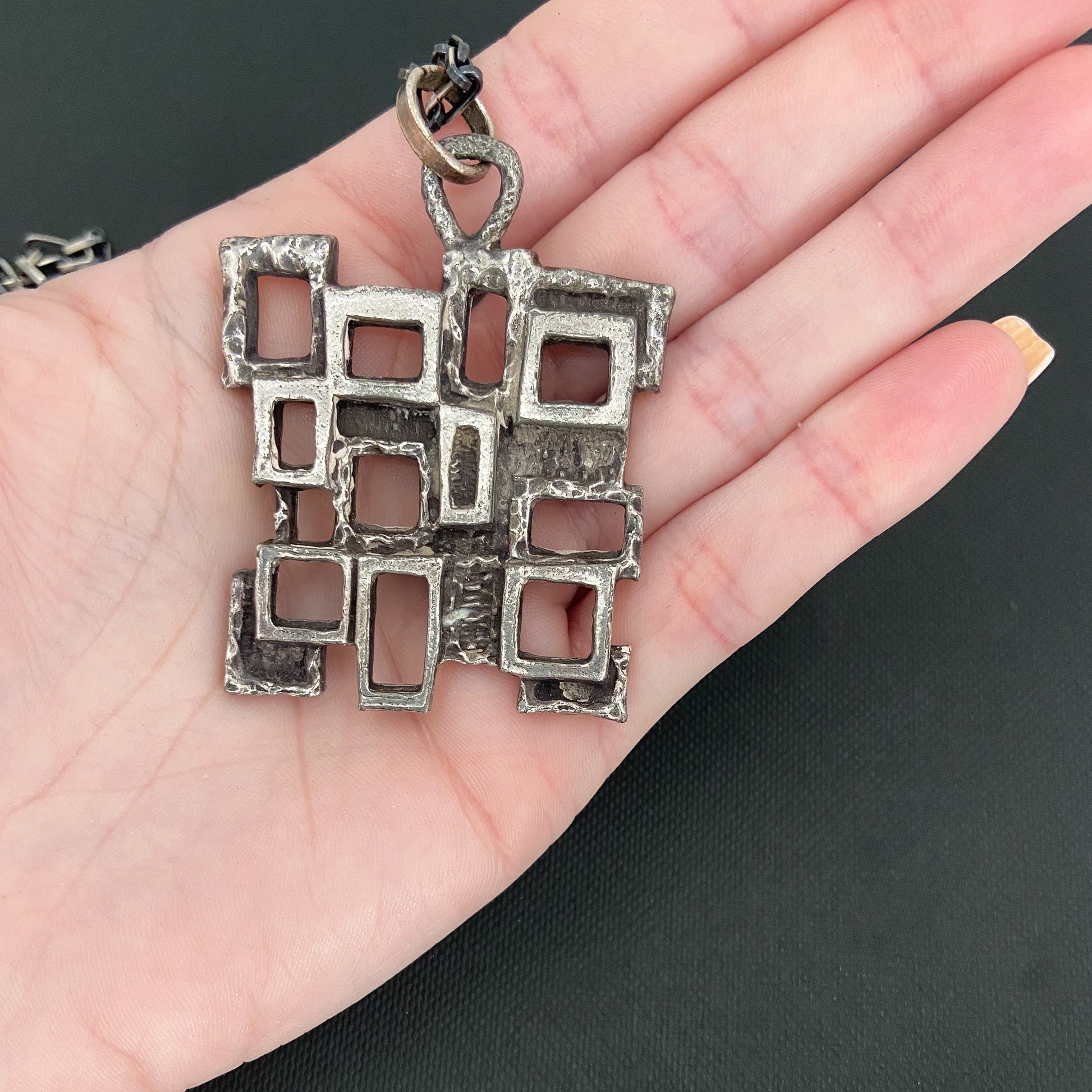 Mid-Century Brutalist Pendant and Chain Sterling c. 1960