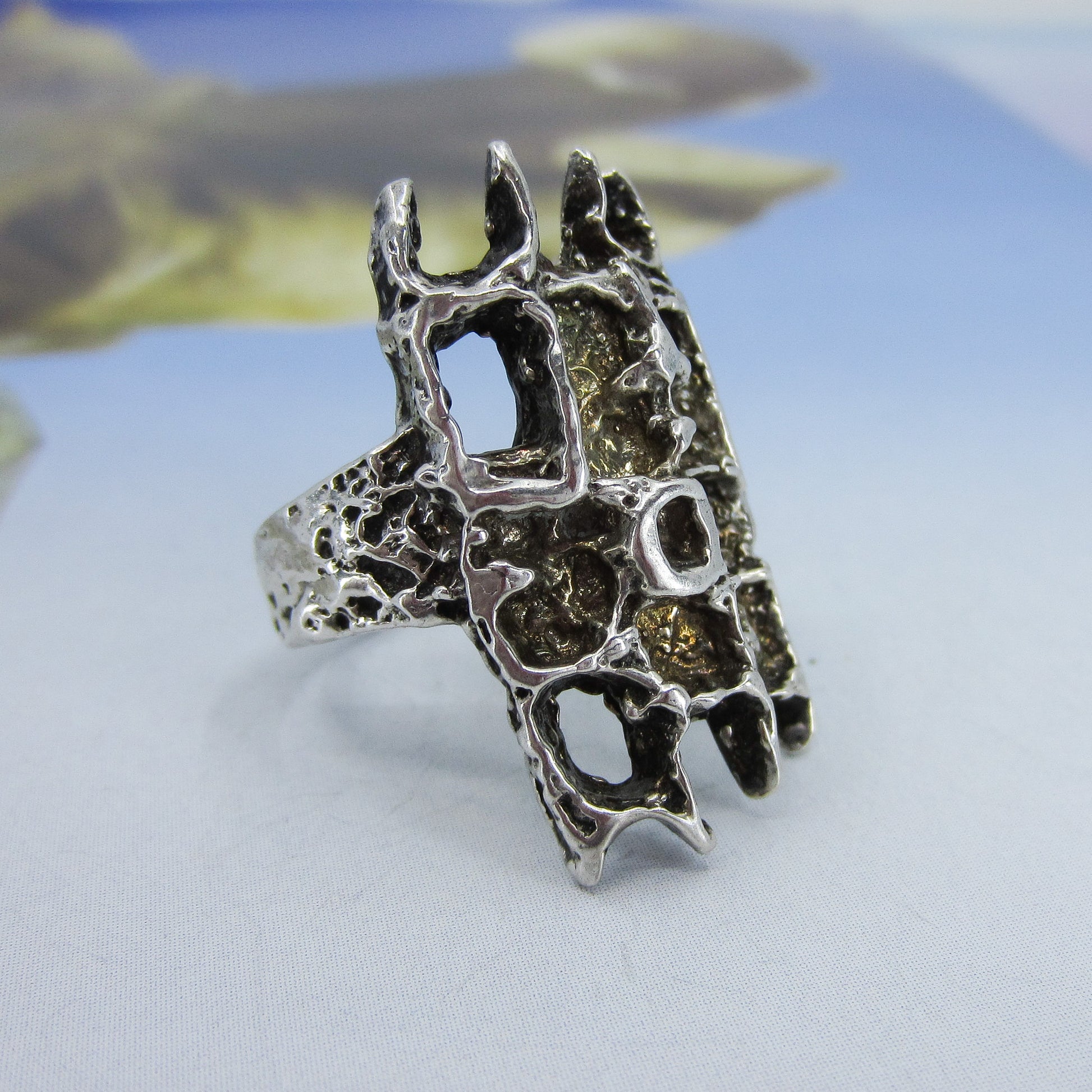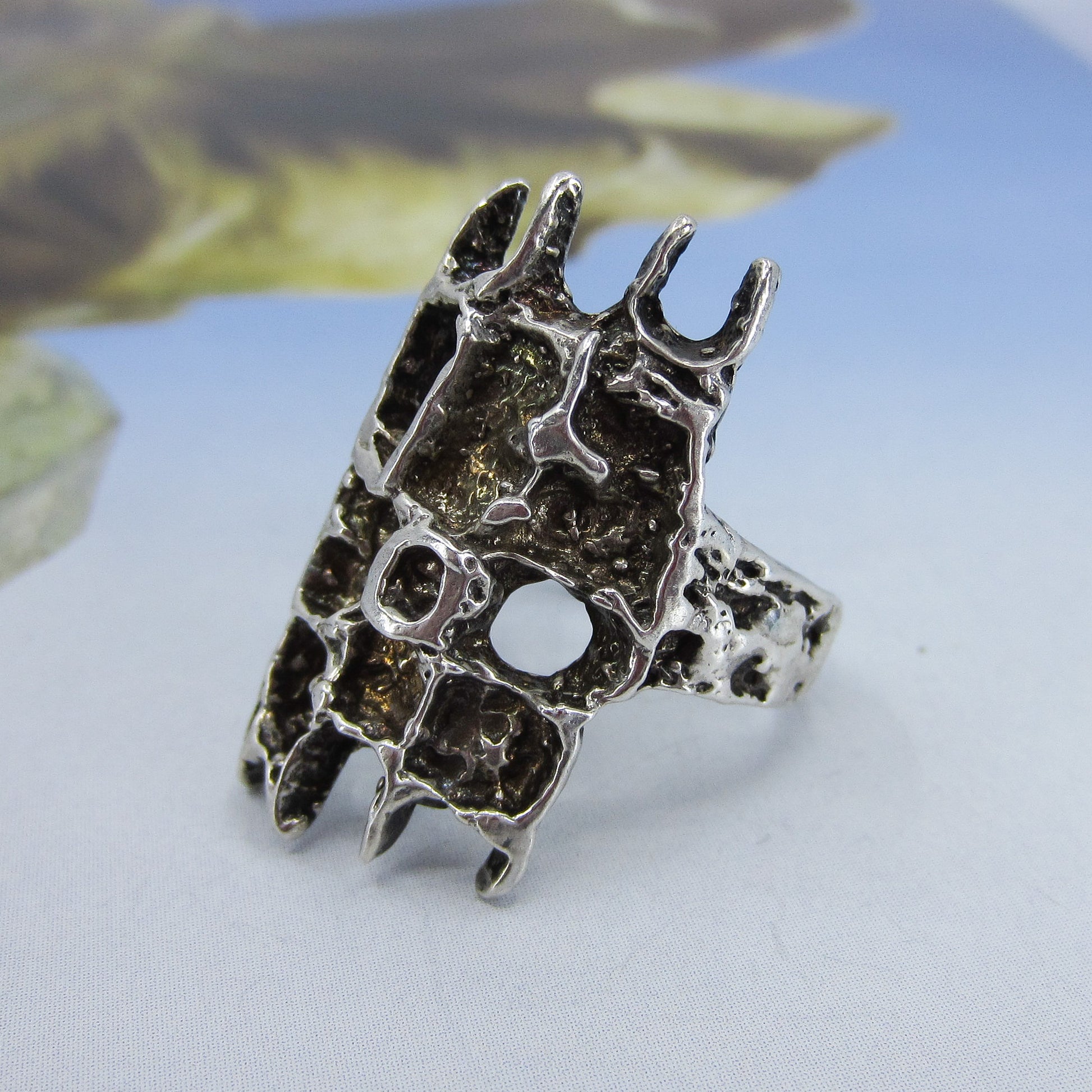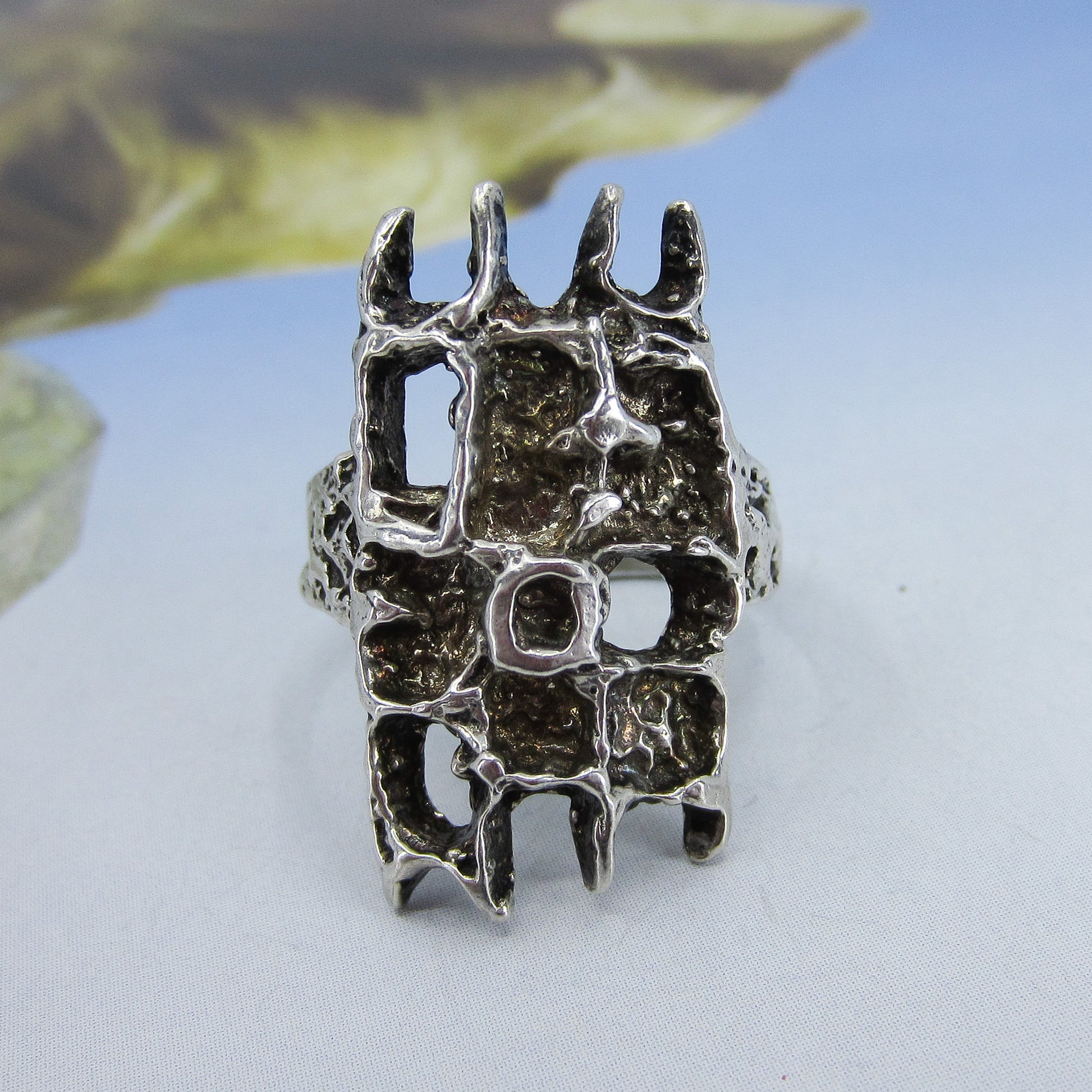 SOLD--Mid-Century Brutalist Ring Sterling c. 1970