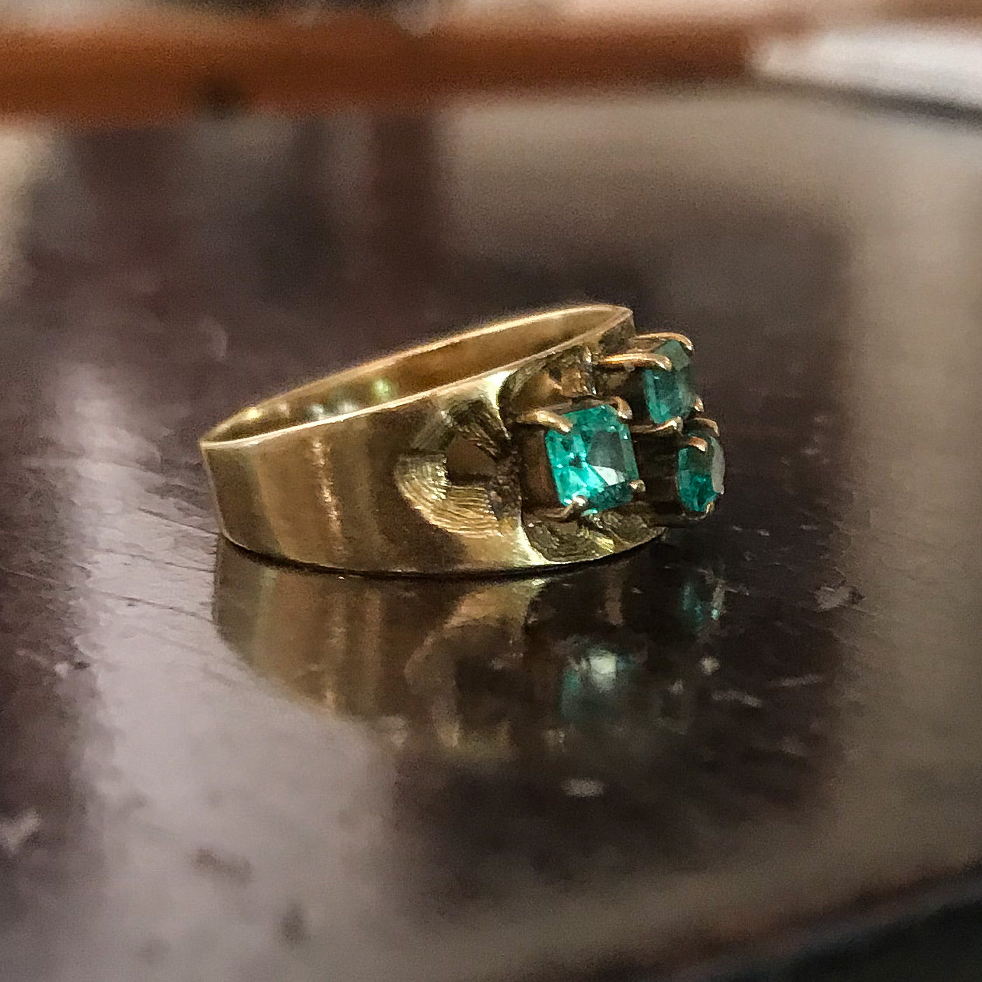 SOLD--Mid-Century Emerald Ring 18k c. 1960