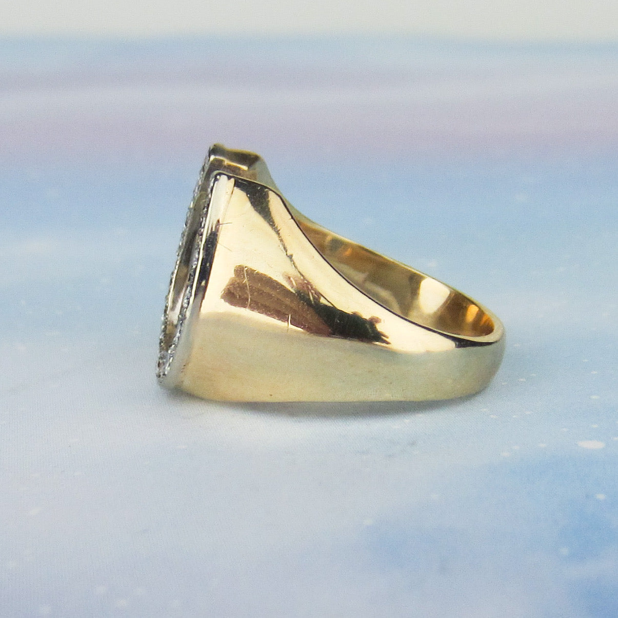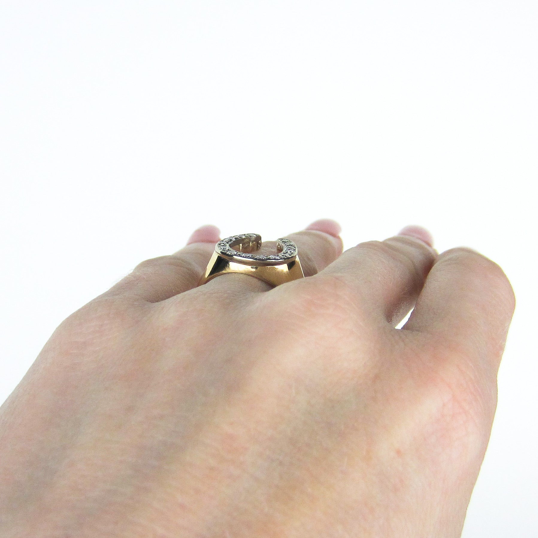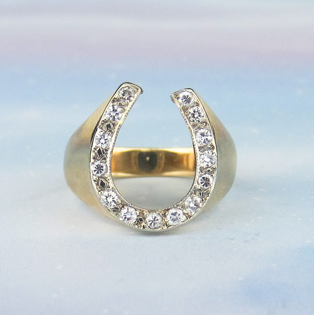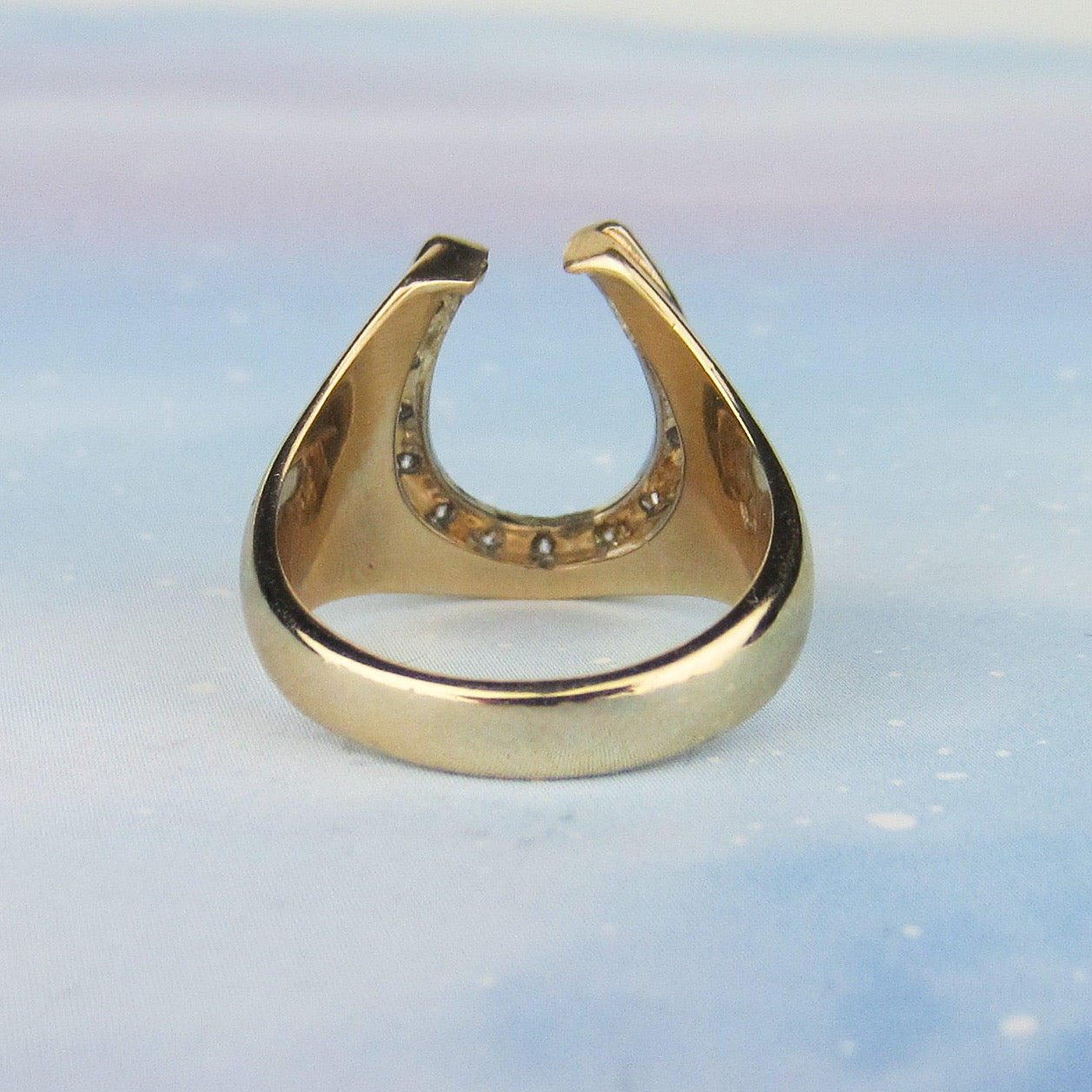 SOLD--Mid-Century Men's Diamond Horseshoe Ring 14k c. 1960