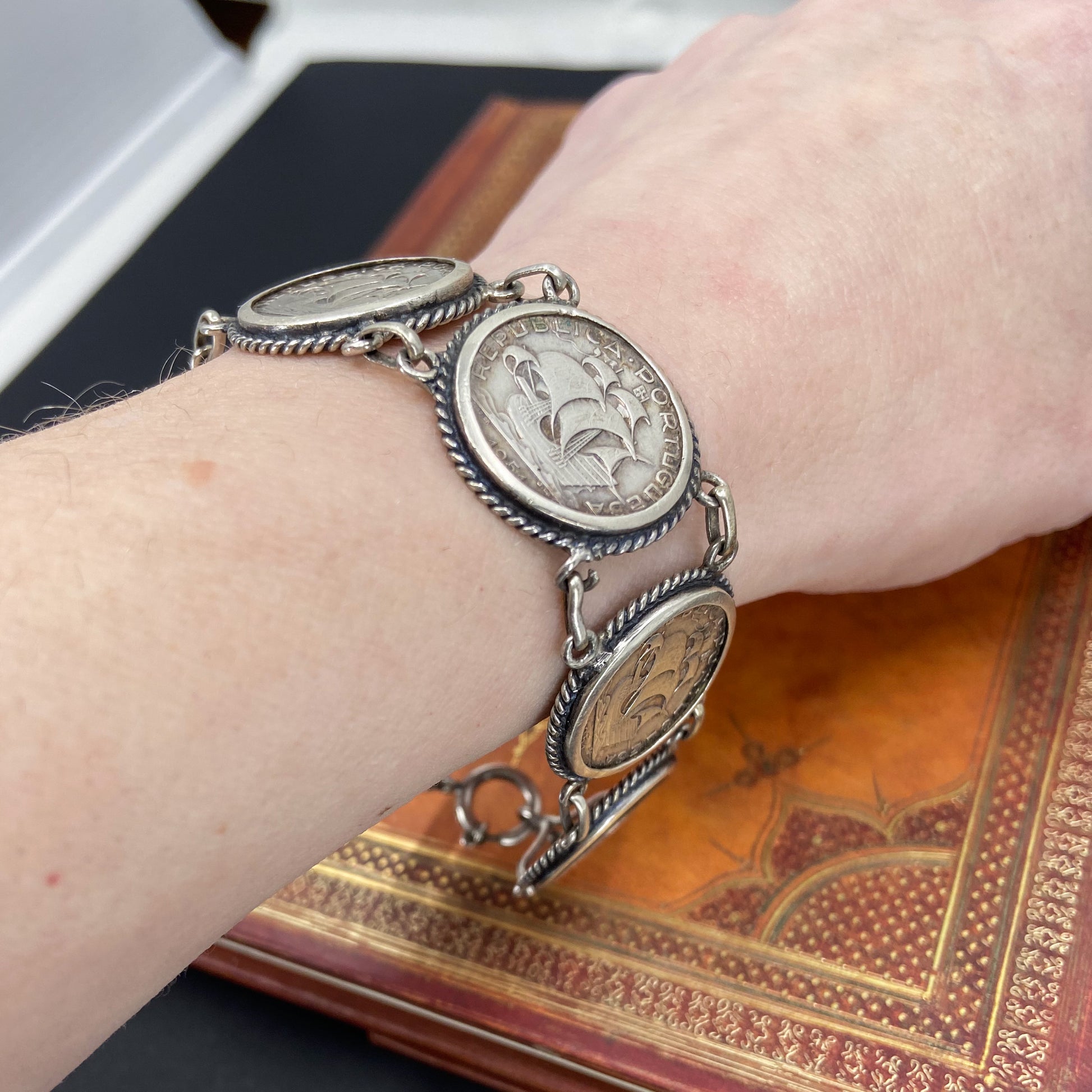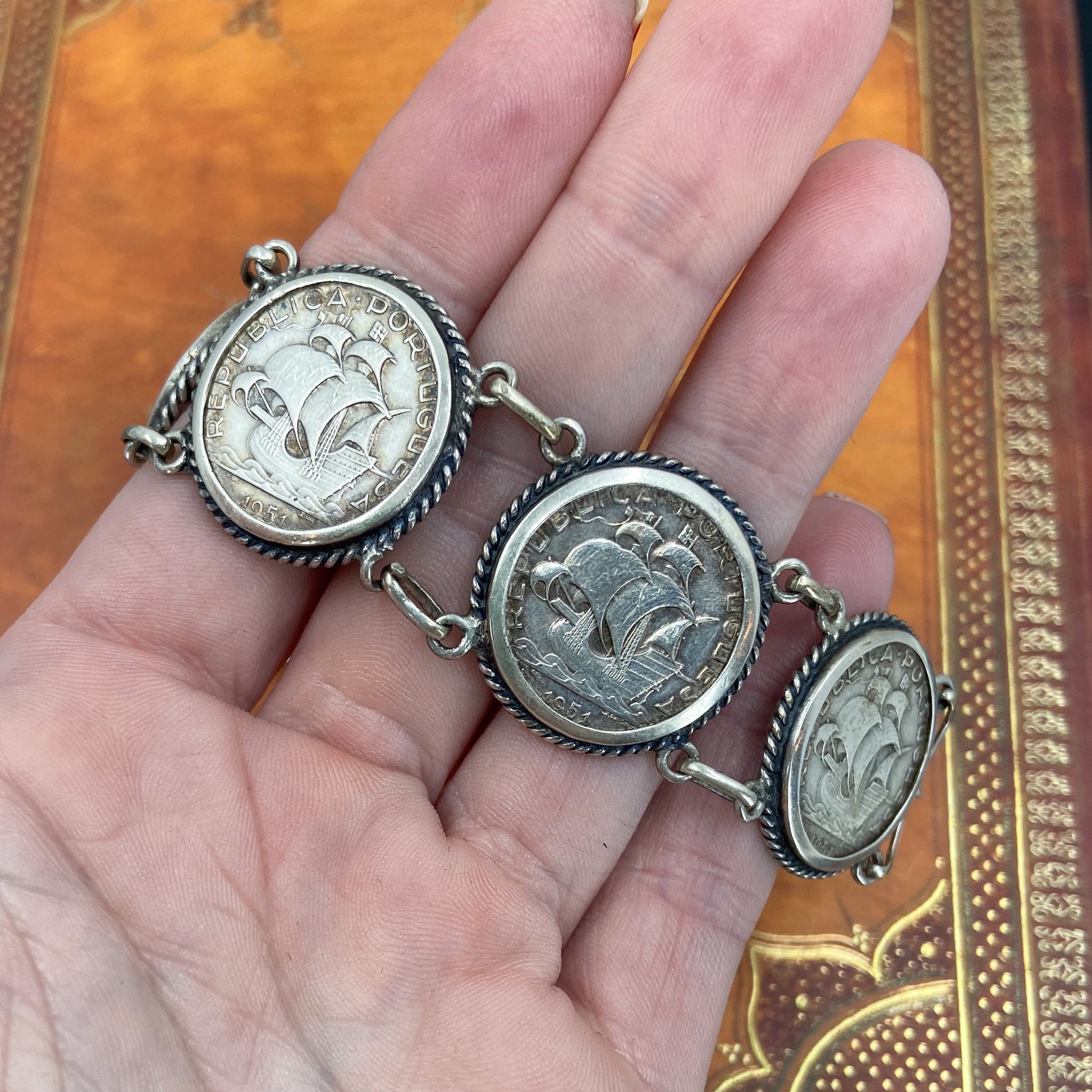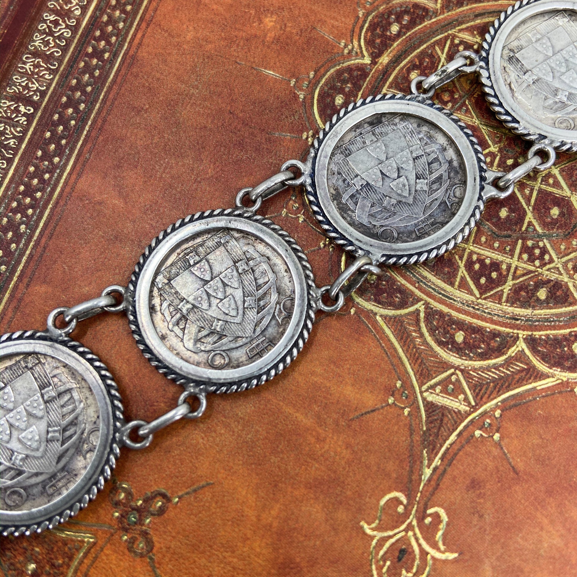 Mid-Century Portuguese Coin Bracelet Sterling c. 1960