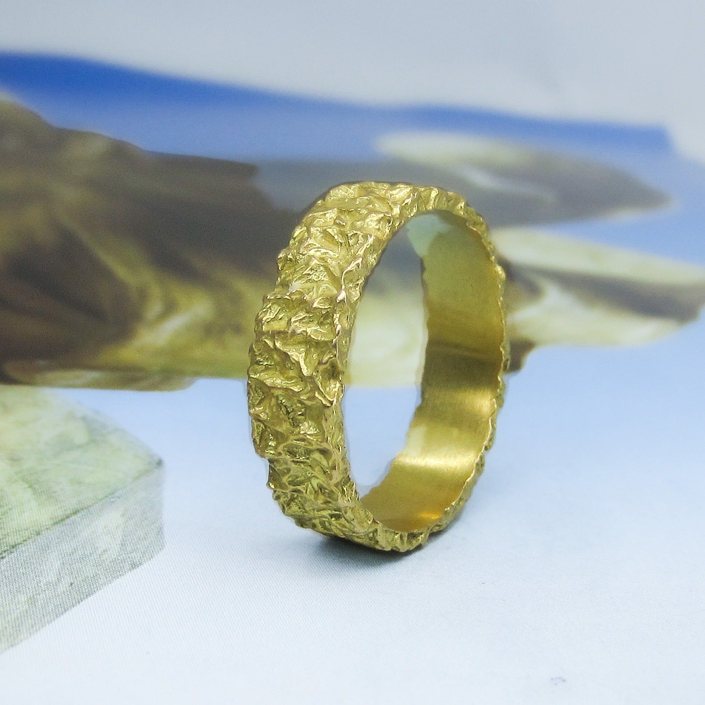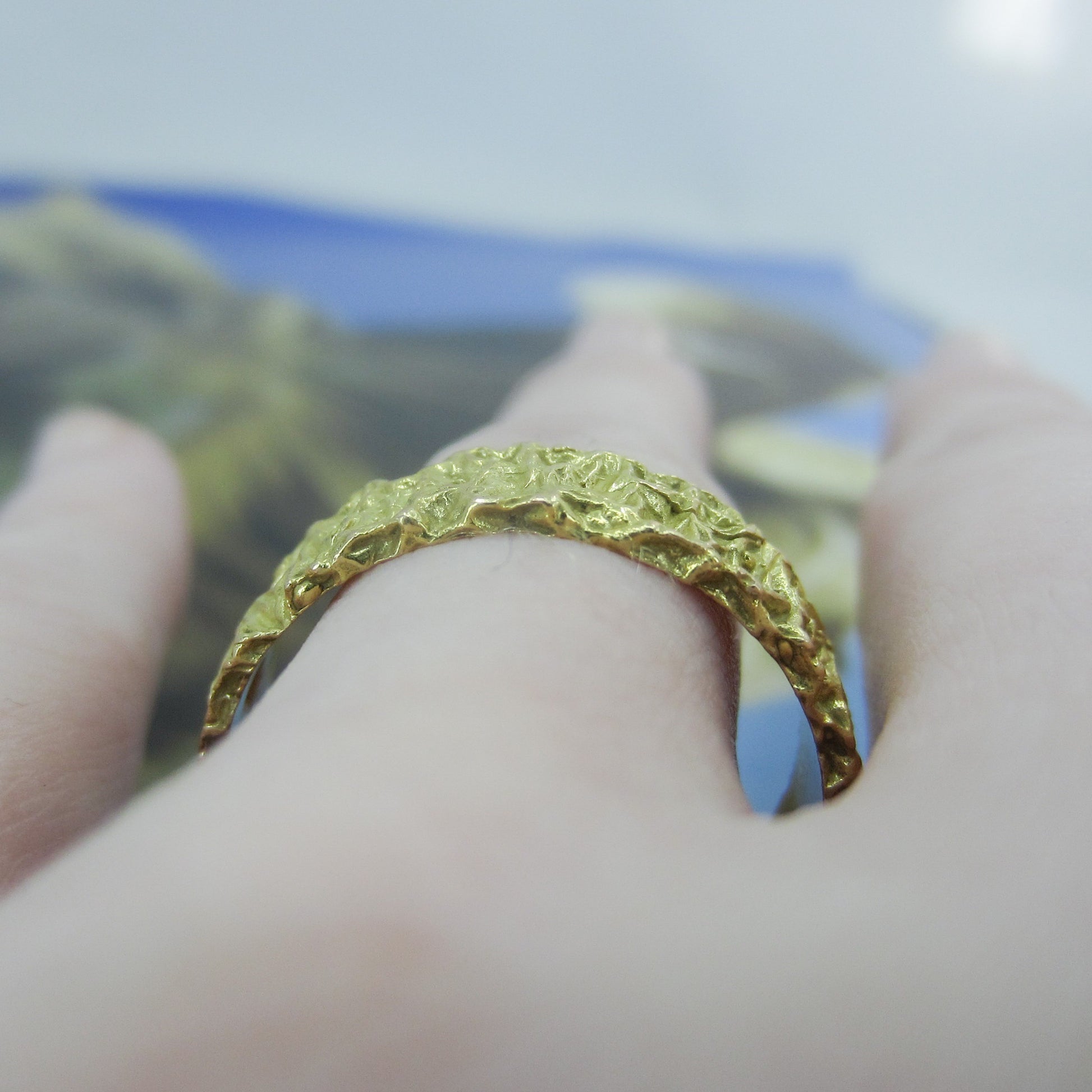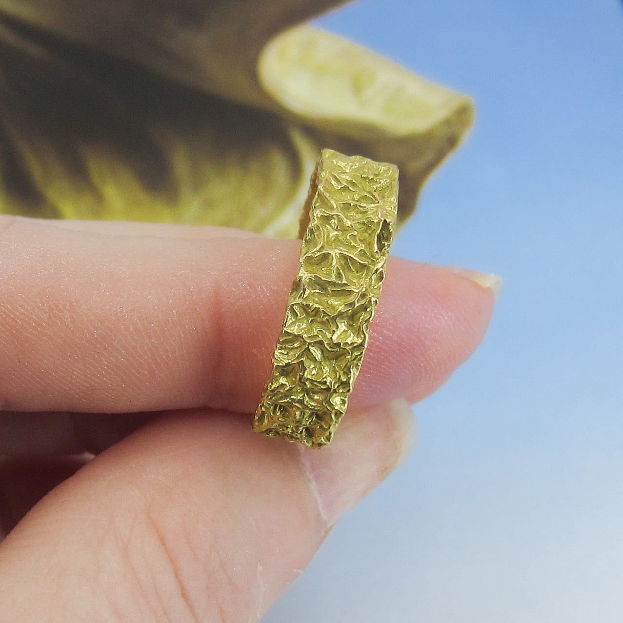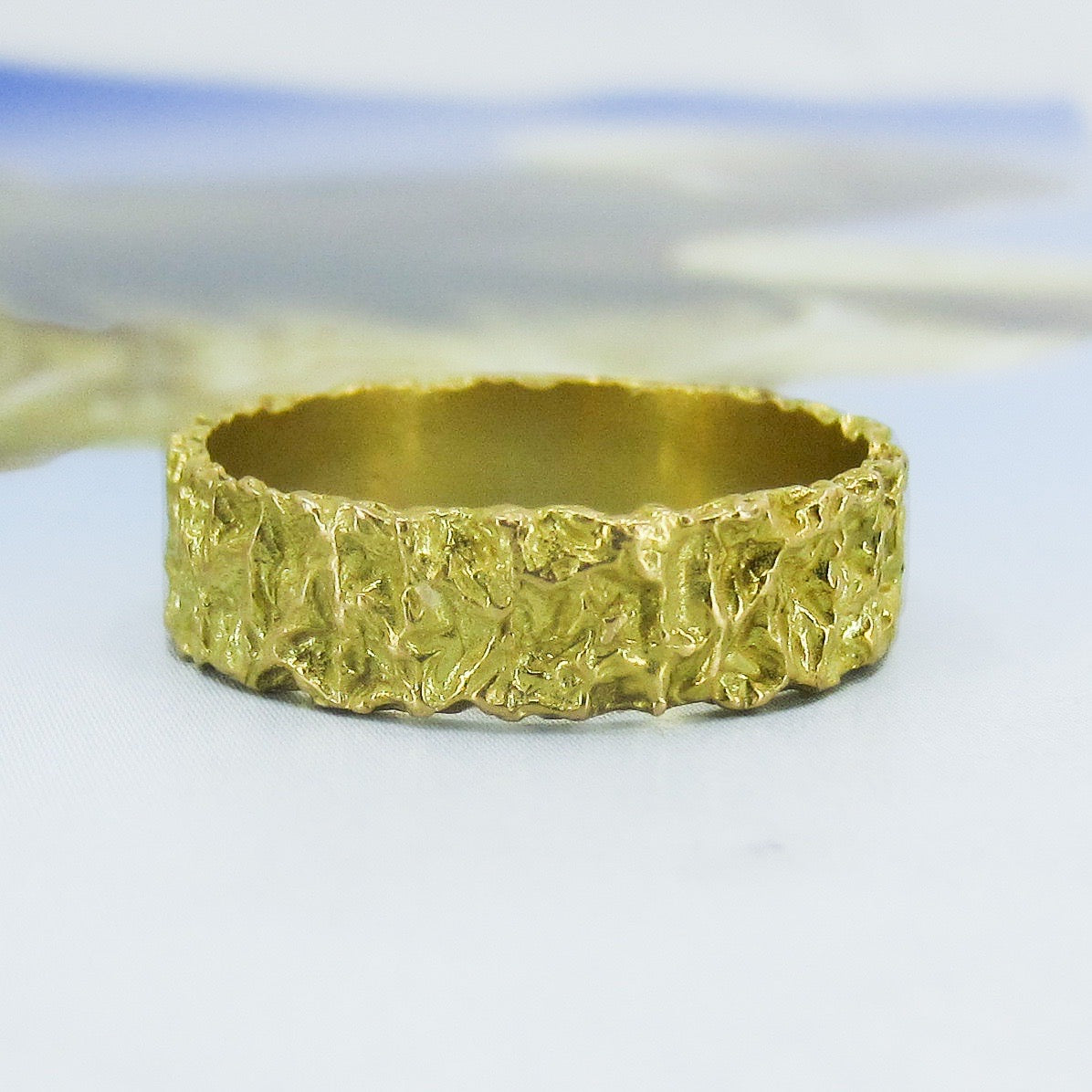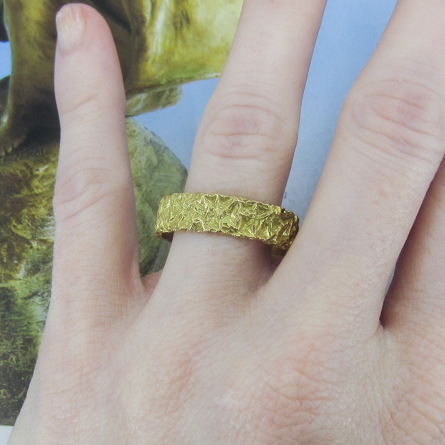 SOLD-Mid-Century 6mm Nugget Motif Band 18k Italy, size 10.25 c. 1970