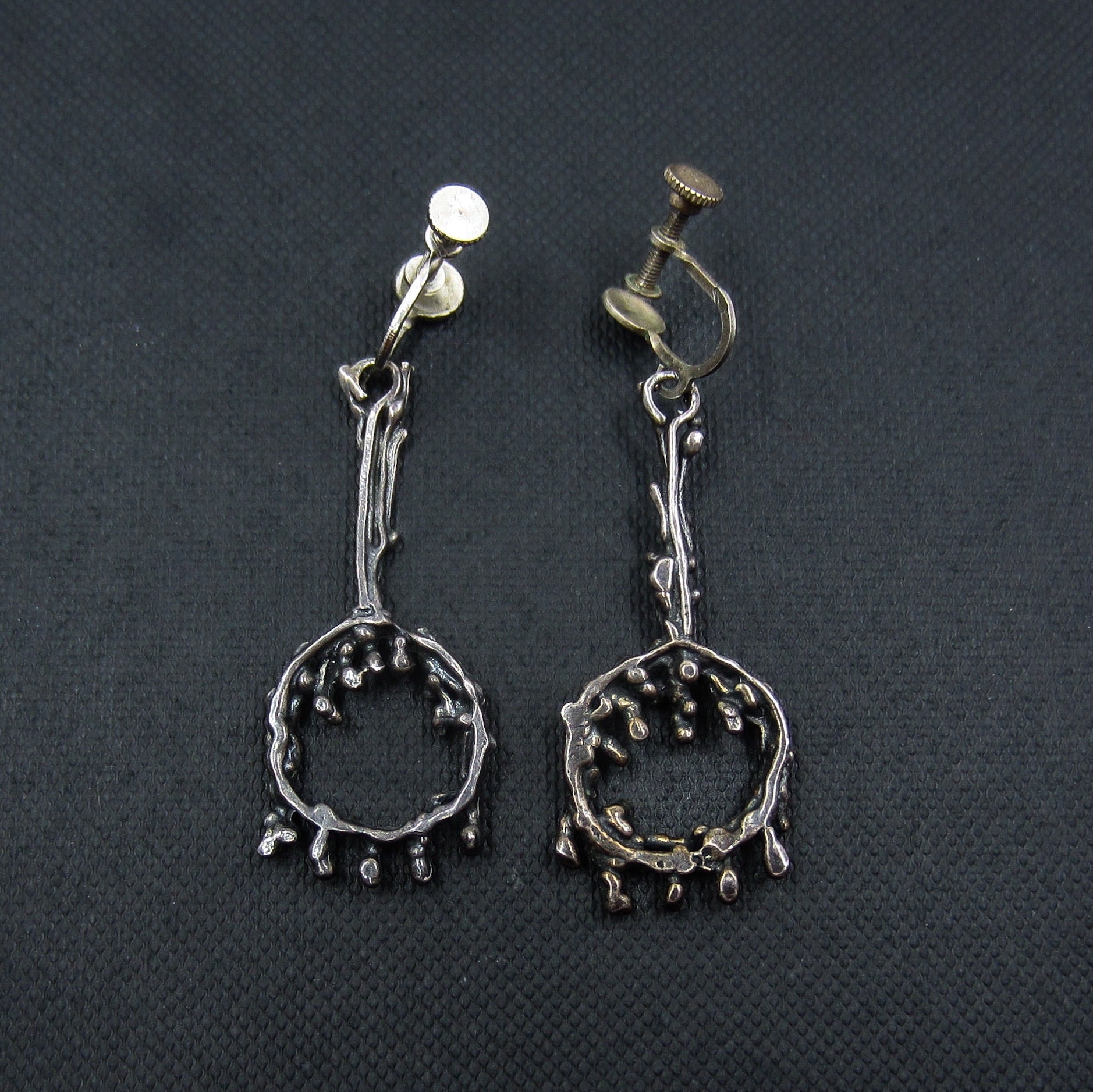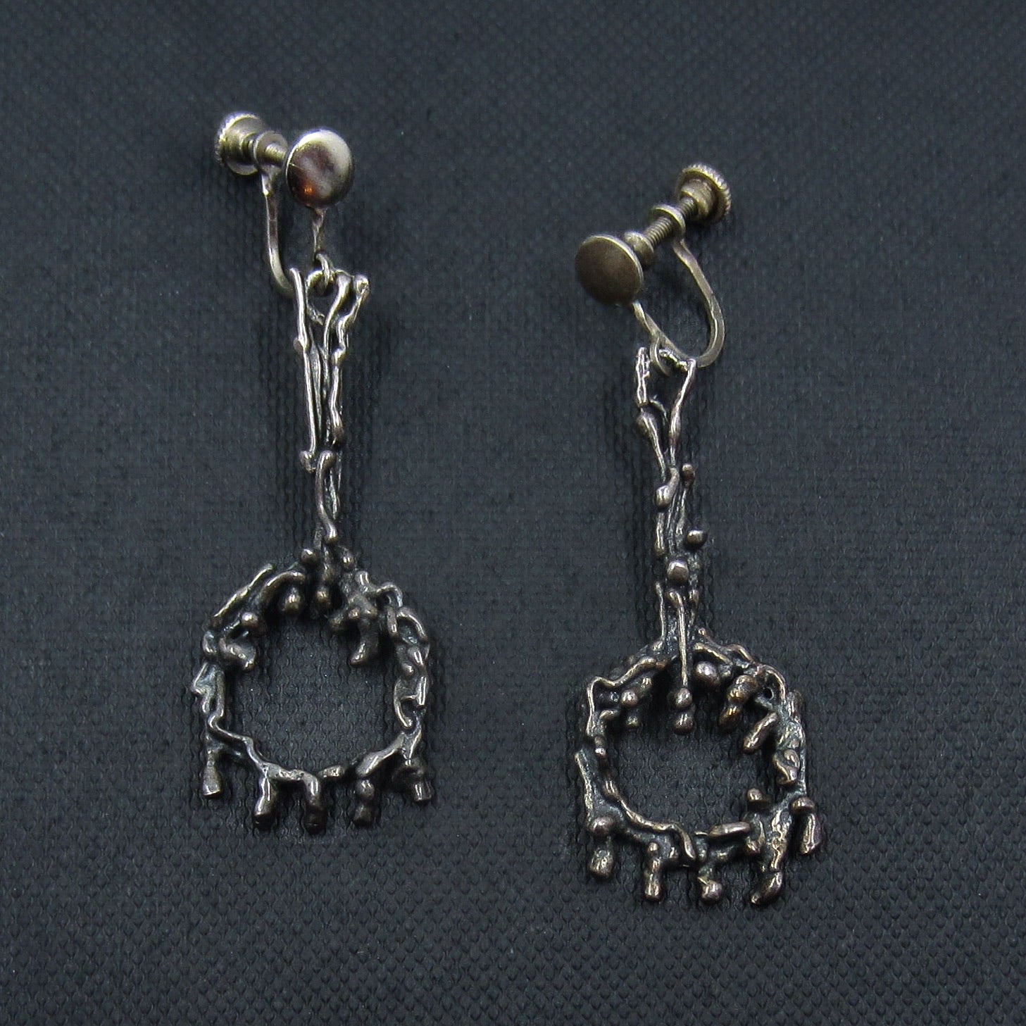 SOLD--MidCentury Brutalist Drop Earrings Sterling c. 1960