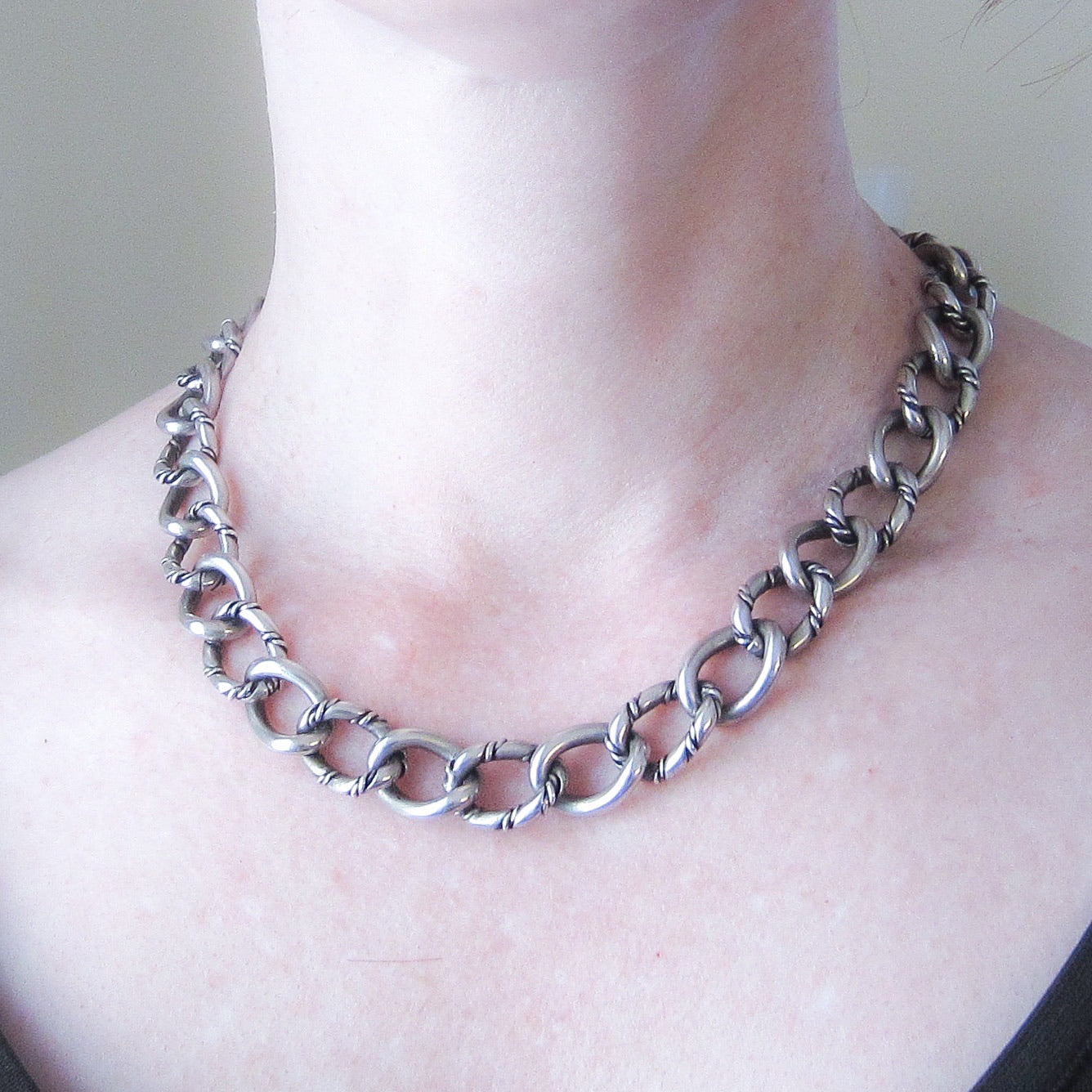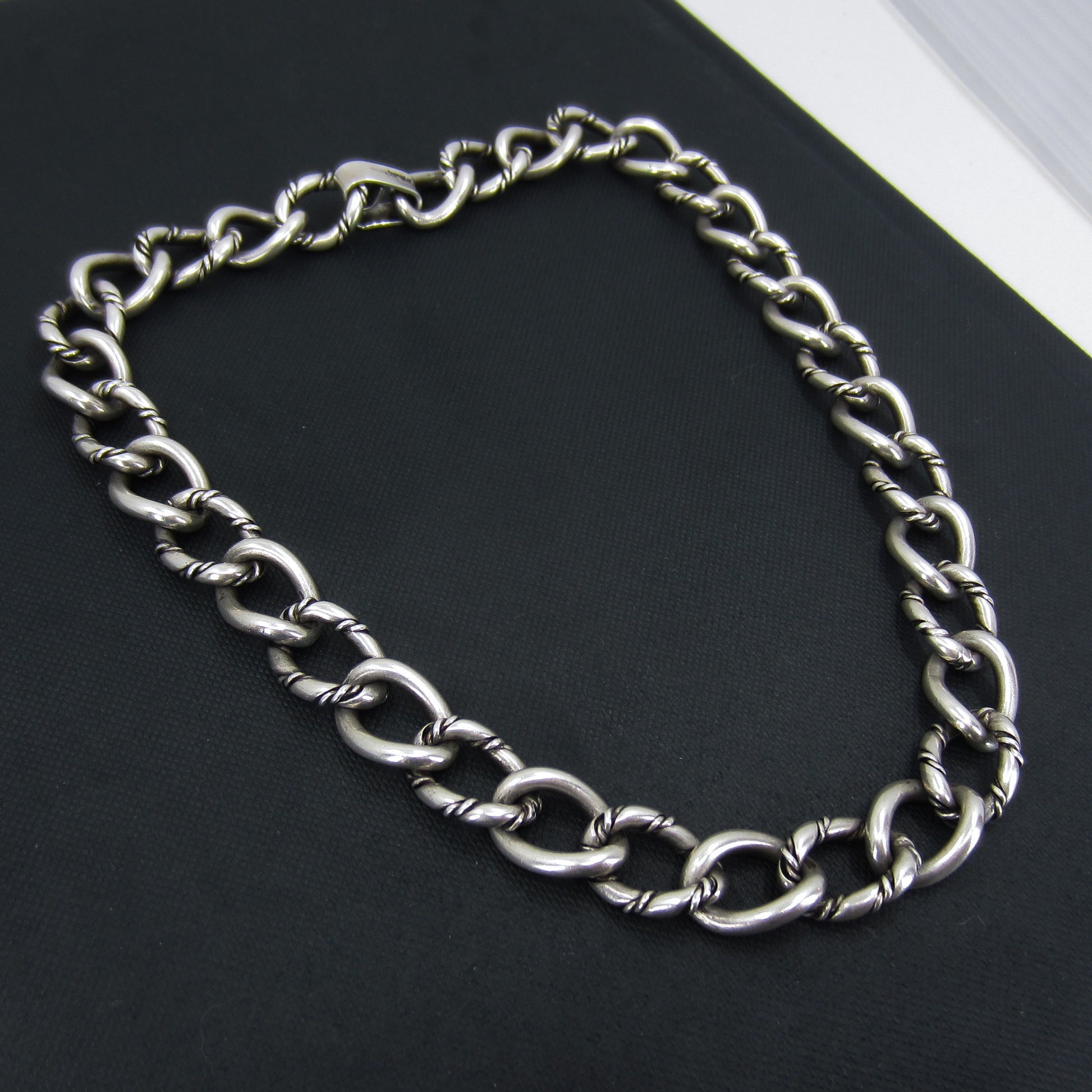 SOLD--MidCentury Georg Jensen USA Heavy Textured Link Chain Sterling c. 1960