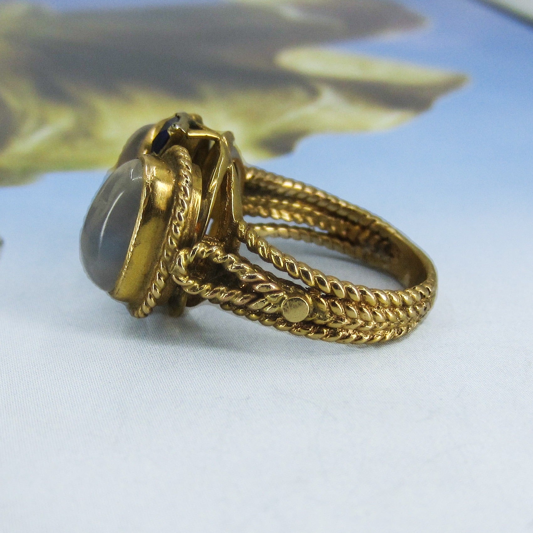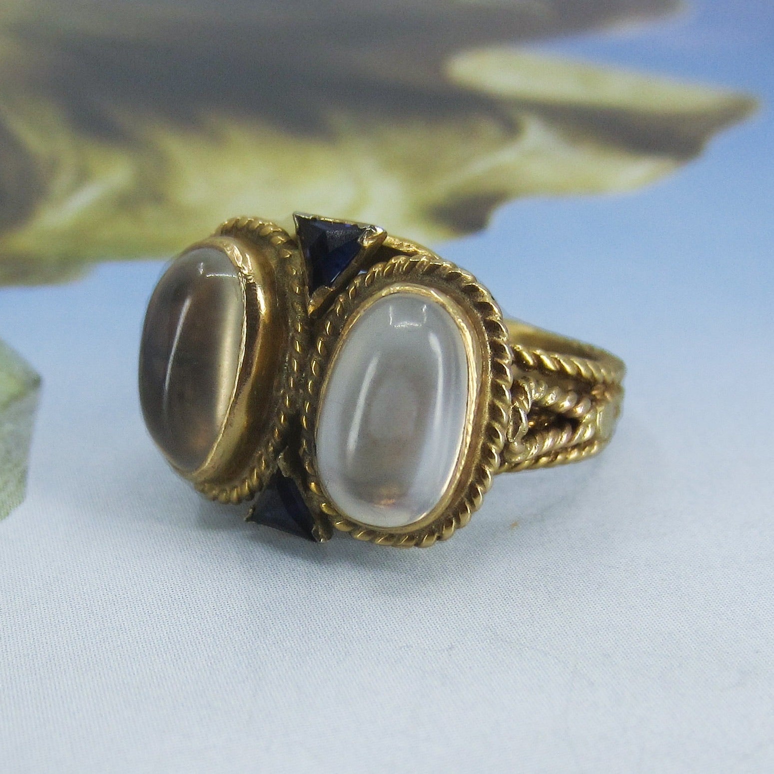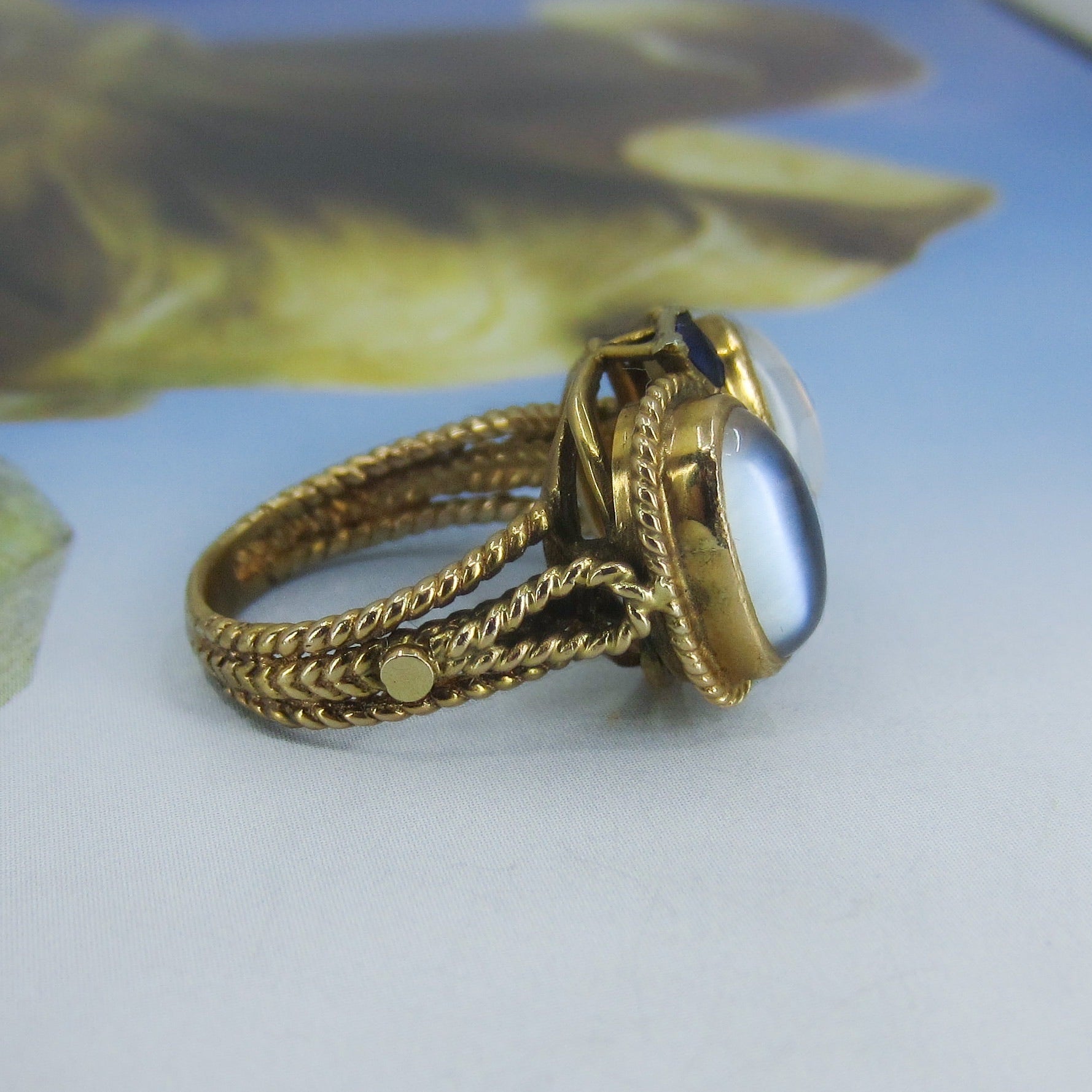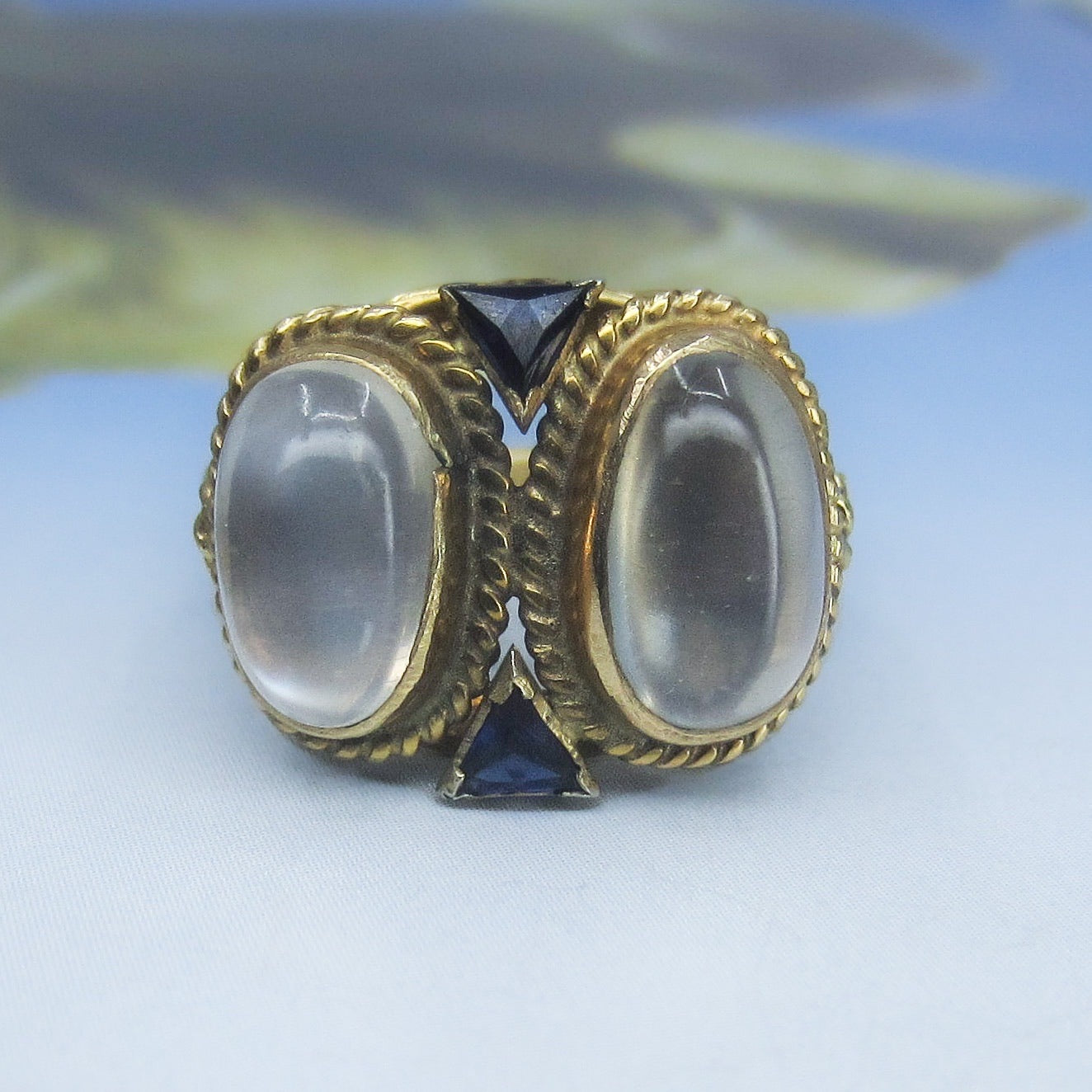 SOLD—MidCentury Moonstone and Sapphire Cocktail Ring 14k c. 1960