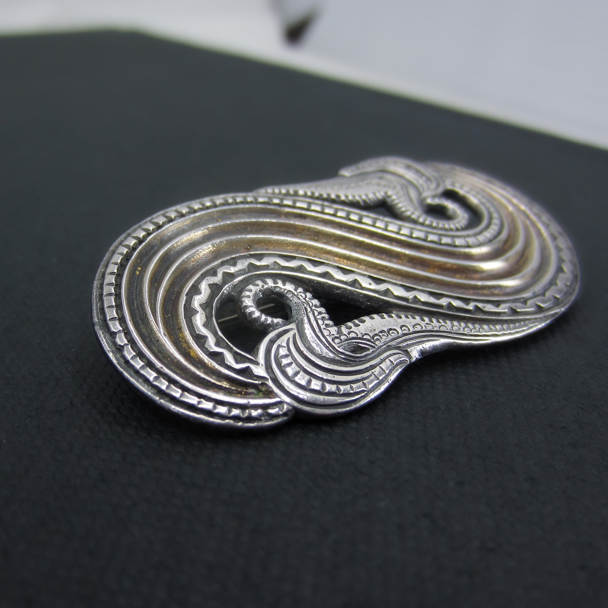 SOLD--Arts & Crafts Dragestil Brooch 850 Silver, Henrik Moller, Norway c. 1900