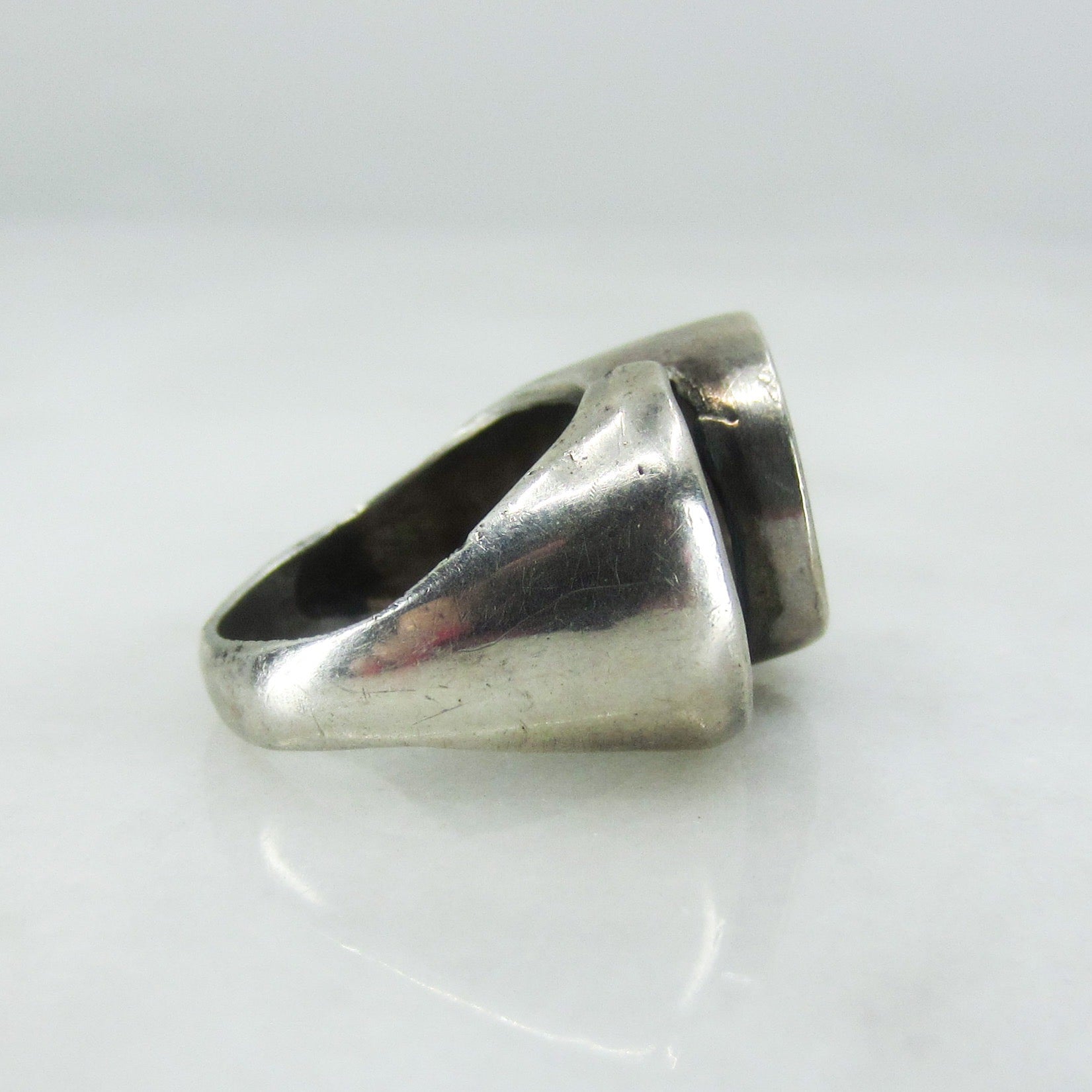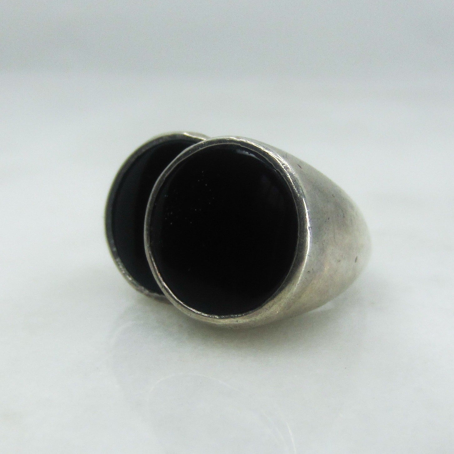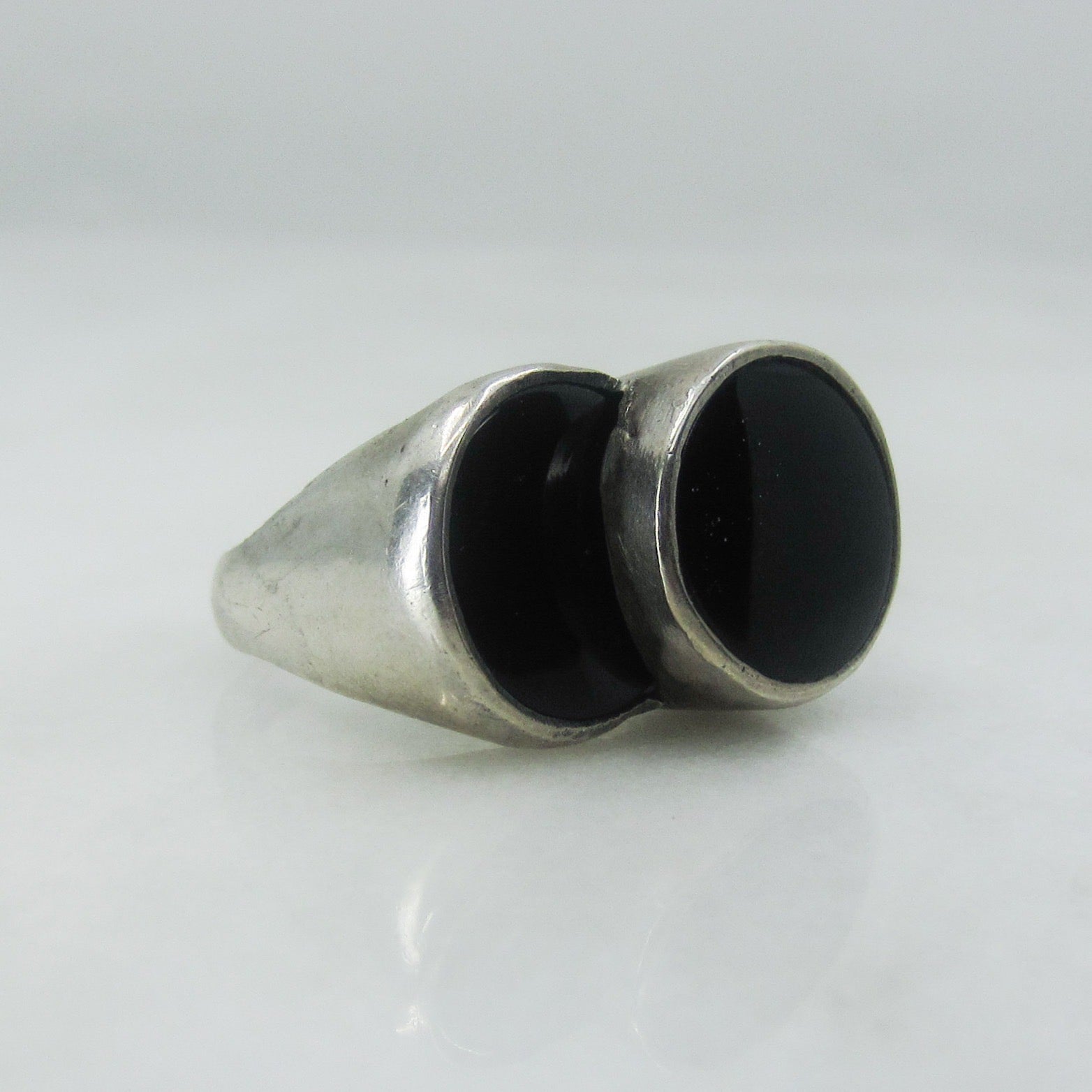 SOLD--Modernist Onyx Circles Ring Sterling c. 1970