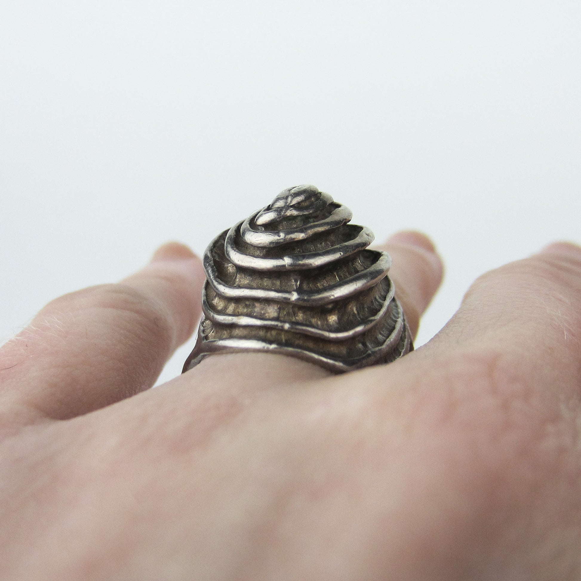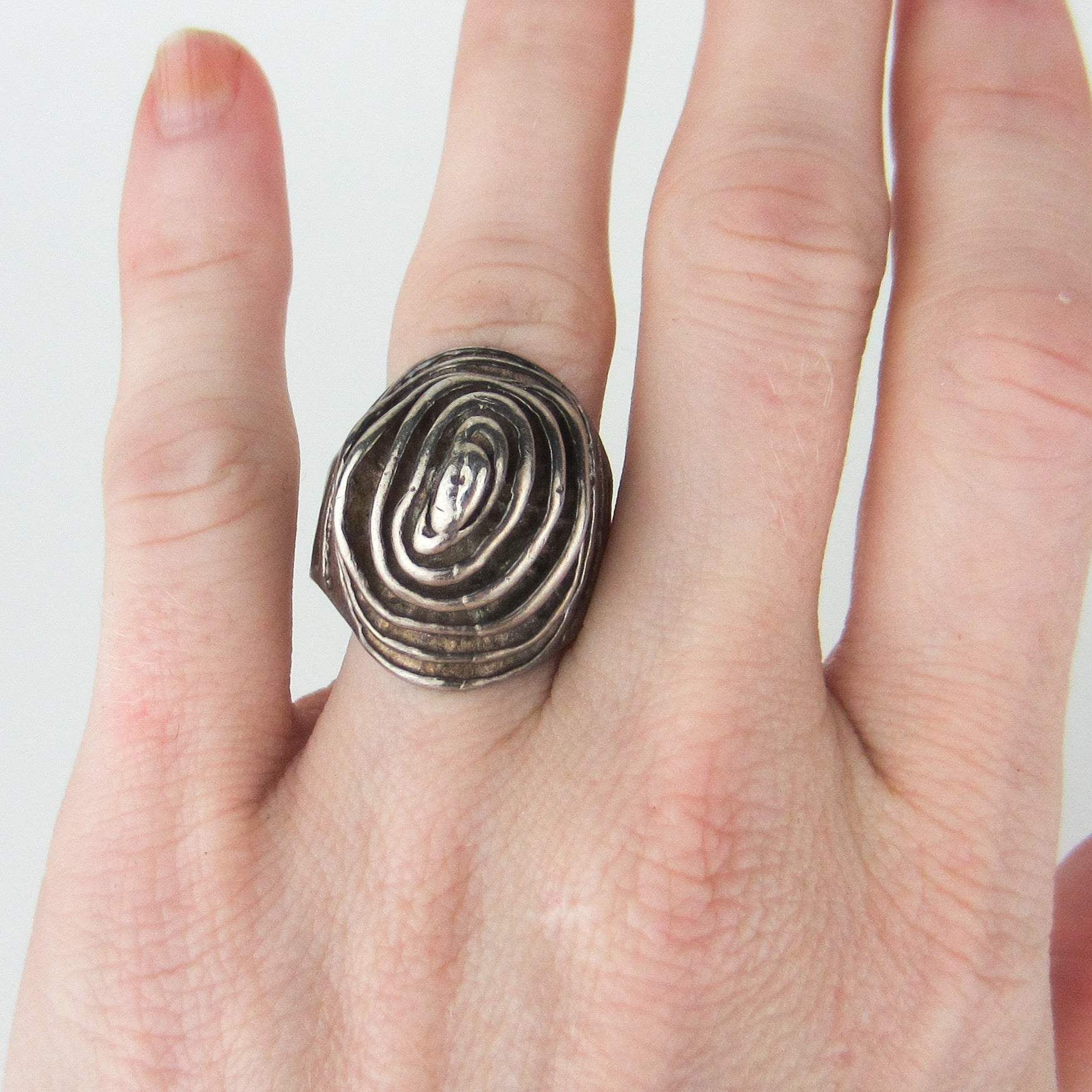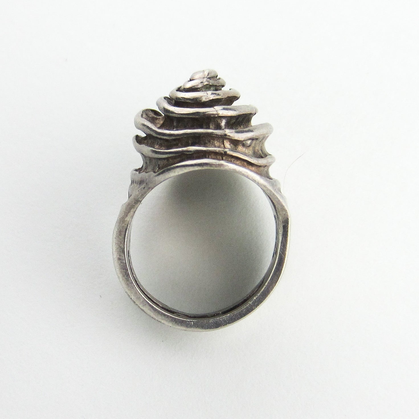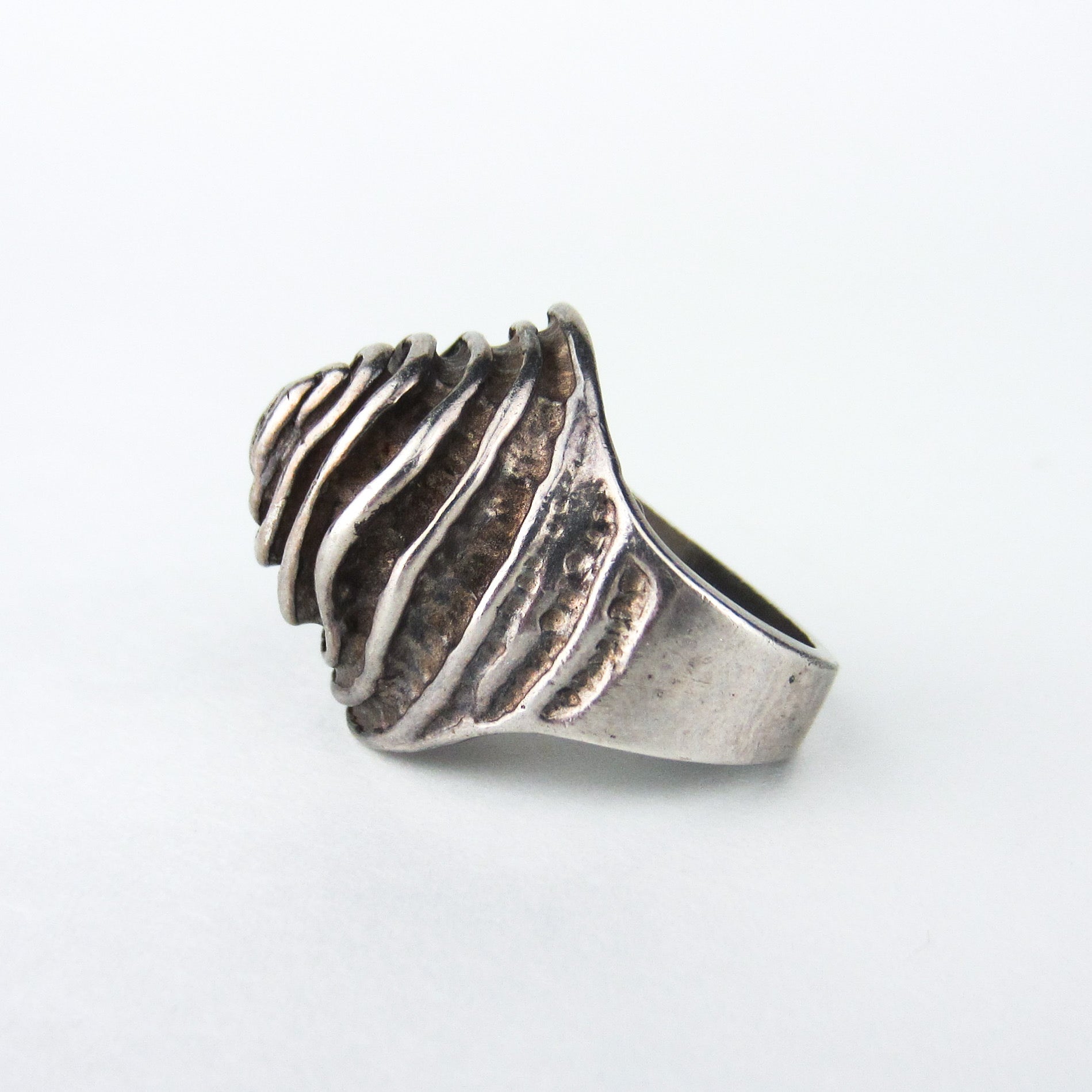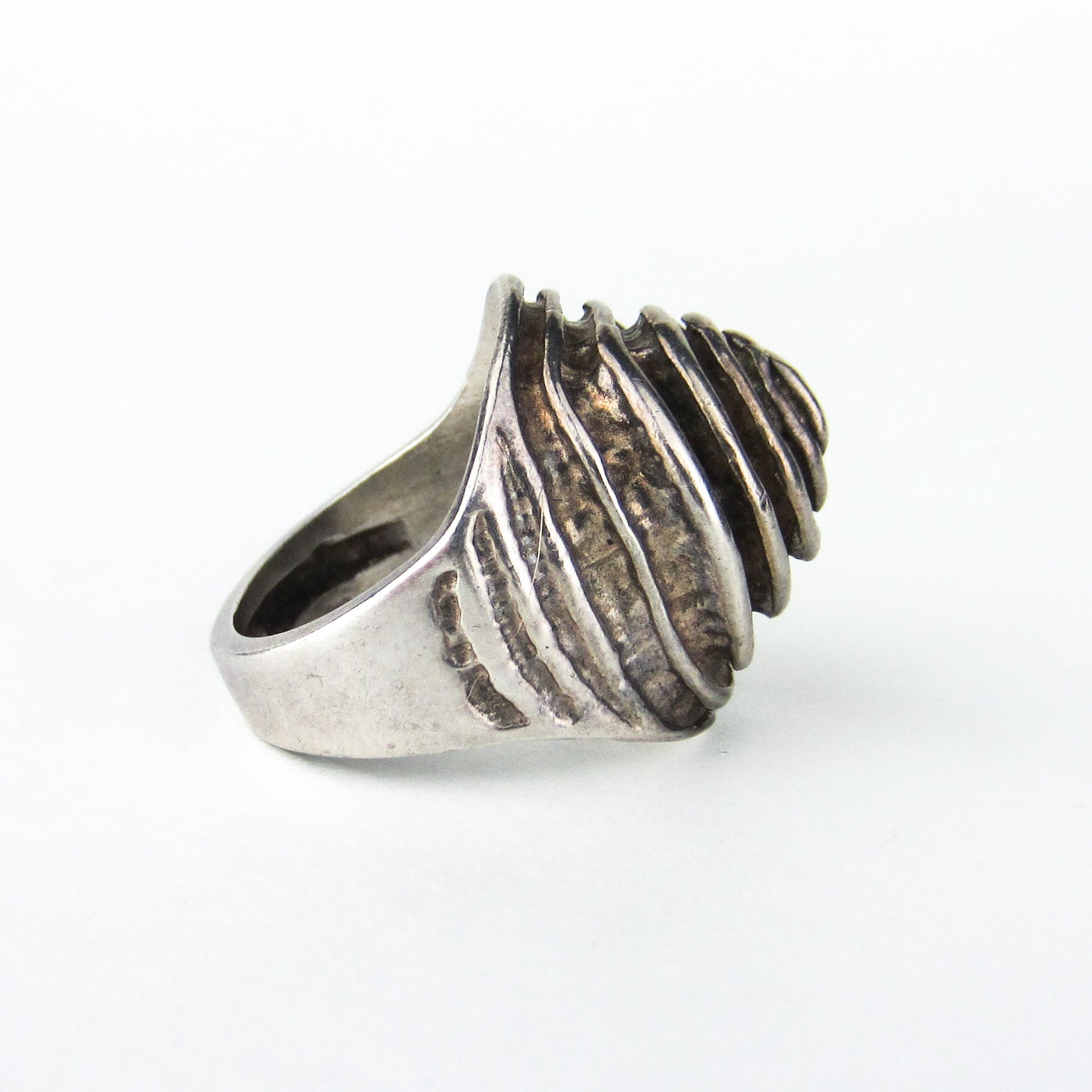 SOLD--Modernist Ridged Cone Ring Sterling Silver, Pauline Rader c. 1960
