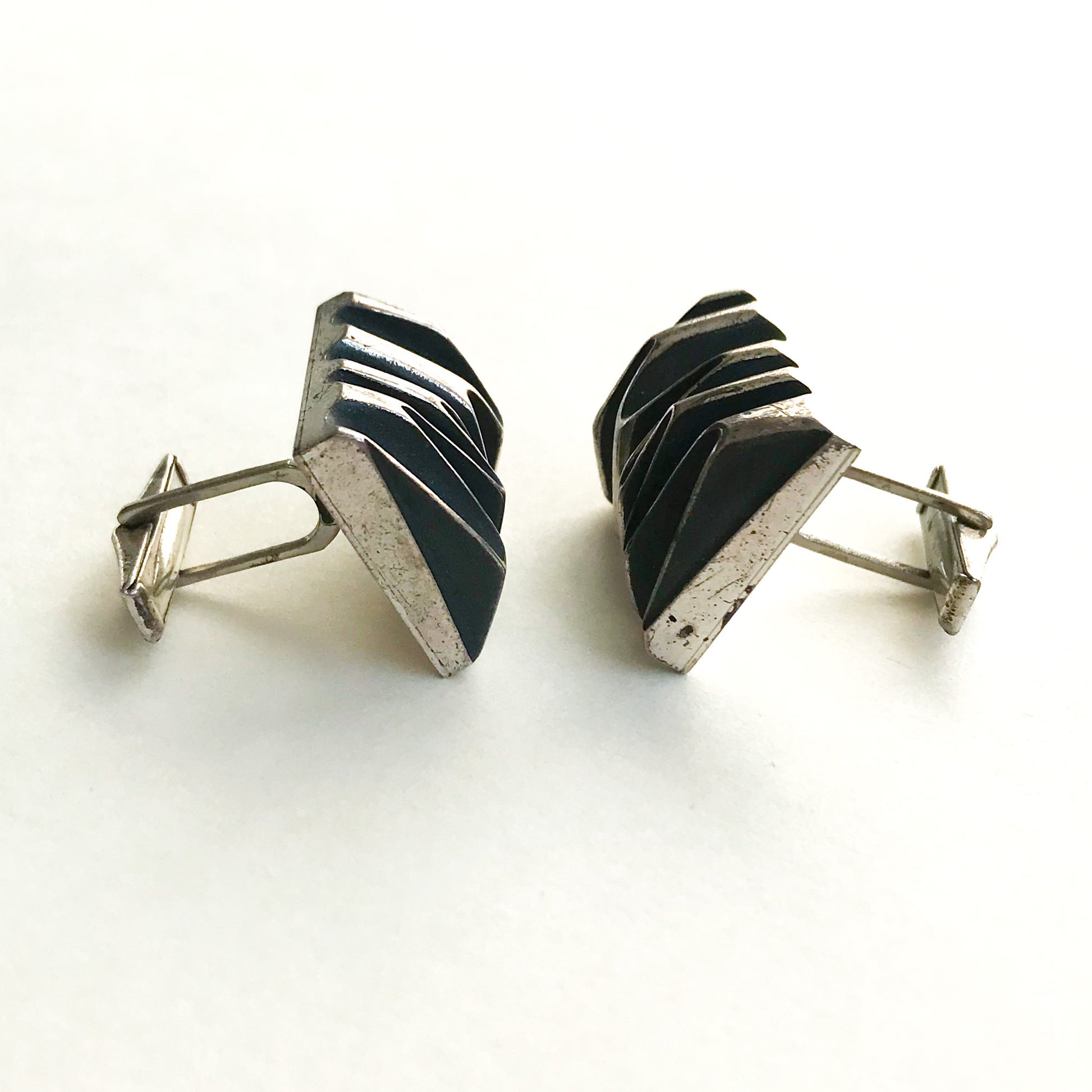 SOLD-Modernist Sculptural Cufflinks Sterling, Harold Fithian c. 1960