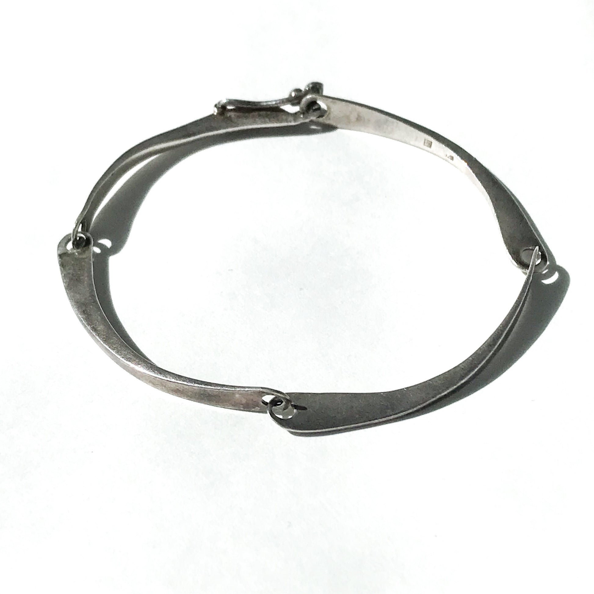 SOLD--Vintage Modernist Segmented Curve Bracelet Sterling c. 1960