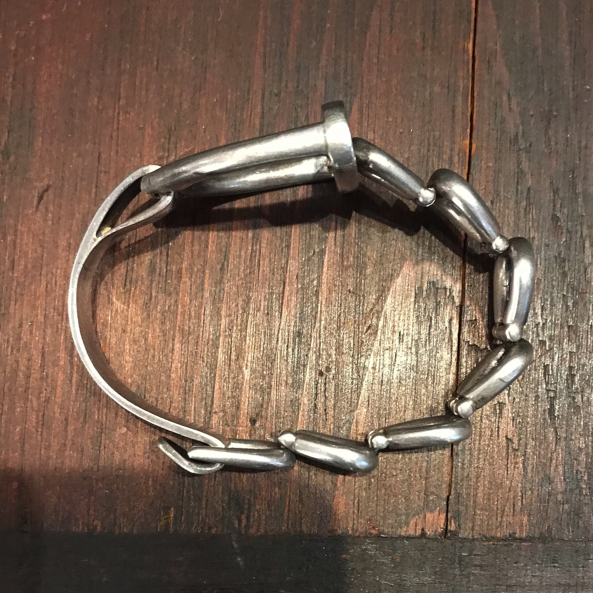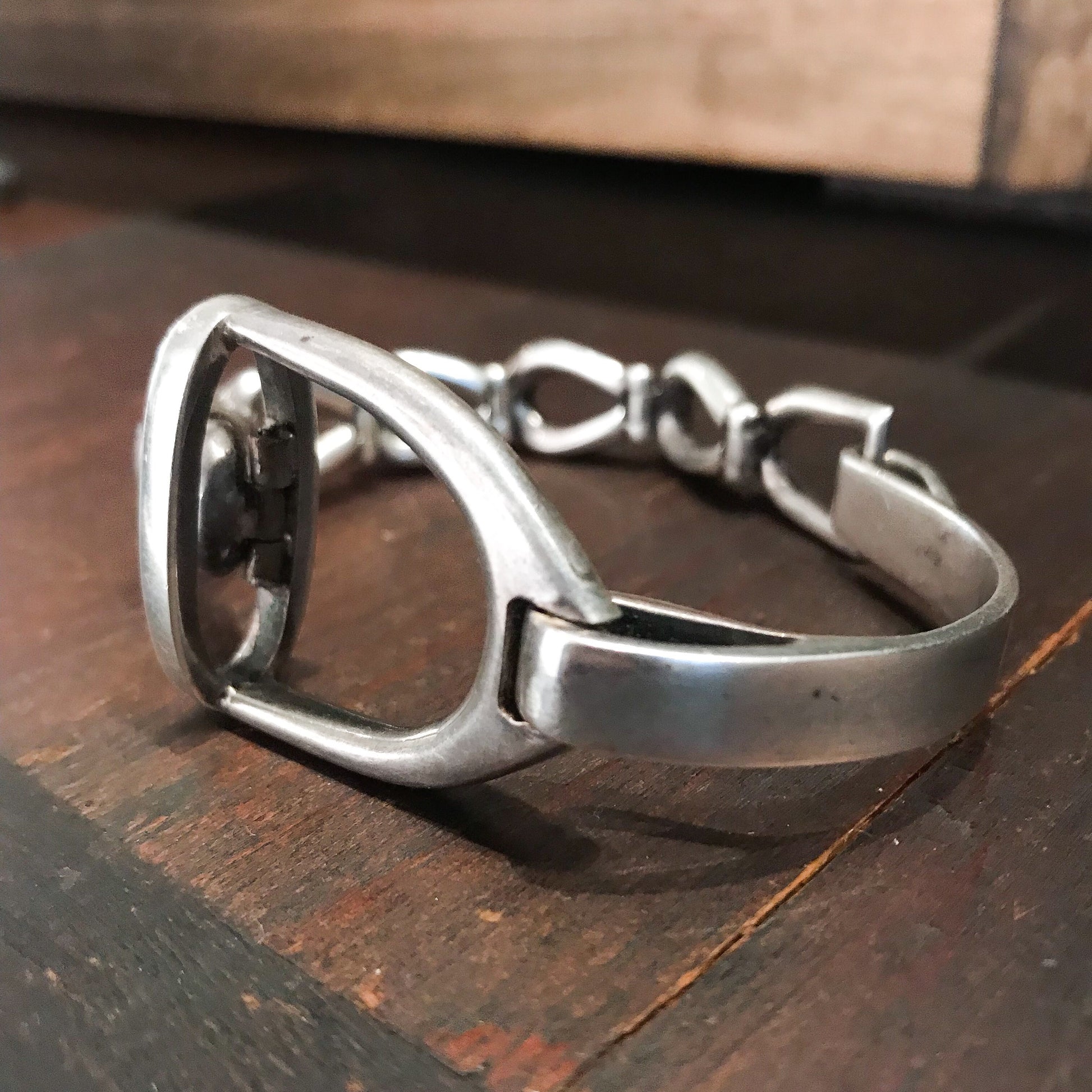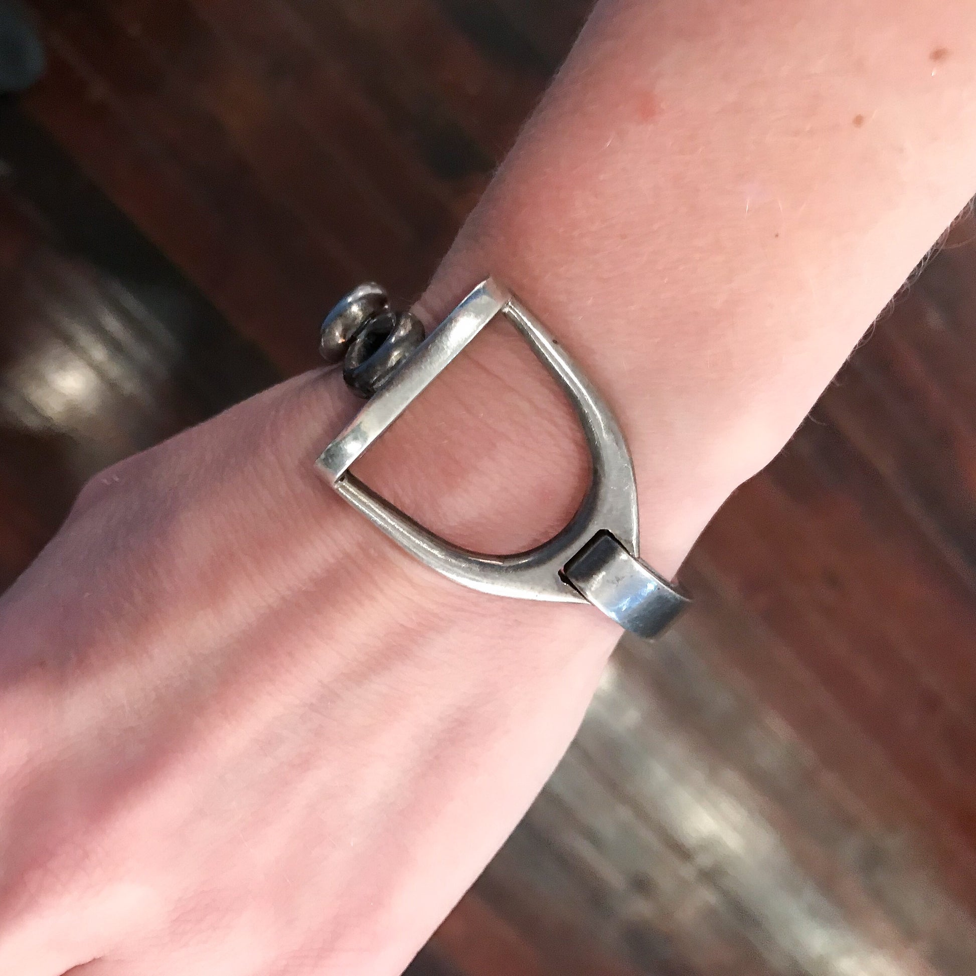 SOLD-Fantastic Modernist Stirrup Bracelet Sterling c. 1970