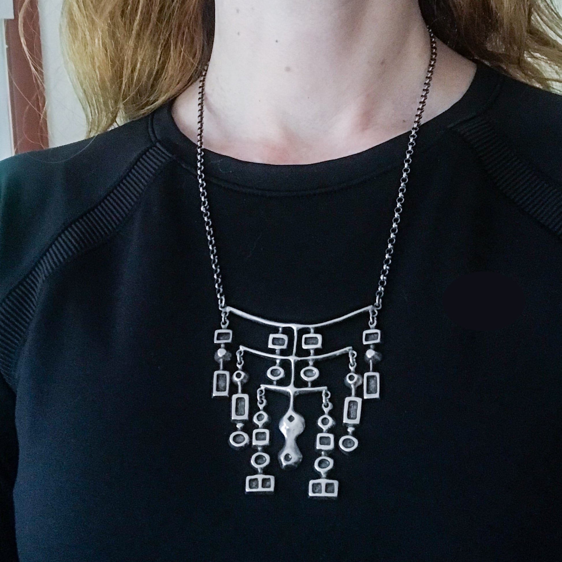 This is a FANTASTIC Modernist necklace made by female designer Unn Tangerud for the Uni workshop of the David Andersen company circa 1960's Norway. The pieces from the Uni workshop are highly collectible and well-made, we've had a number of them including one incredible agate piece by Marianne Berg which can be found in our sold section.