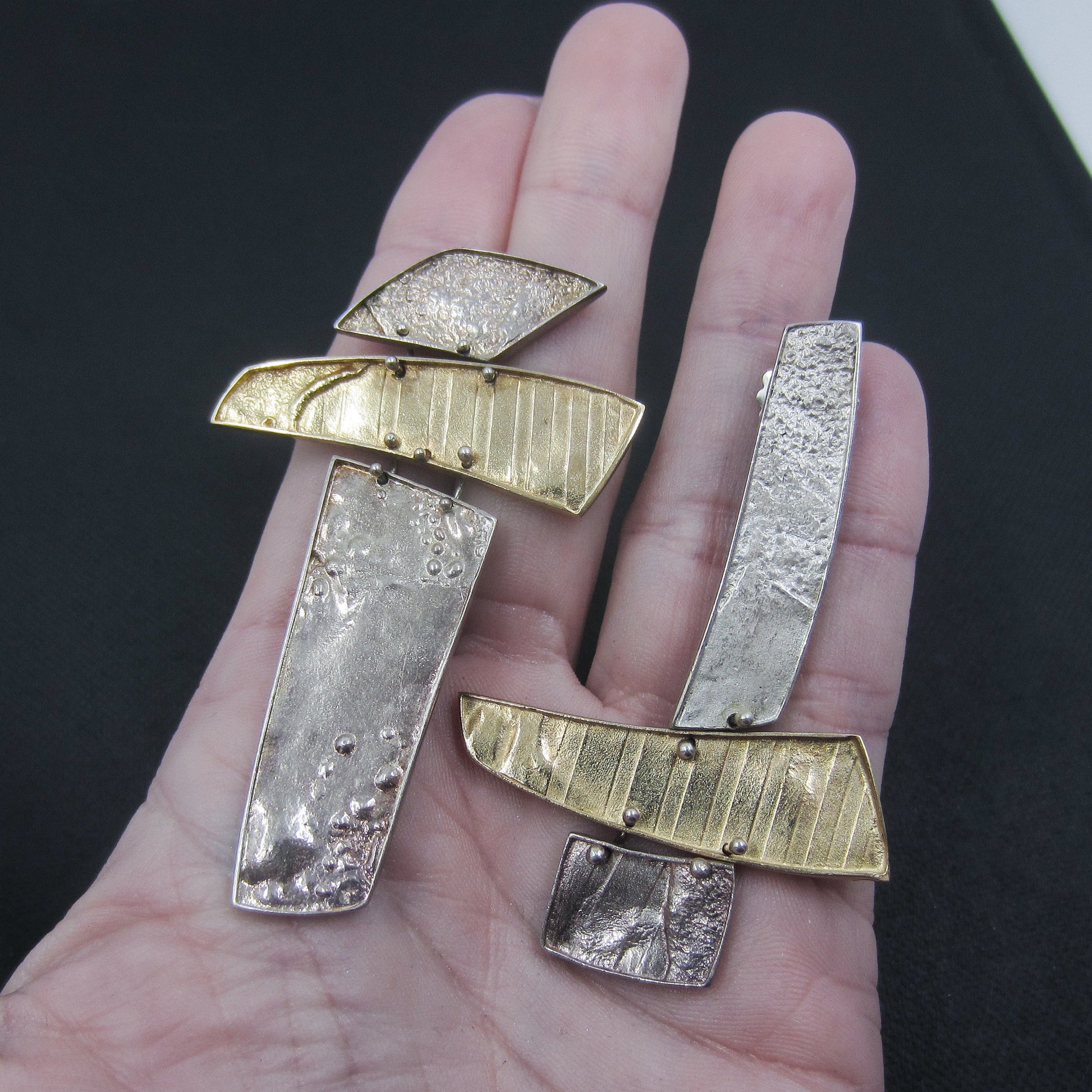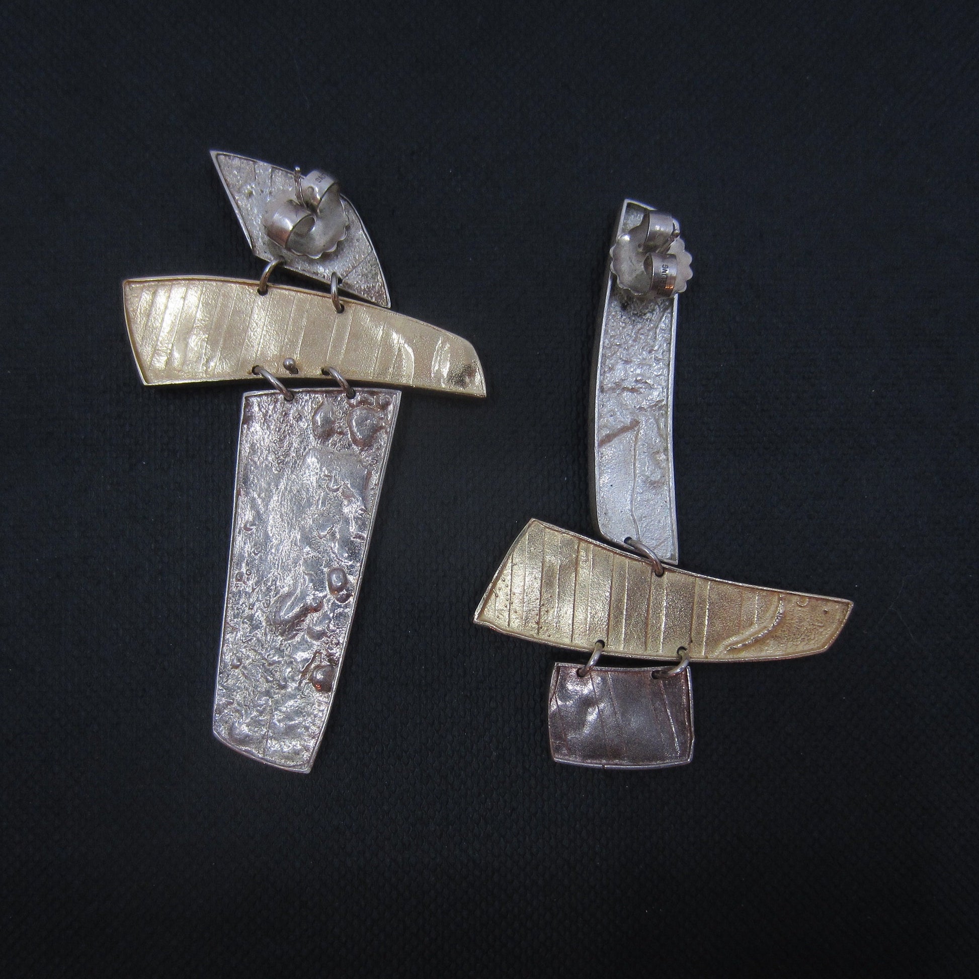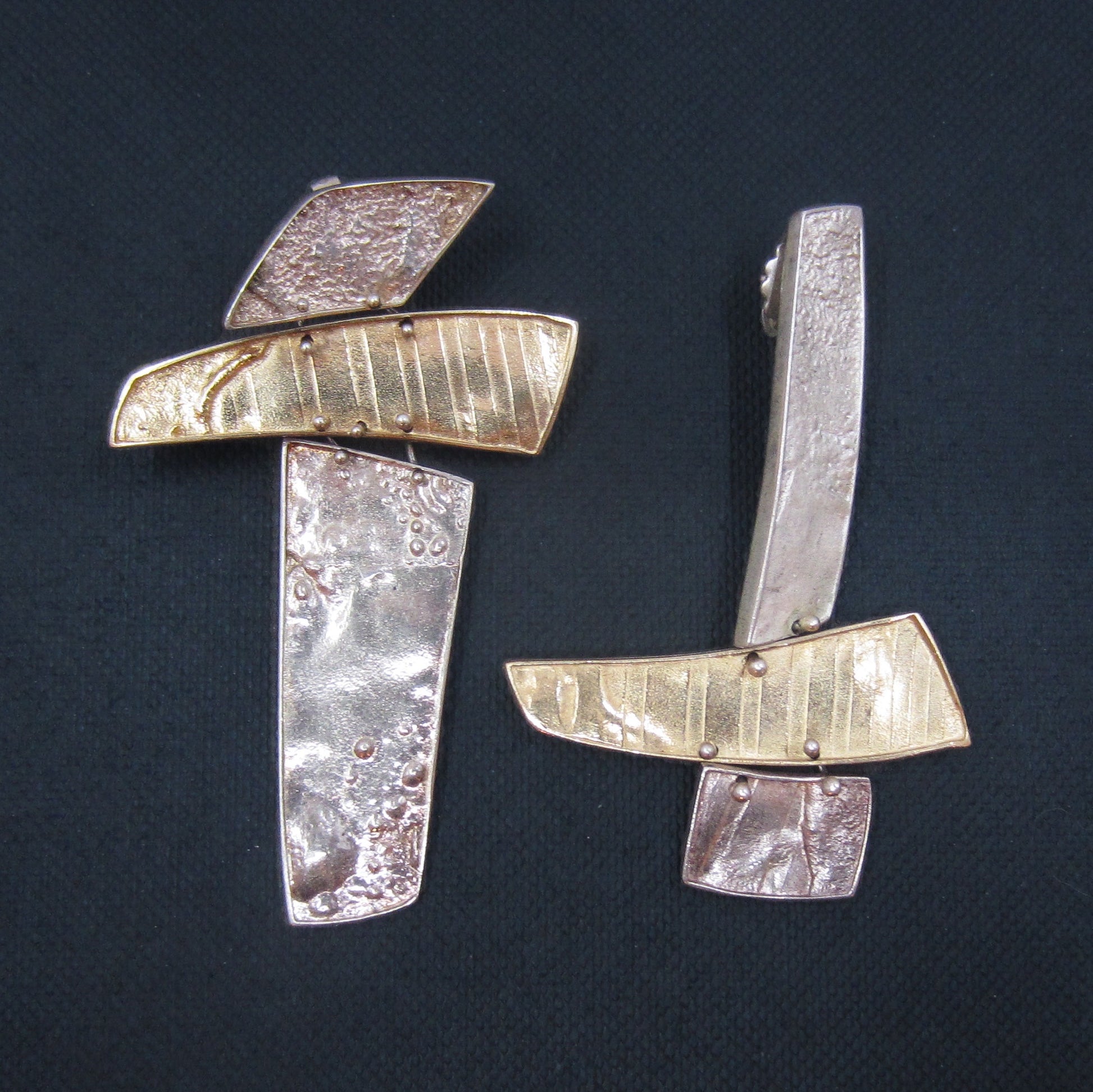 Post-Modern Asymmetrical Earrings 14k/Silver c. 1980