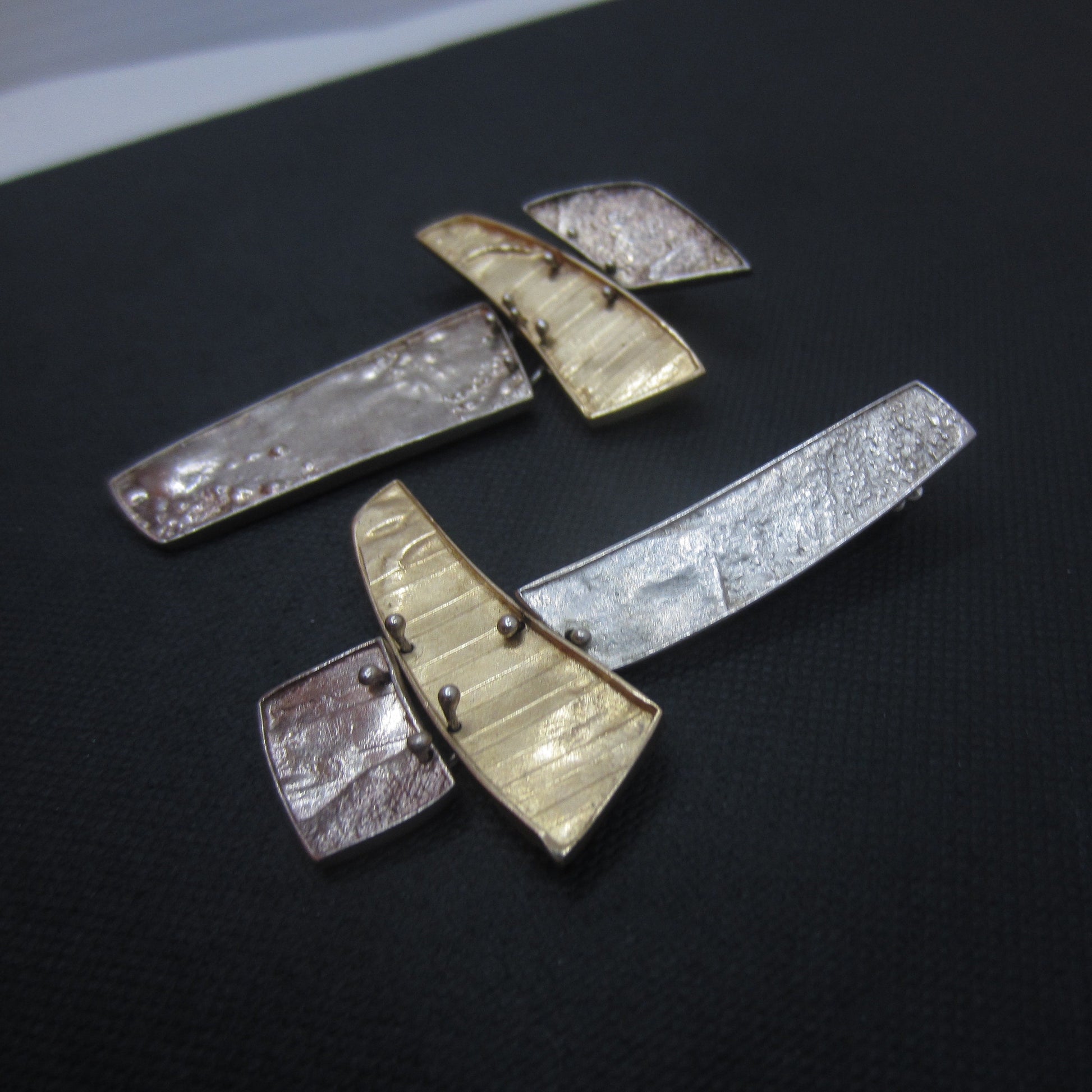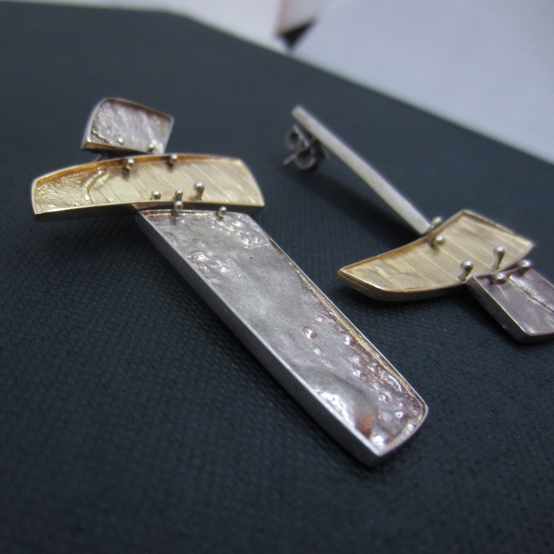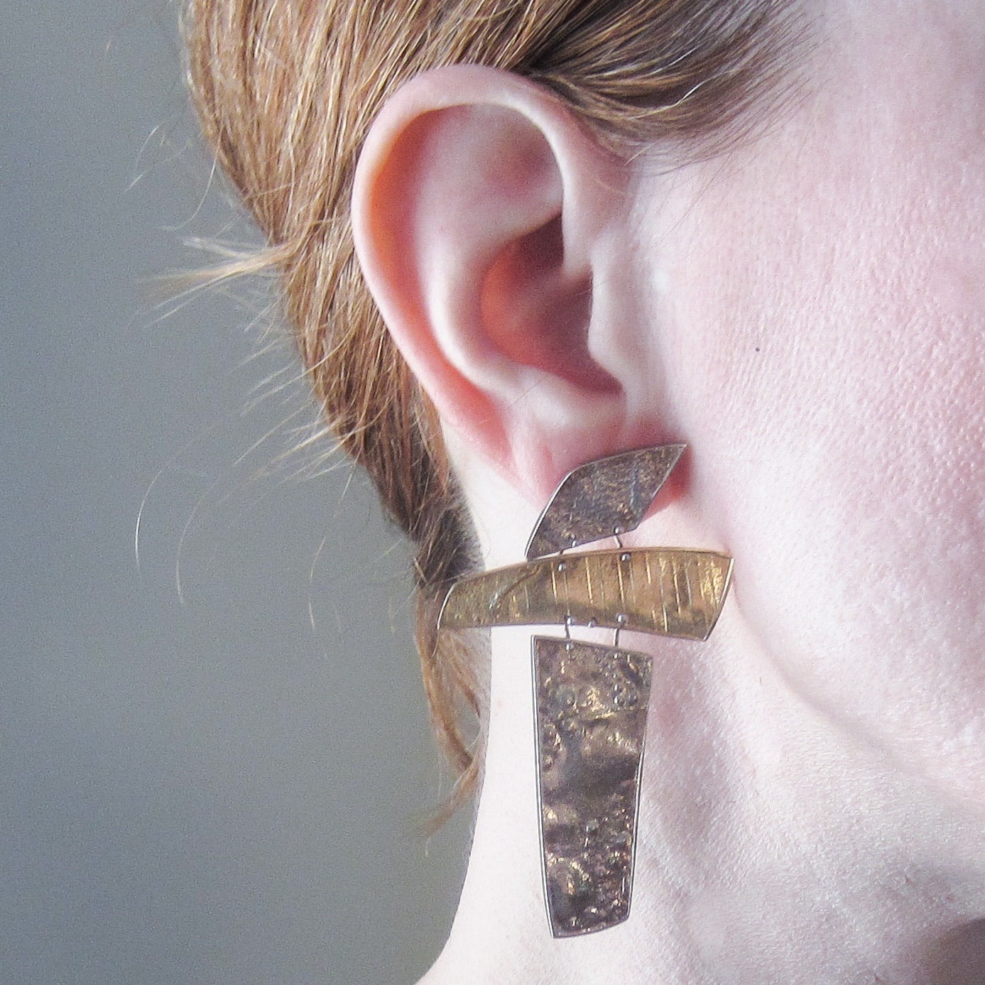 Post-Modern Asymmetrical Earrings 14k/Silver c. 1980