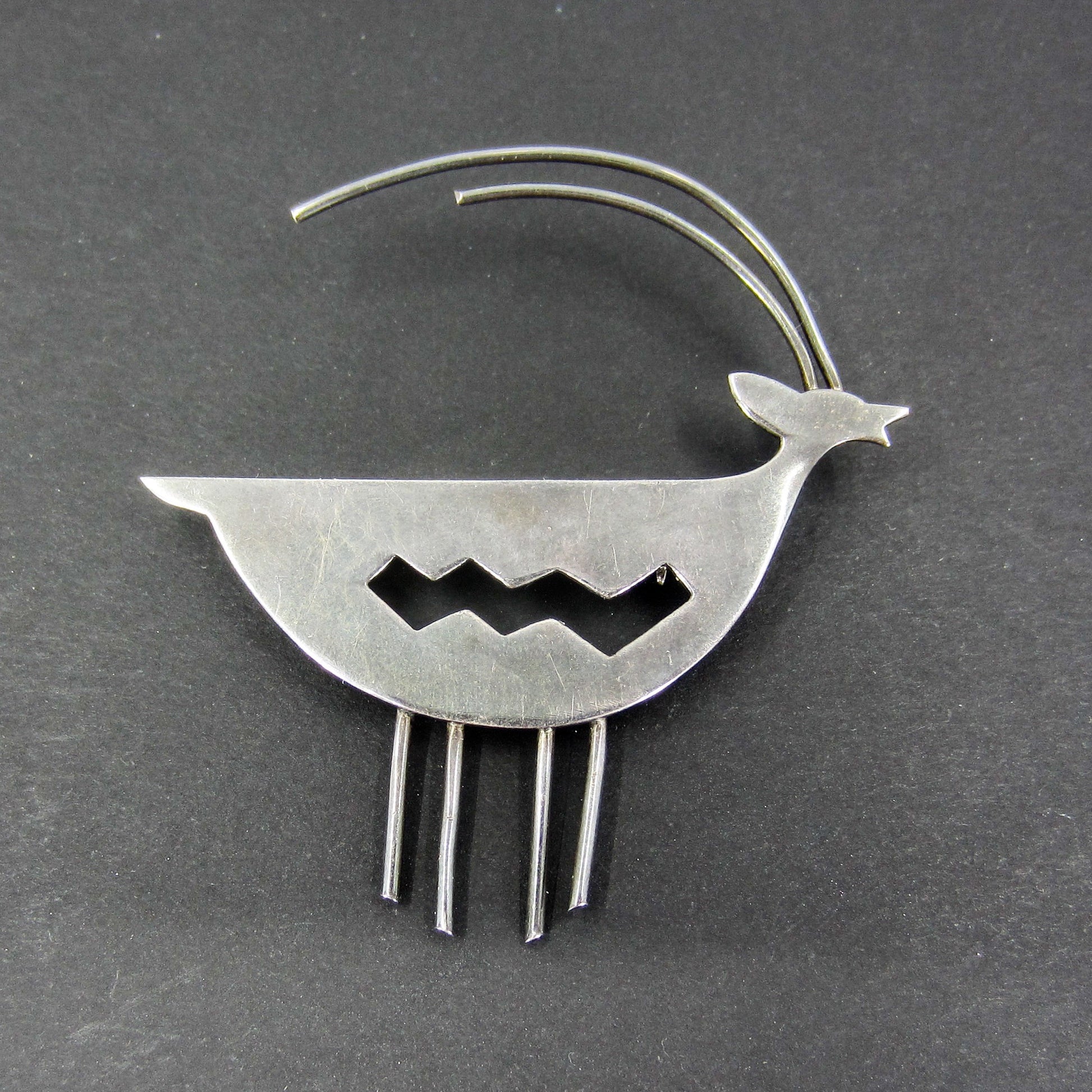 SOLD-Post-Modern Deer Brooch Sterling, Woods c. 1980