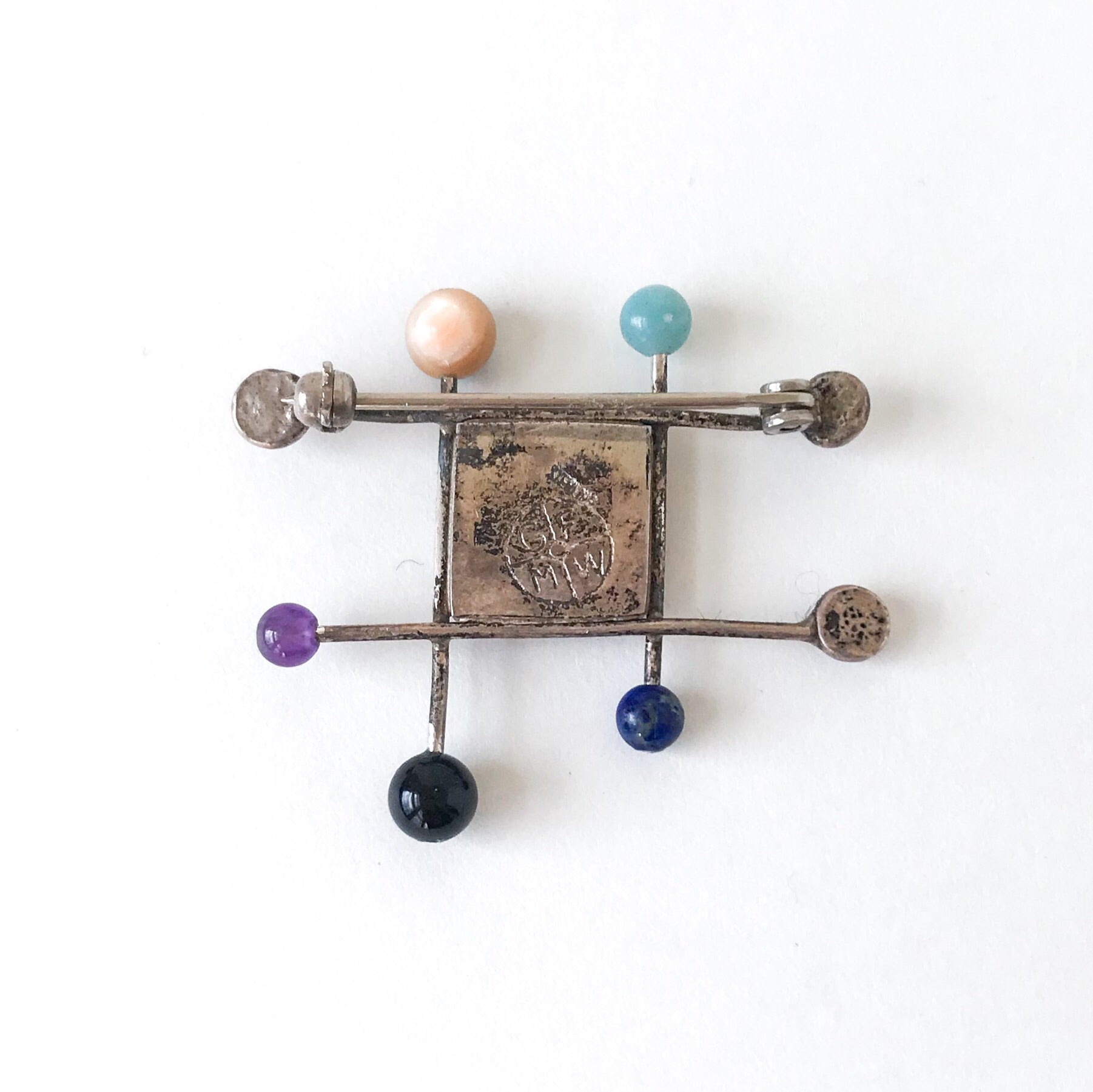 SOLD-Post-Modern Geometric Multi-Gem Brooch Sterling c. 1990