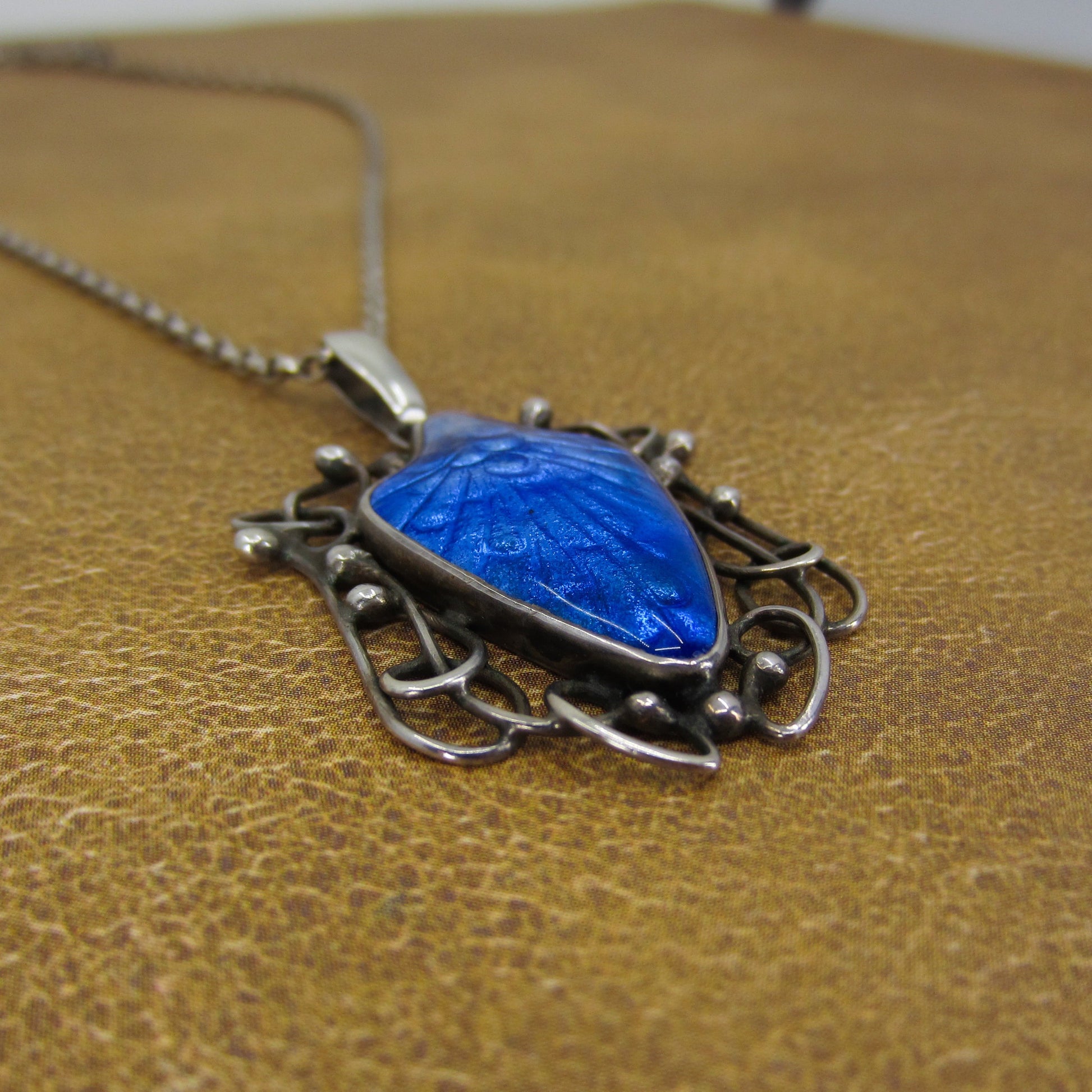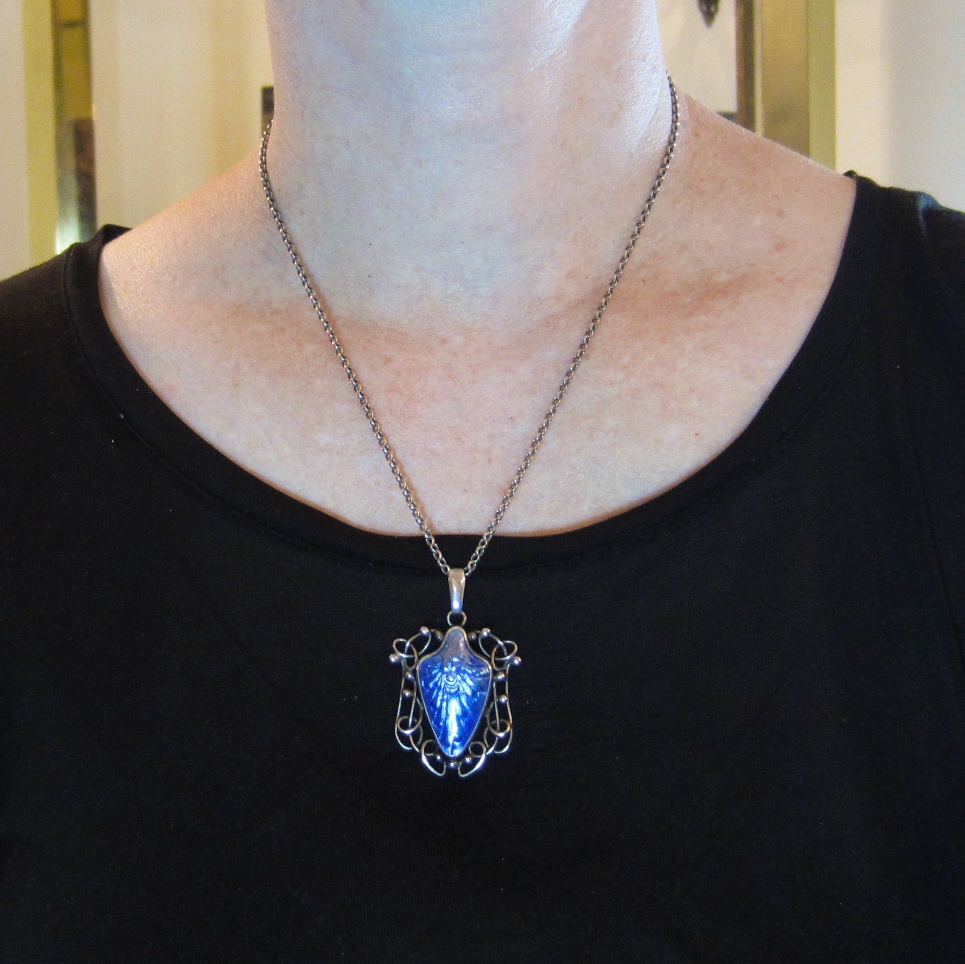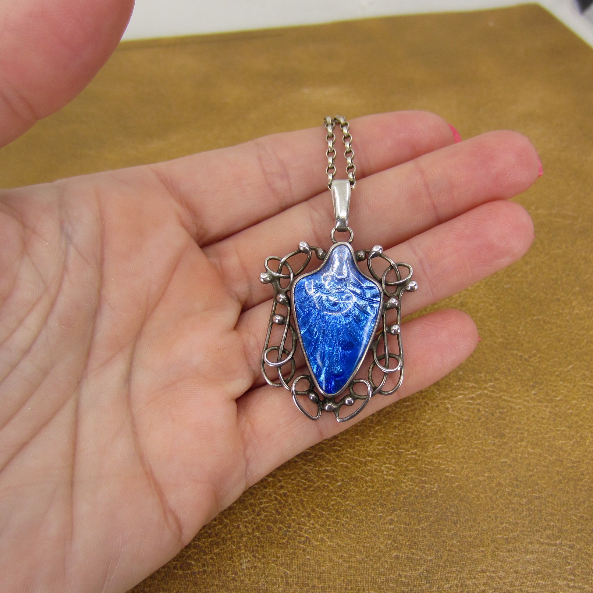 SOLD-Rare Arts & Crafts Newlyn School Enamel Pendant Sterling c. 1900