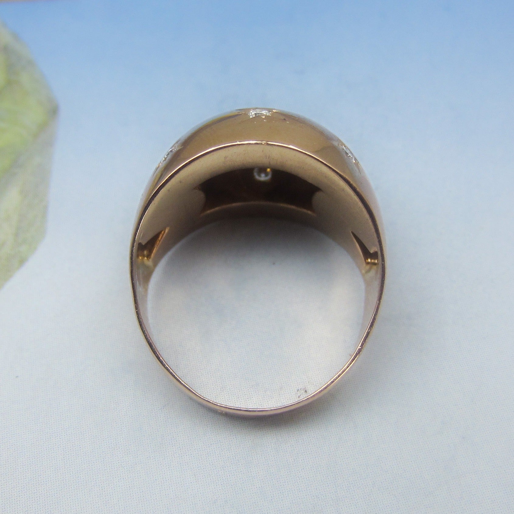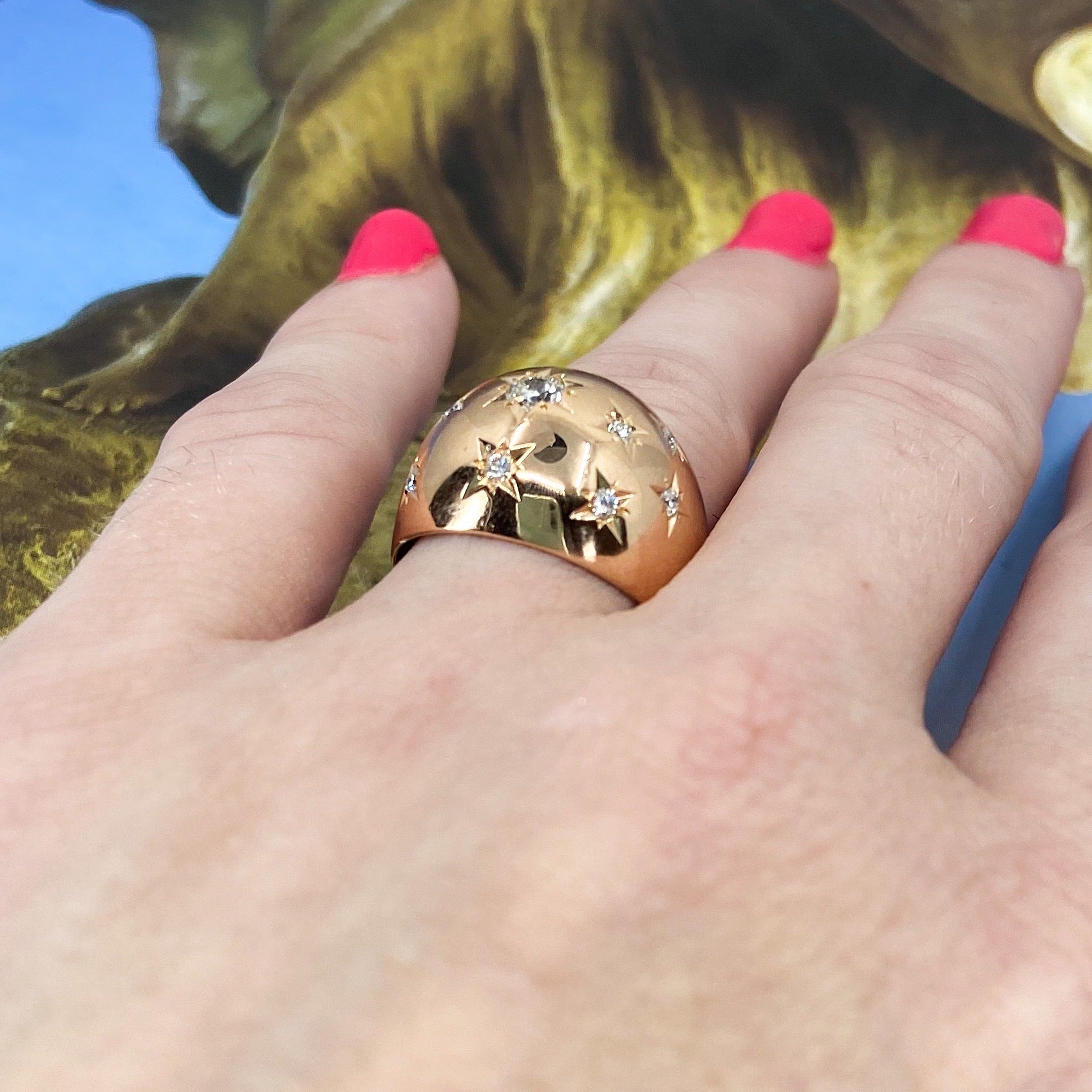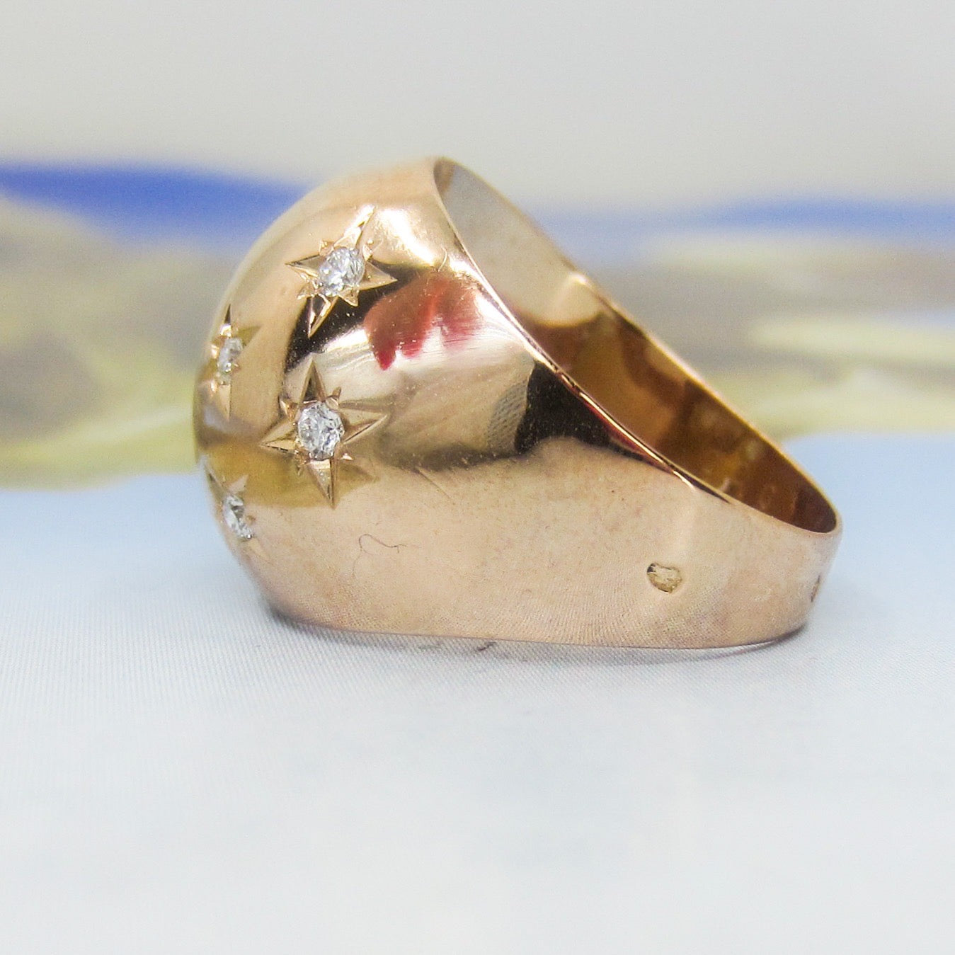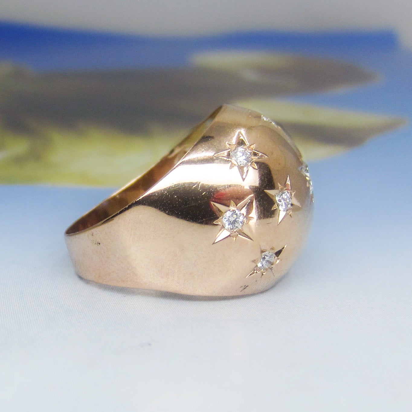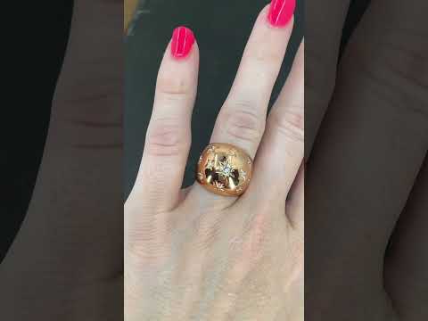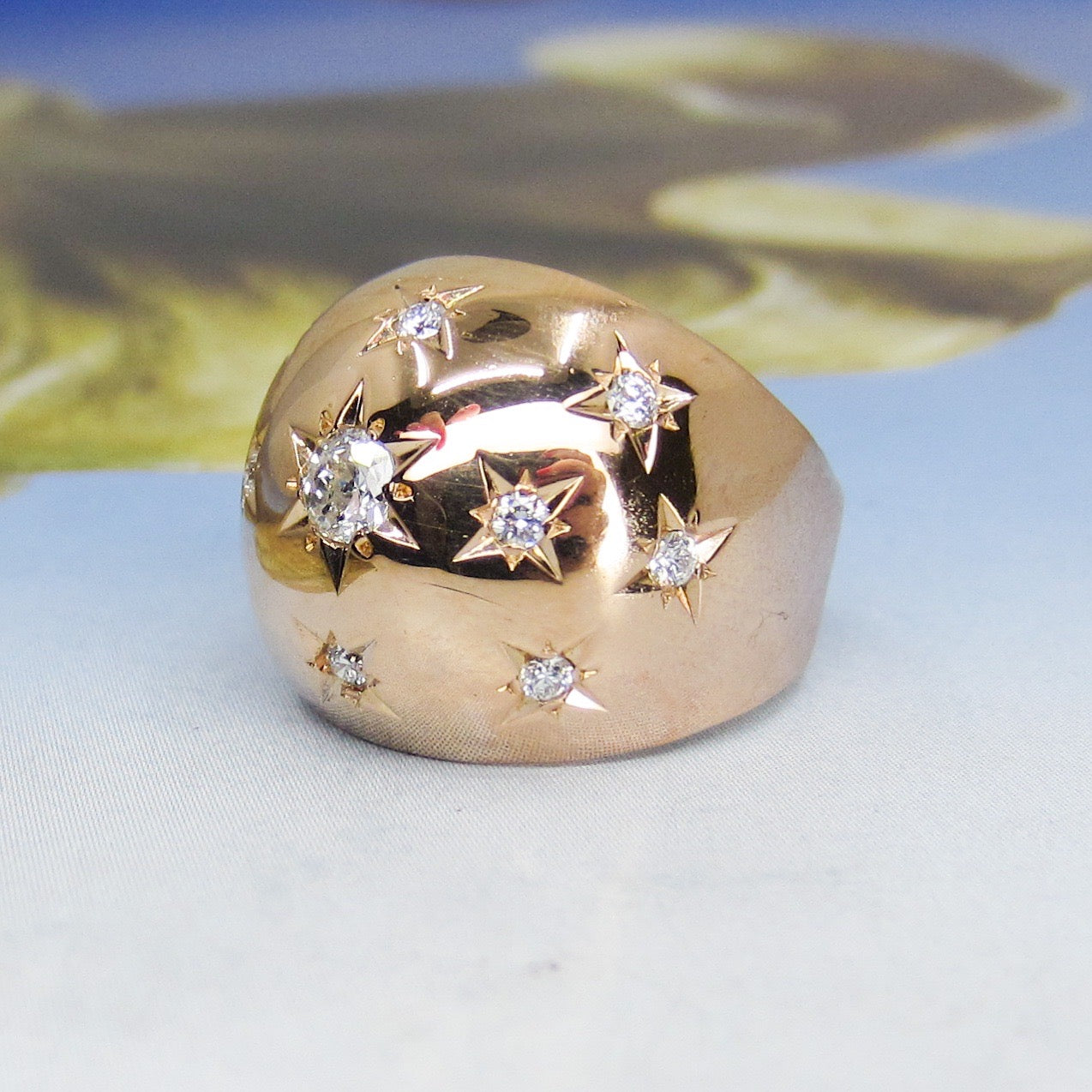 SOLD--Retro Star Set Diamond Bombe Ring 18k, French c. 1940