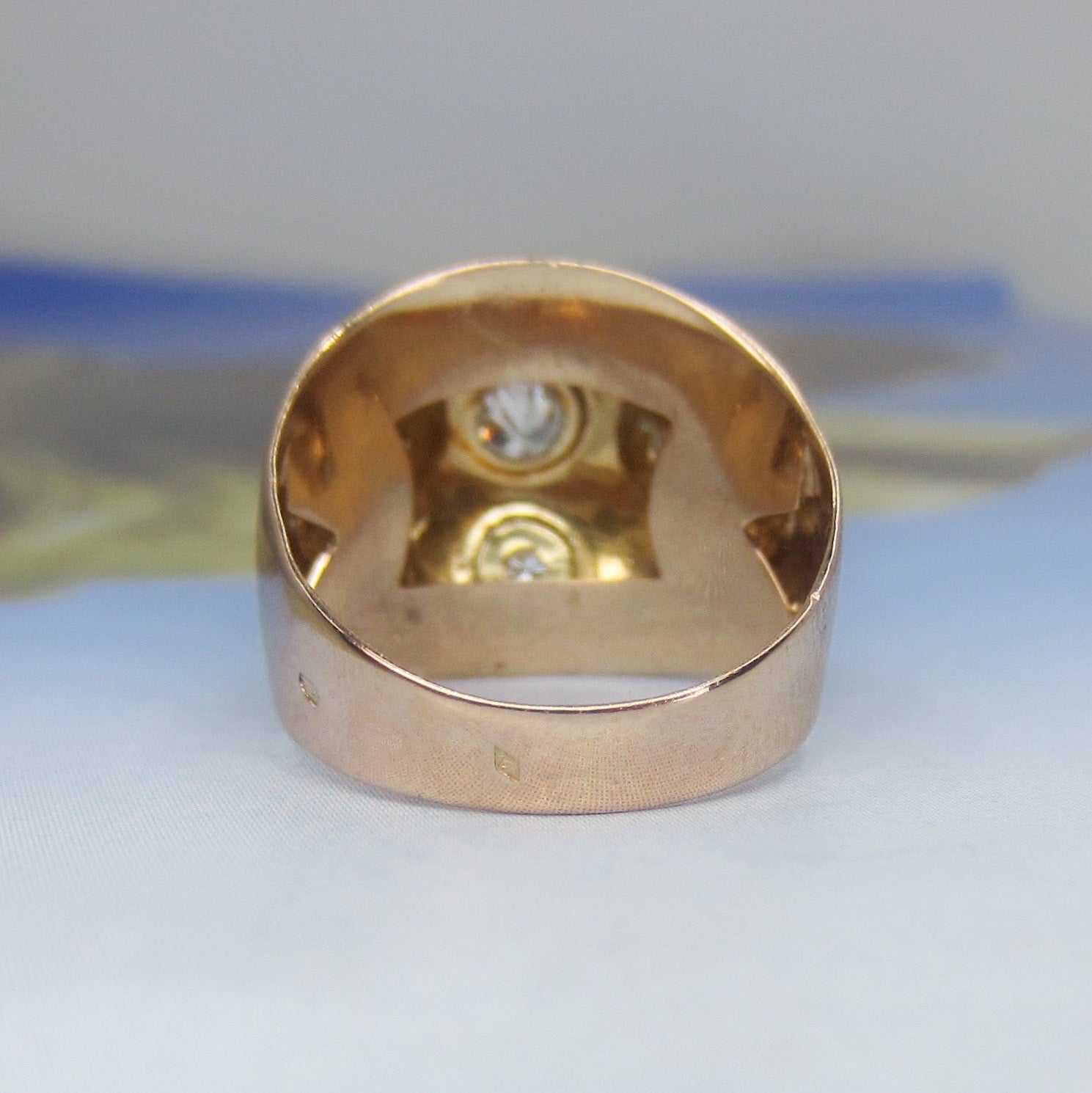 This glamorous ring was made circa 1940's in France, and features eleven Round Brilliant Cut diamonds set in 18k rose gold.