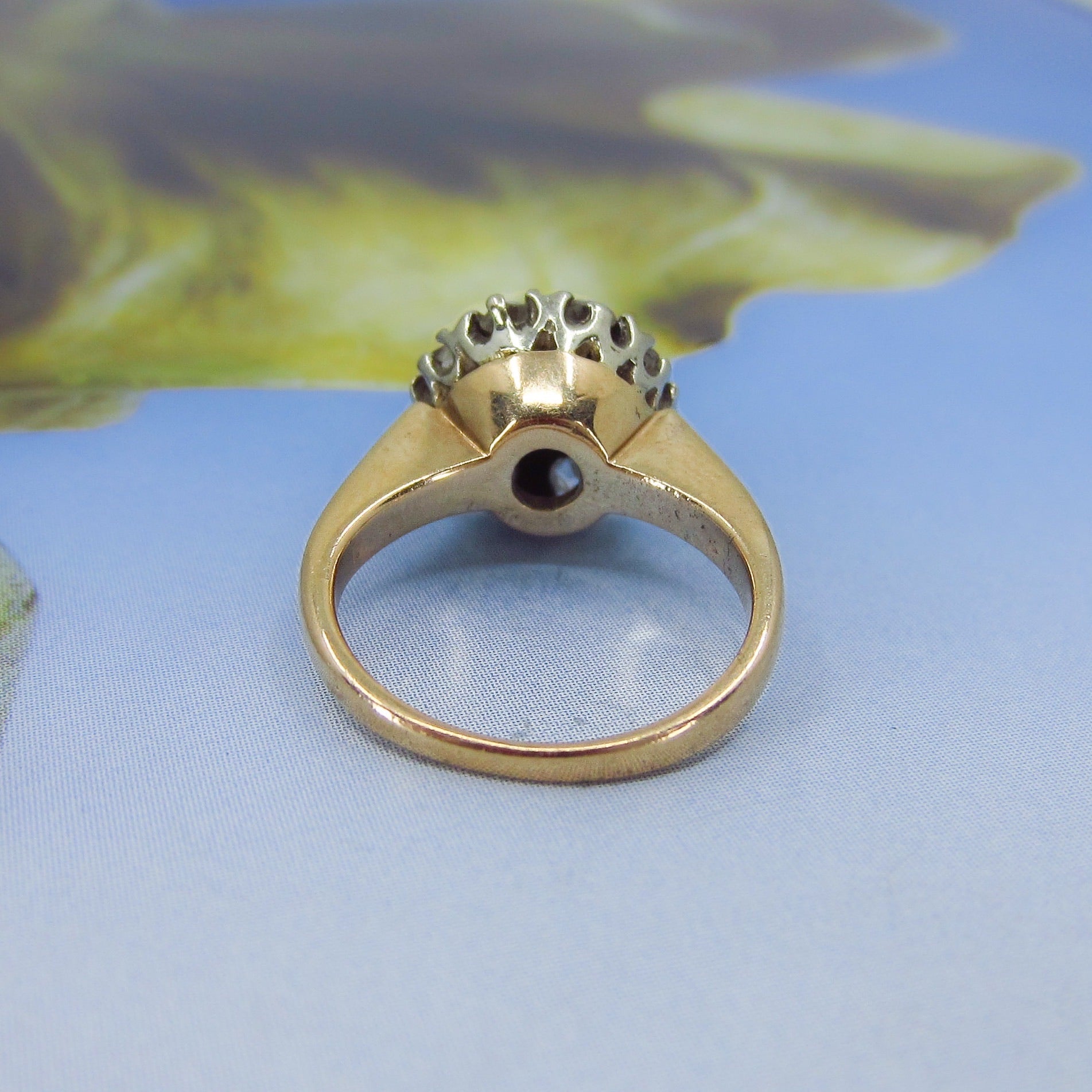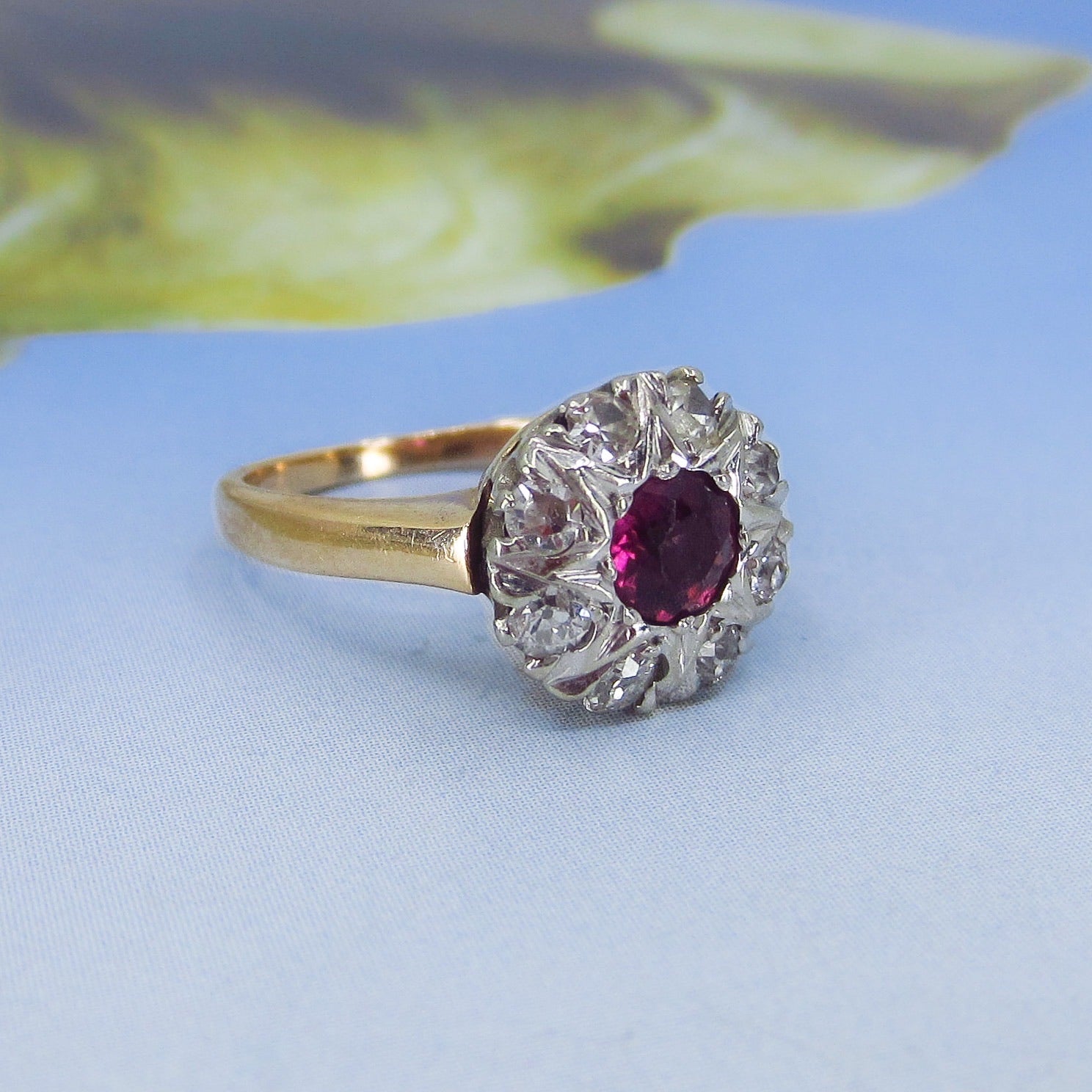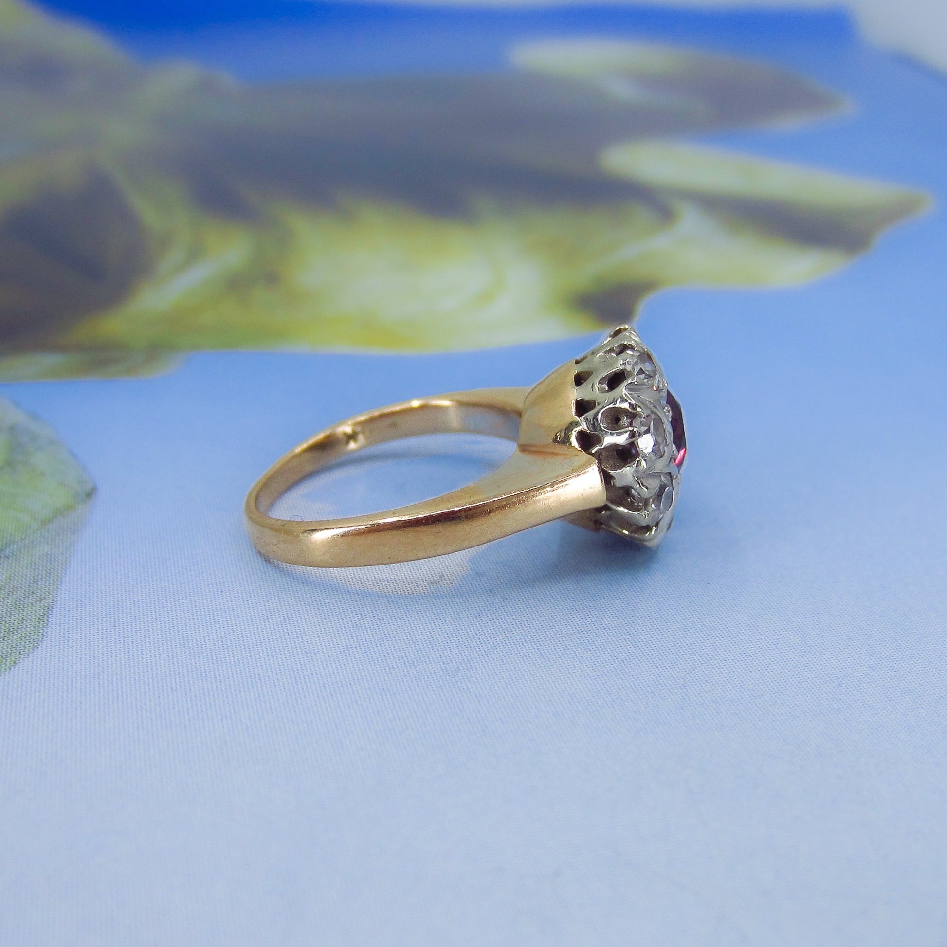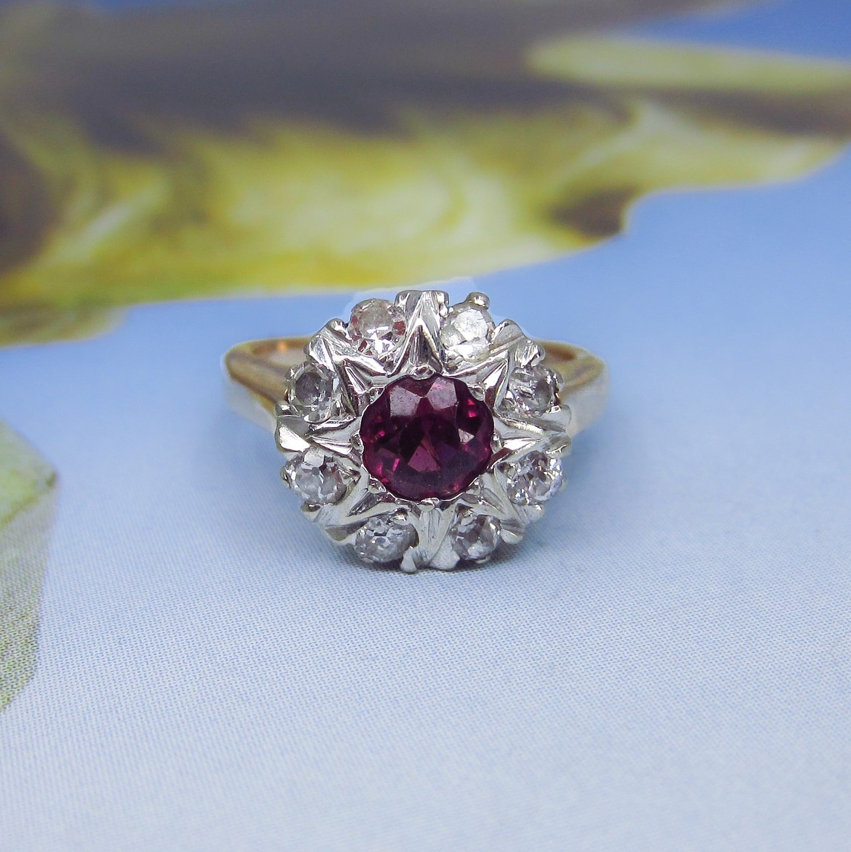 SOLD Art Deco Garnet and Diamond Cluster Ring 14k c. 1920