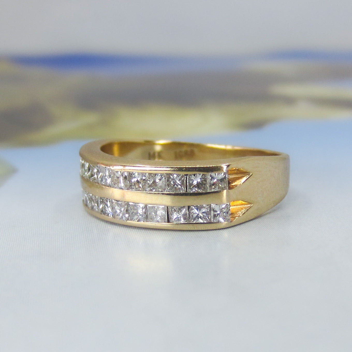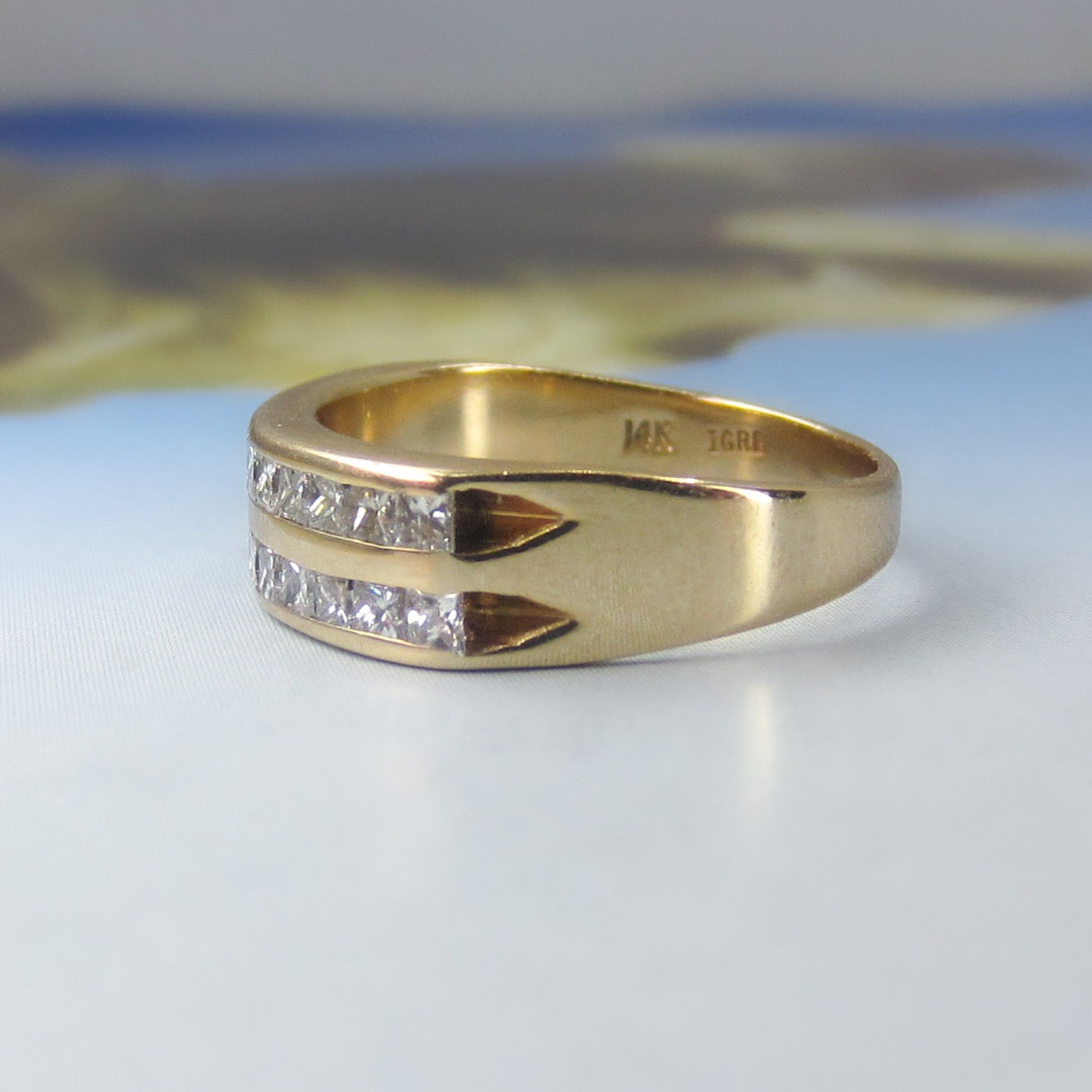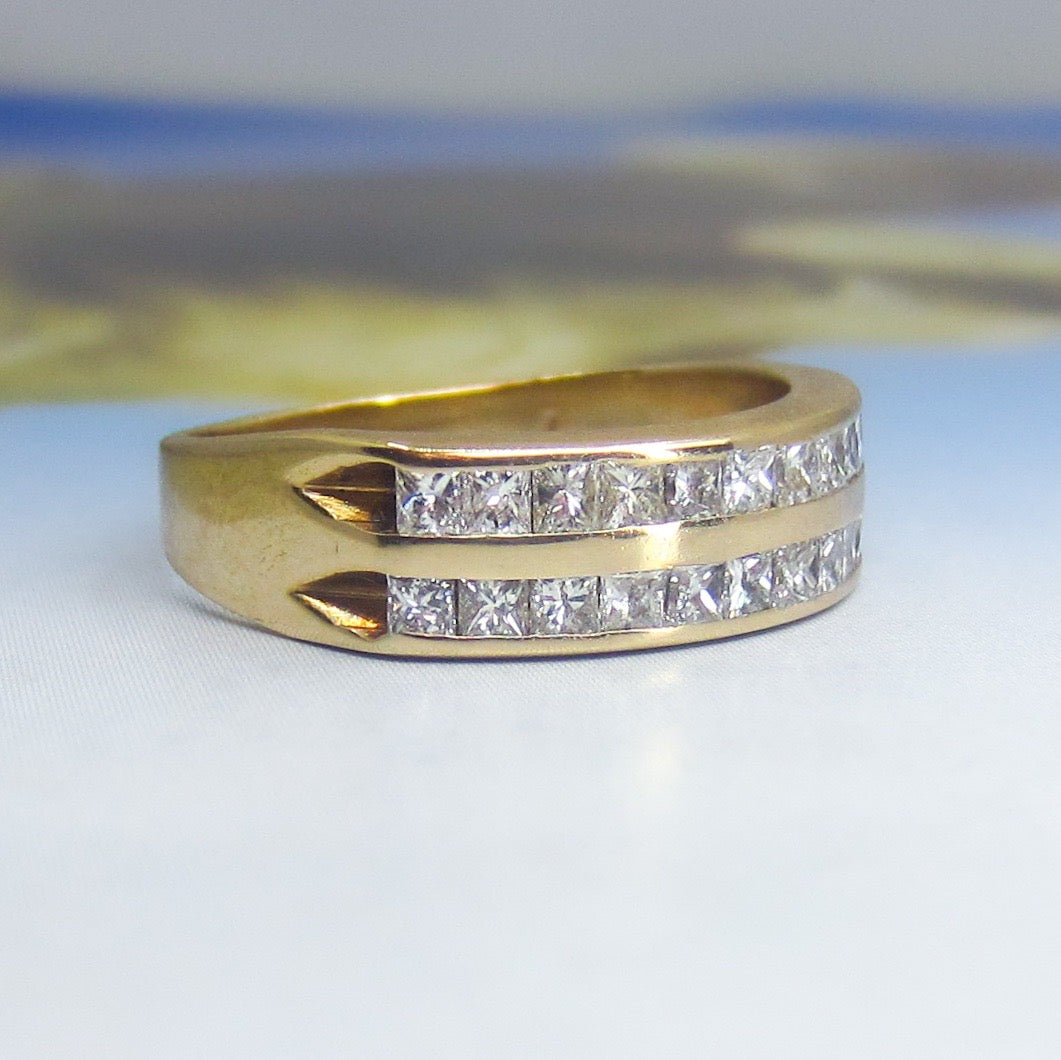 SOLD--Vintage Channel Set Princess Cut Diamond Band 14k c. 1990