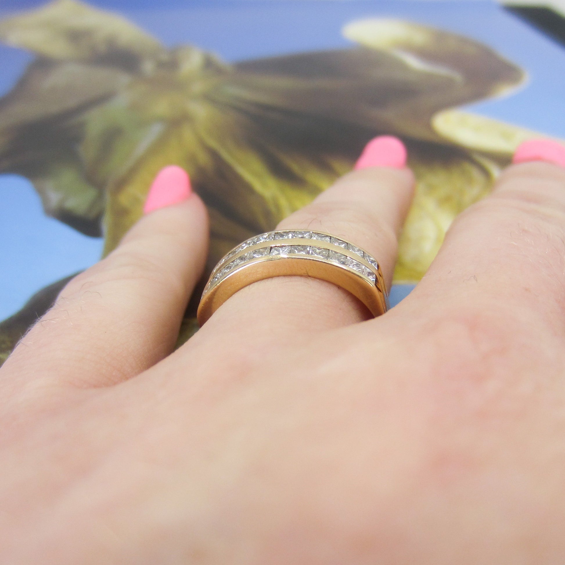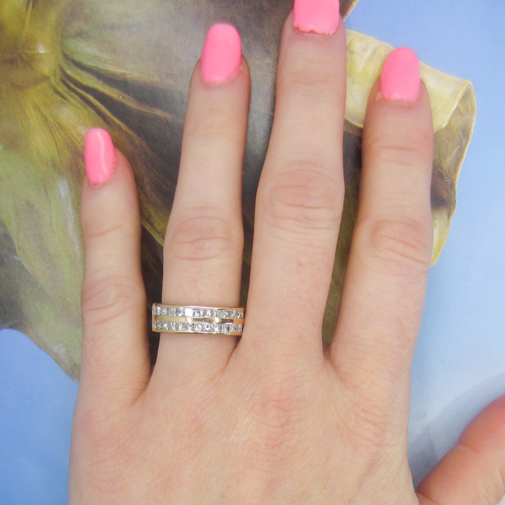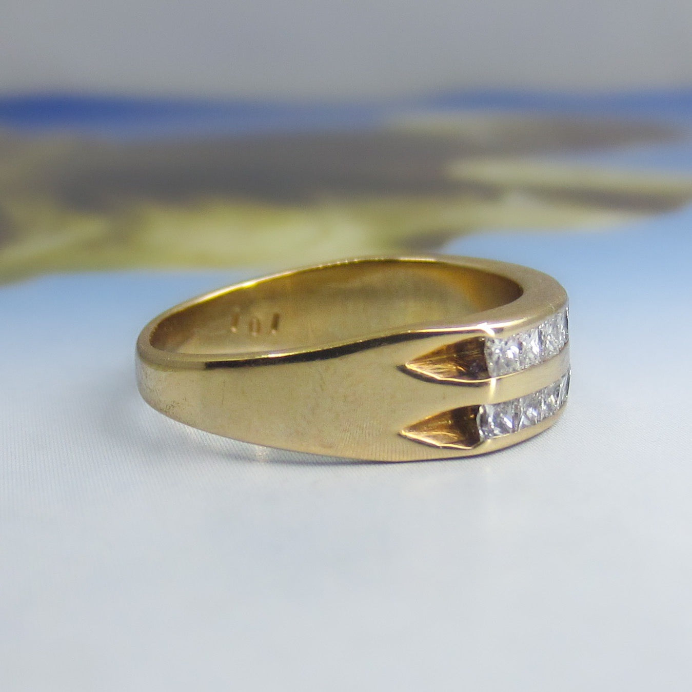 SOLD--Vintage Channel Set Princess Cut Diamond Band 14k c. 1990