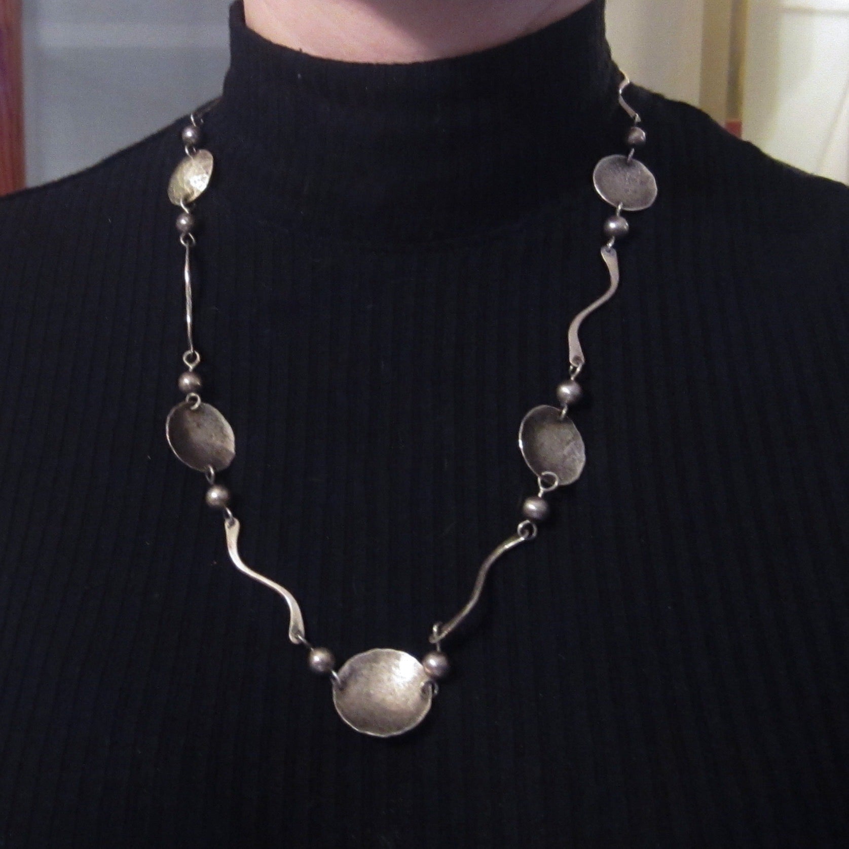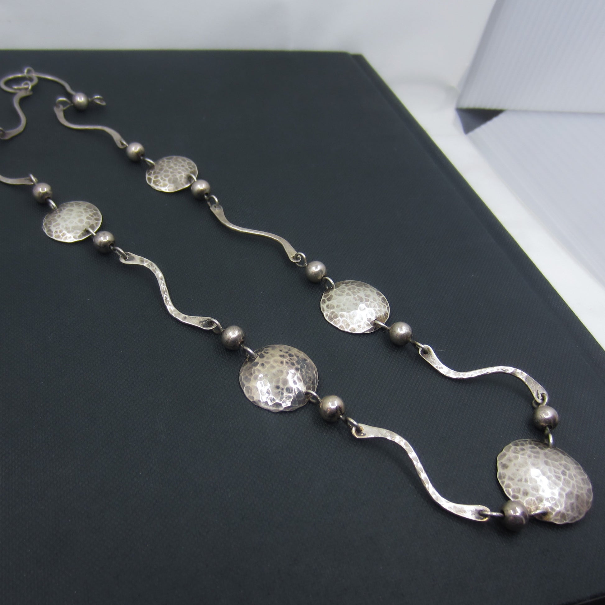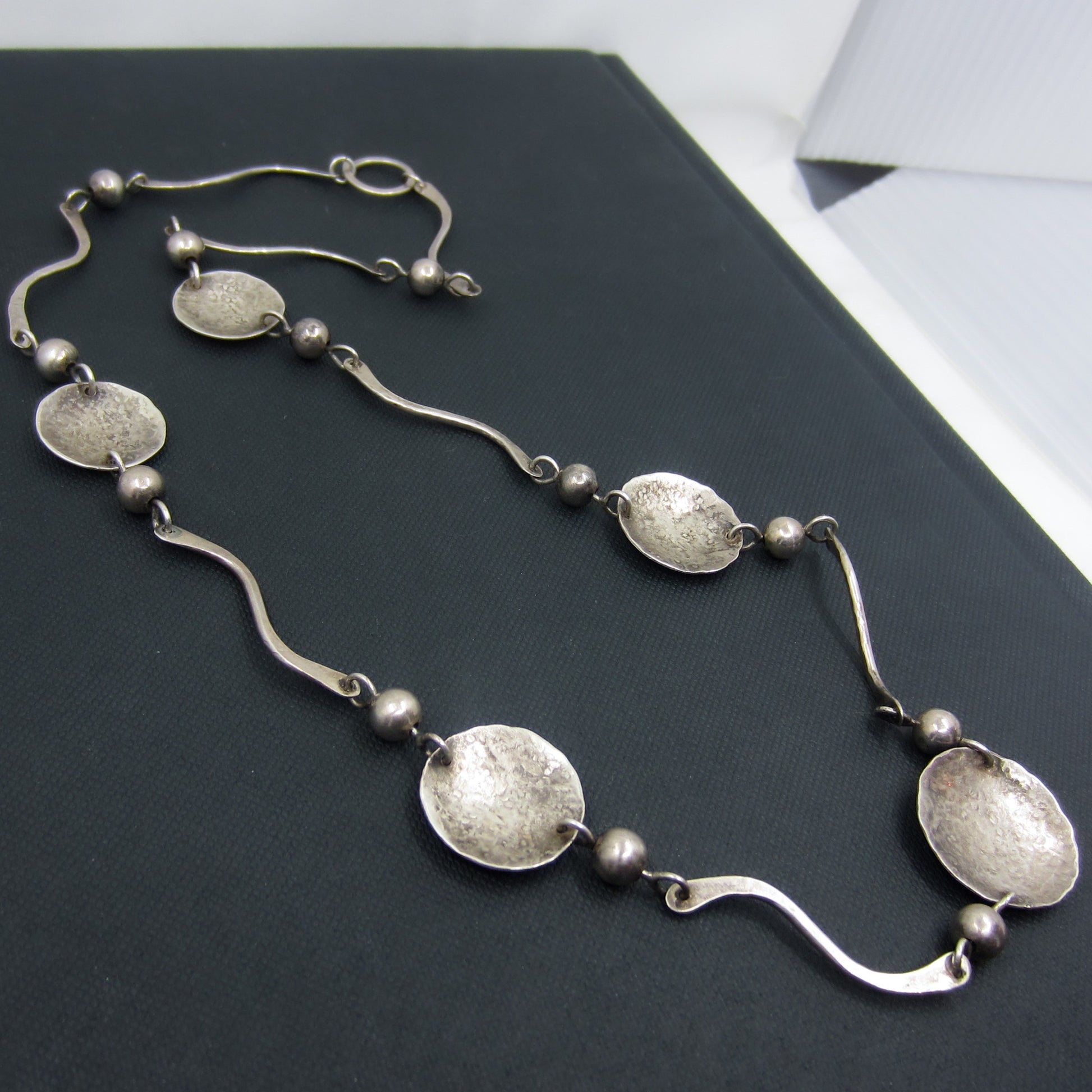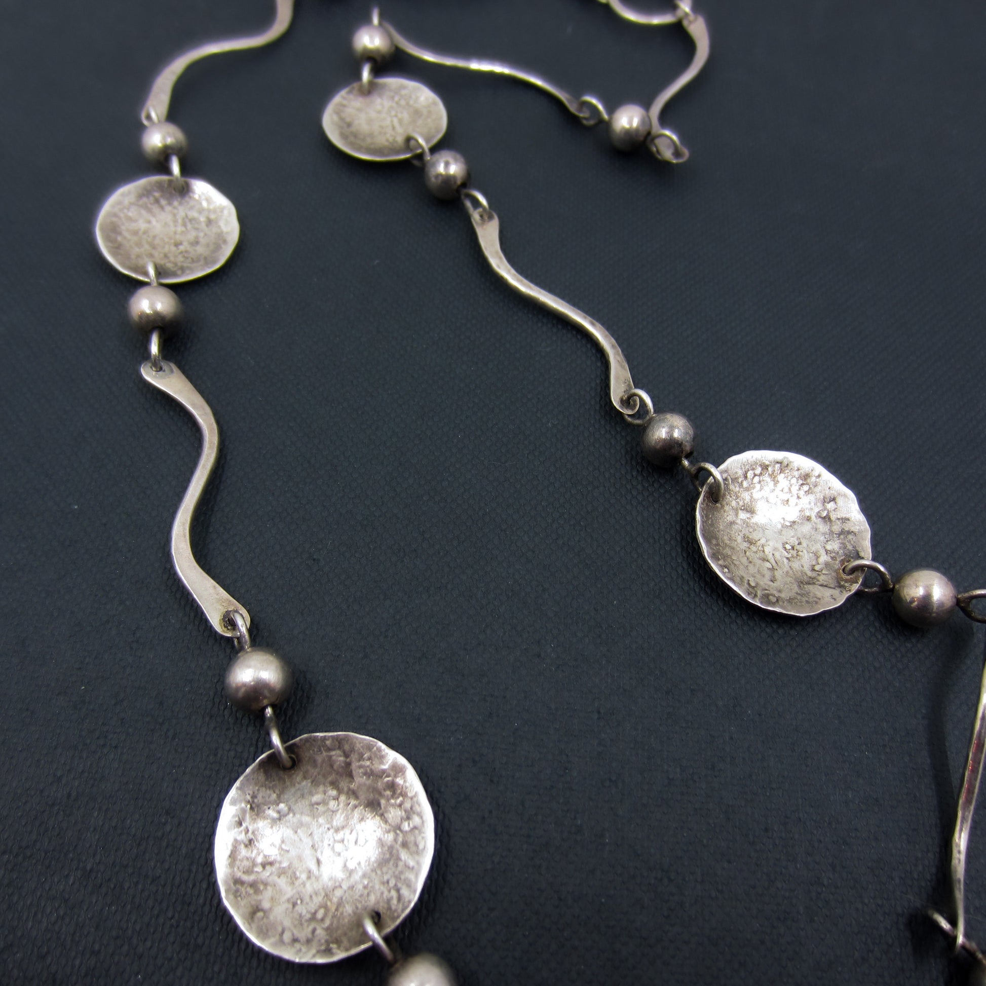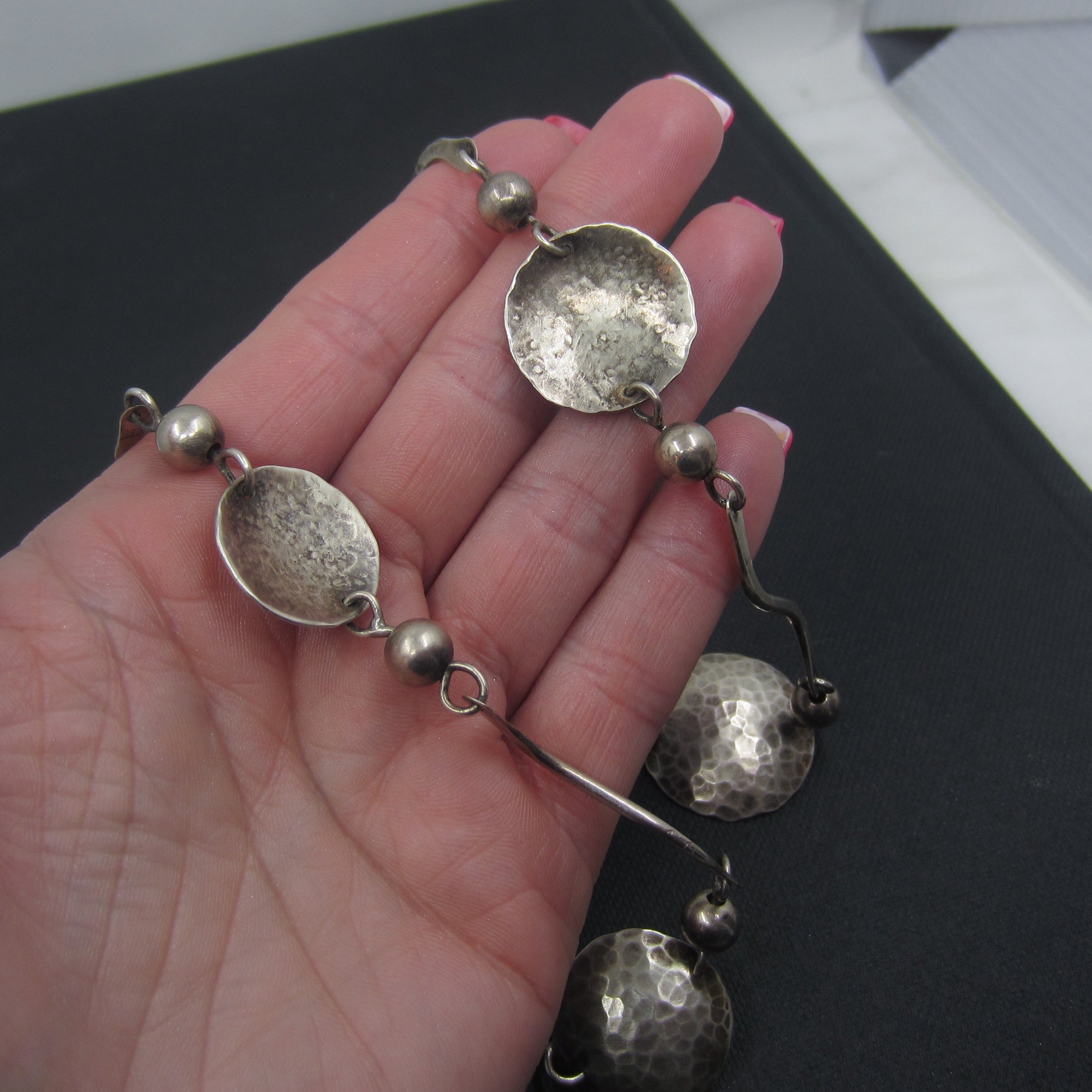 Modernist Hand Hammered Disc Necklace Sterling c. 1960