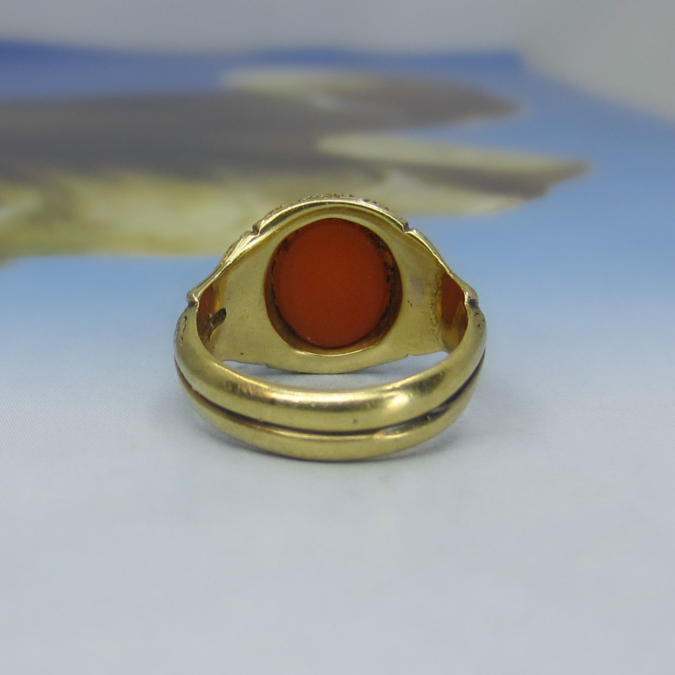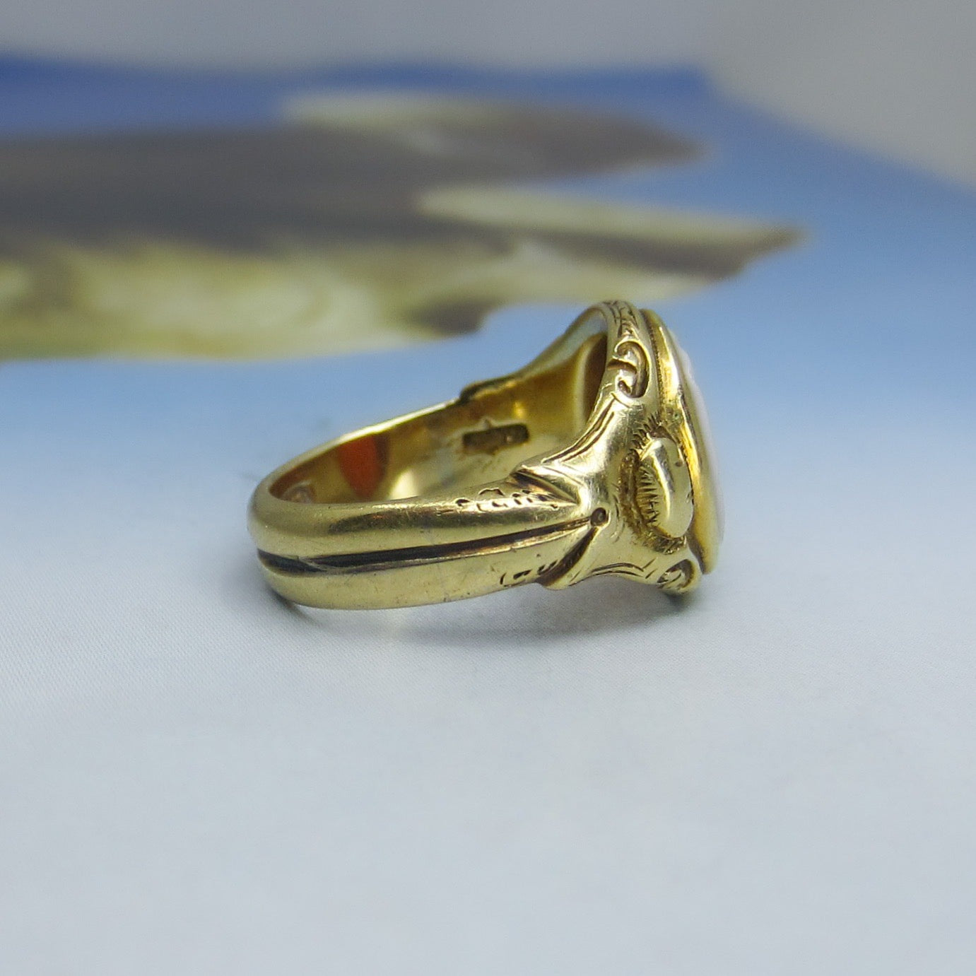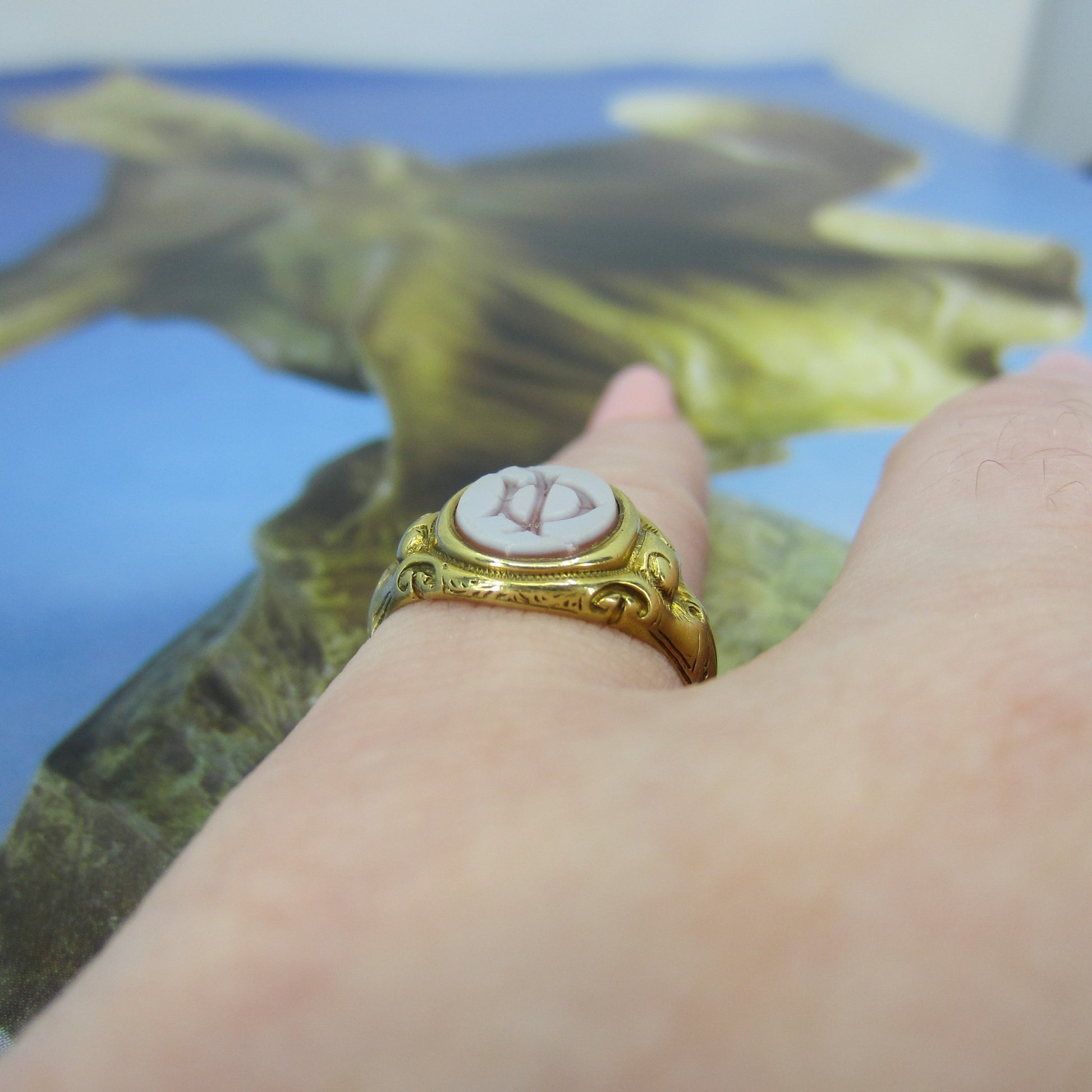 SOLD-Victorian Hardstone Intaglio Signet Pinky Ring 15k c. 1887