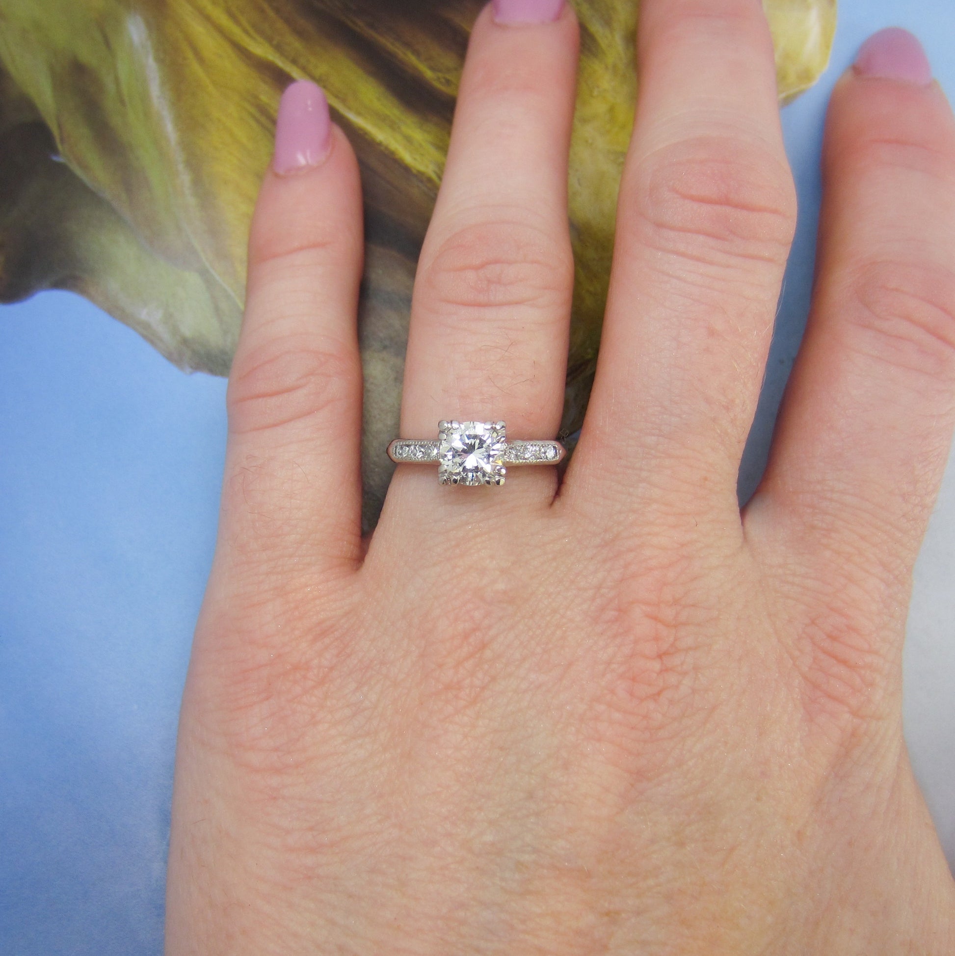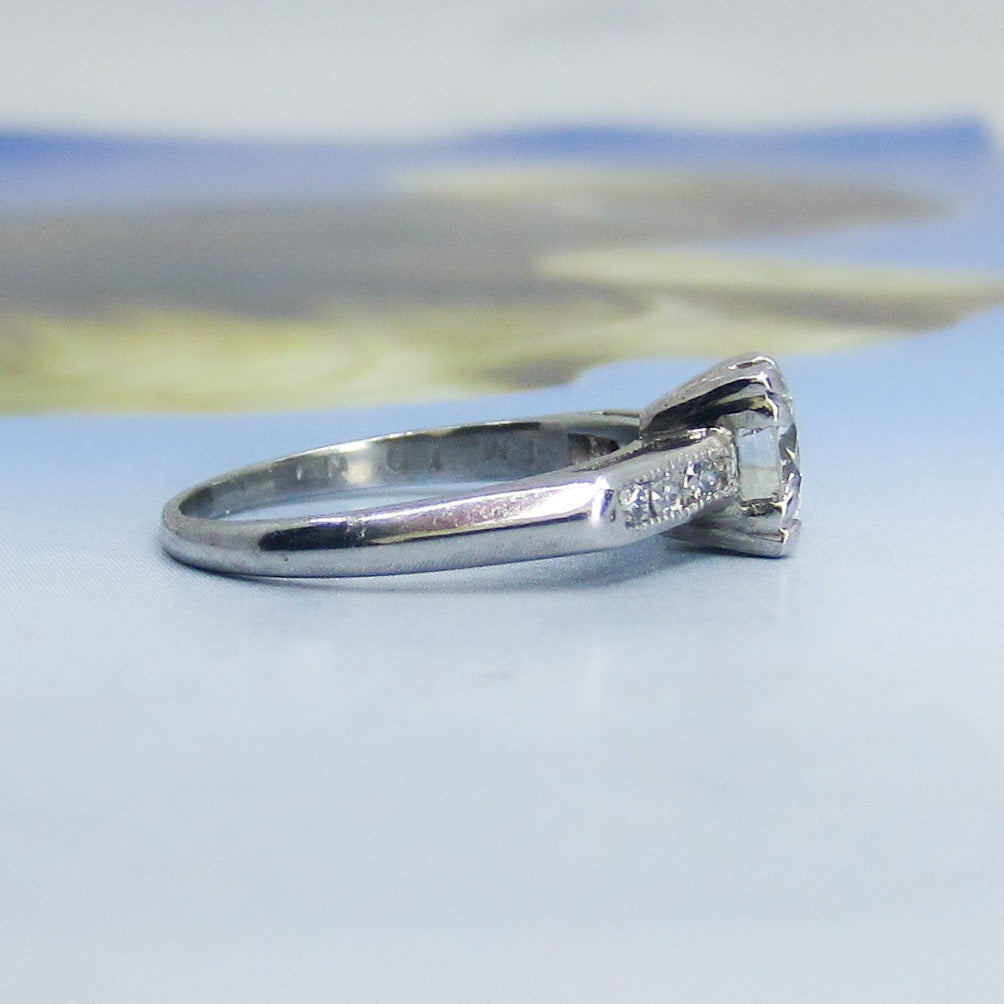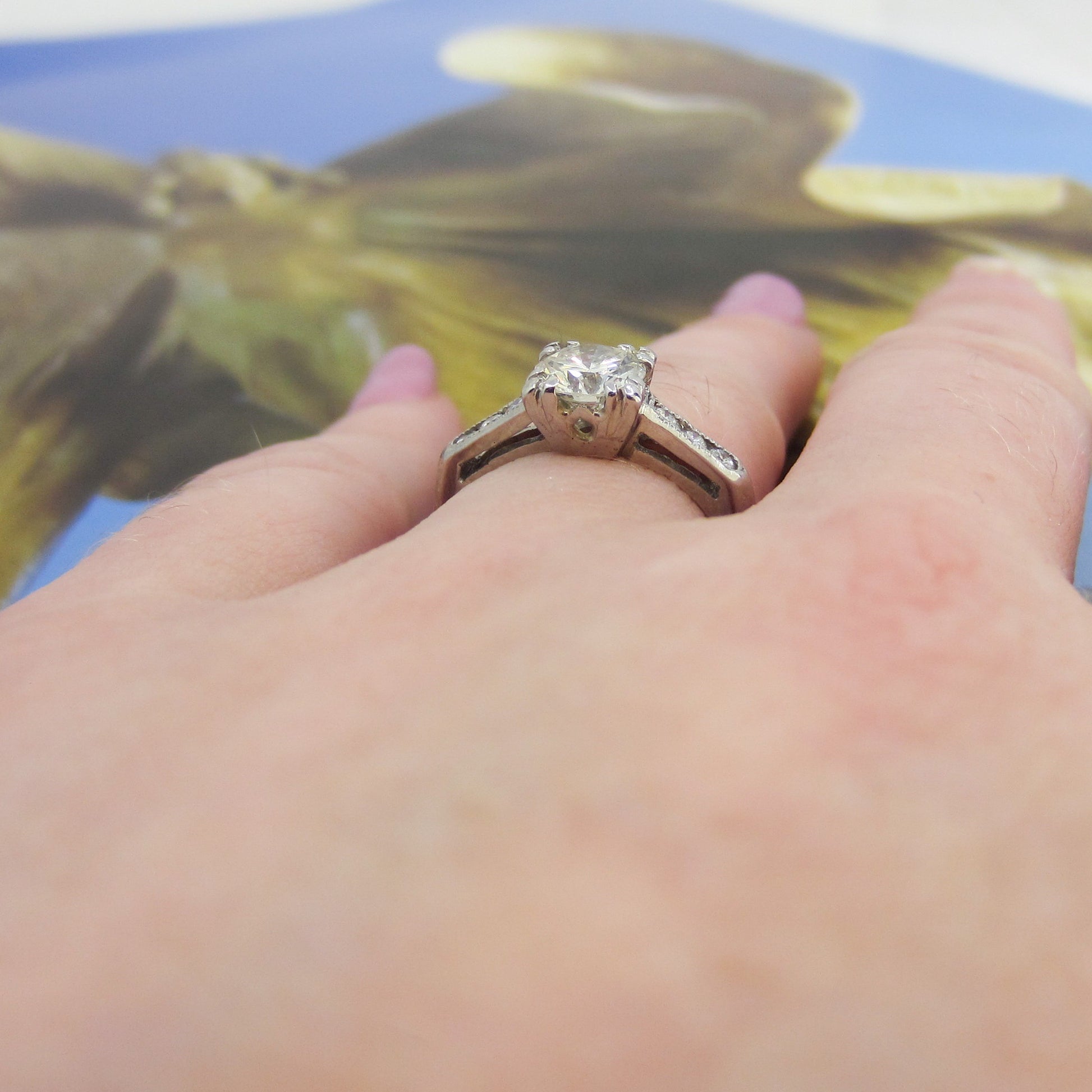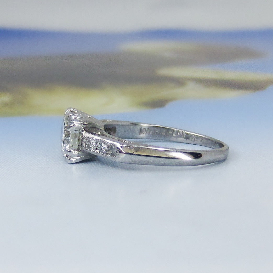 SOLD--Retro Round Brilliant Cut .76ct Diamond Engagement Ring Platinum c. 1940